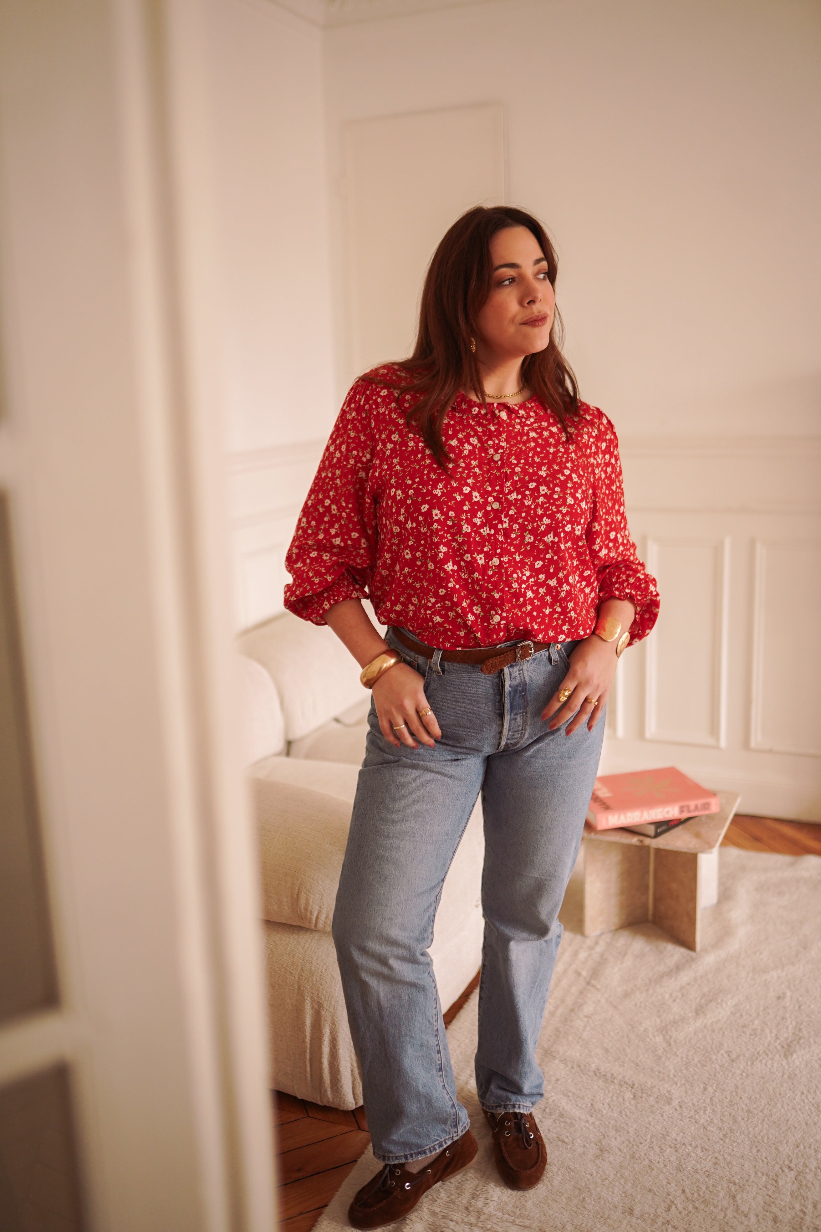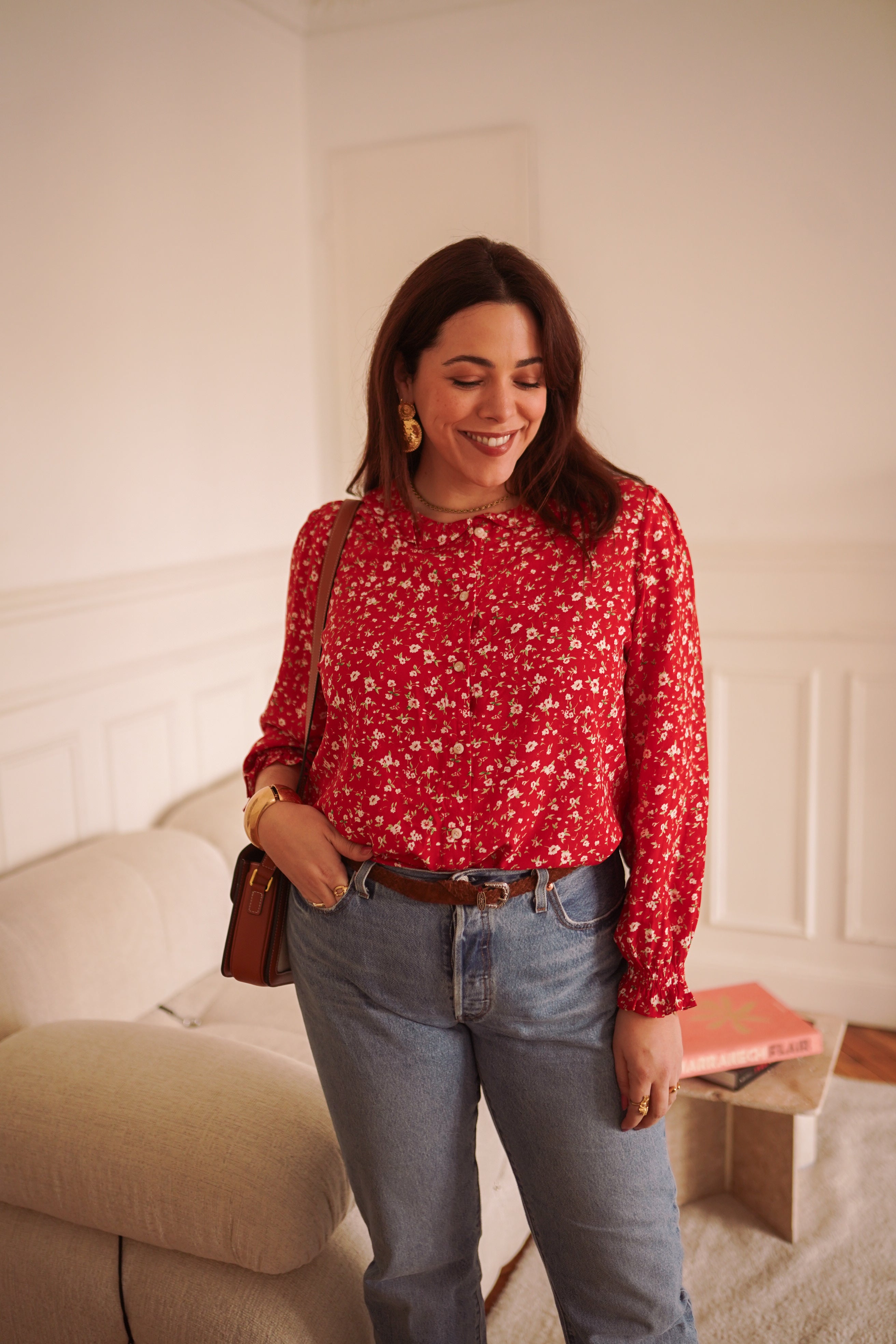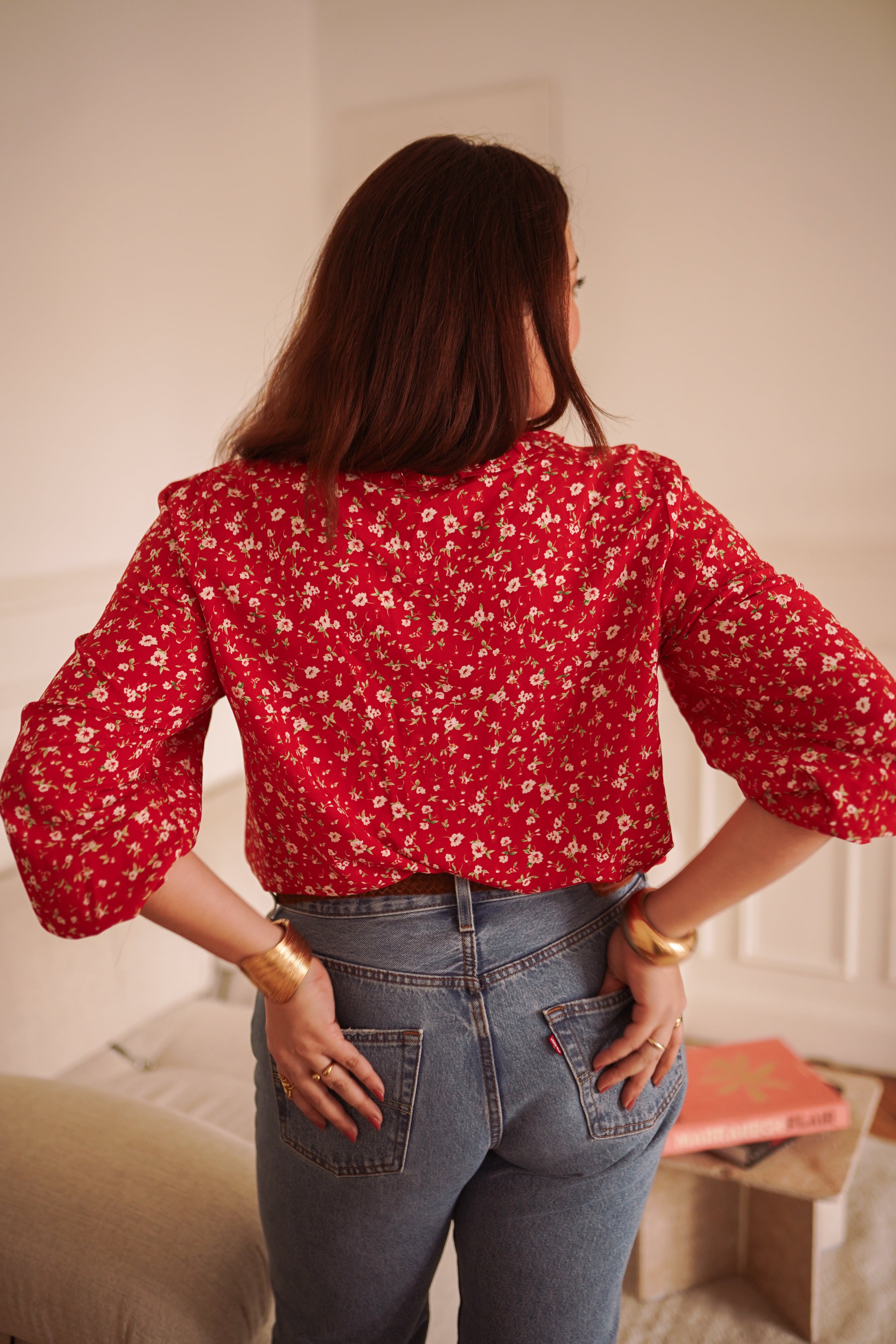 - Imprimé fleuri rouge intense, lumineux et affirmé