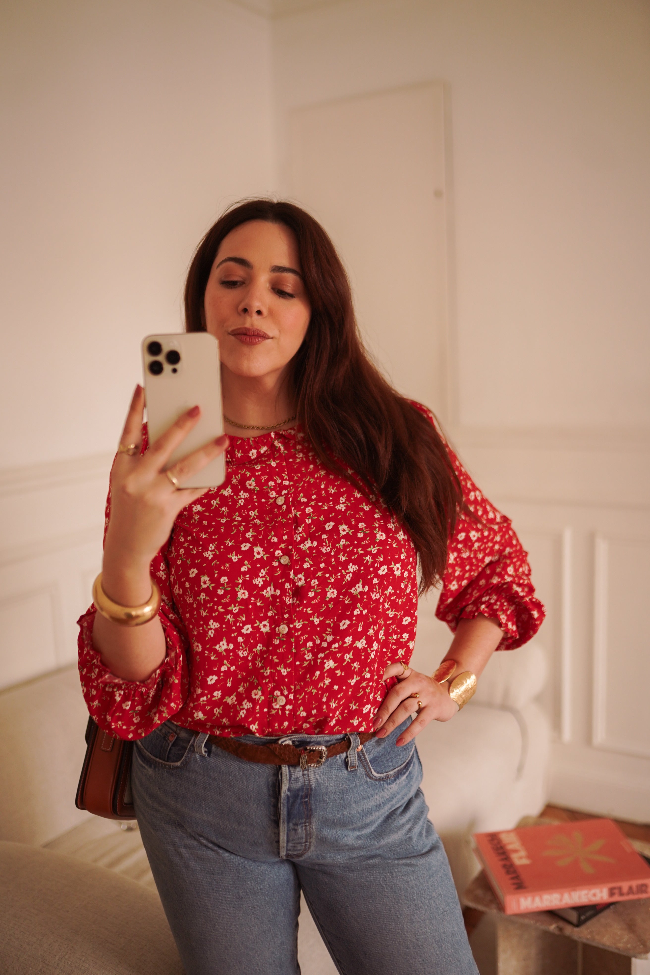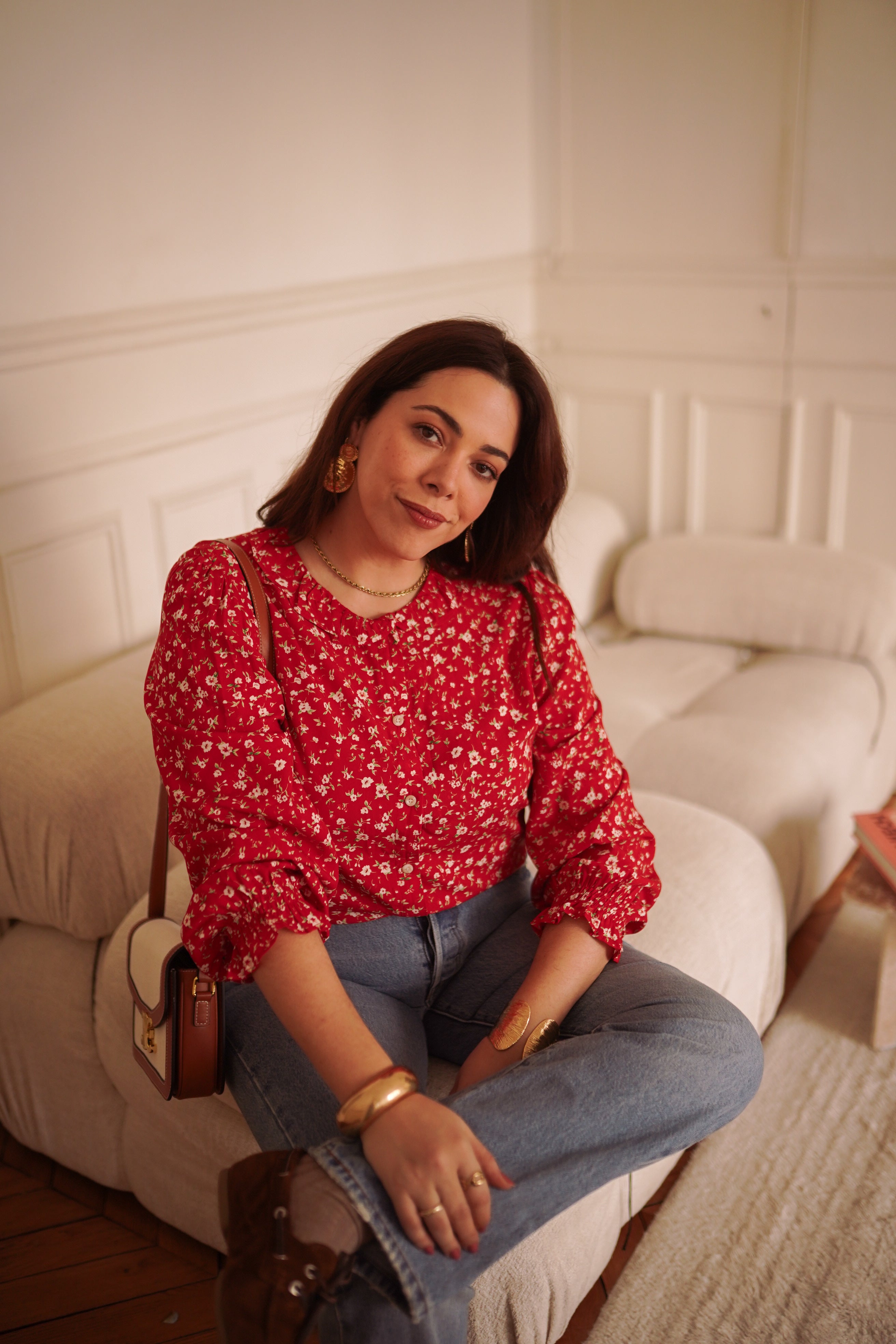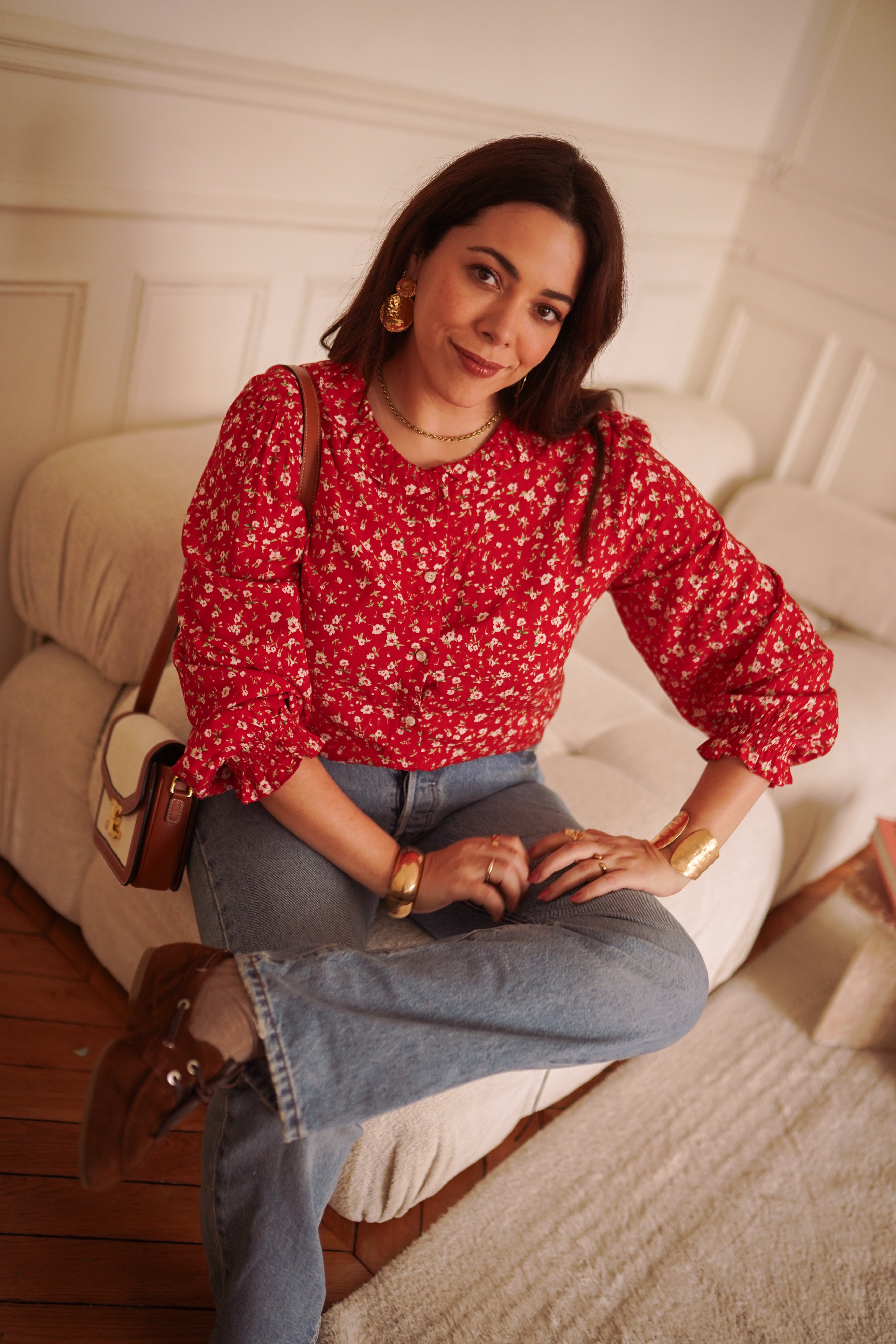 - Imprimé fleuri rouge intense, lumineux et affirmé