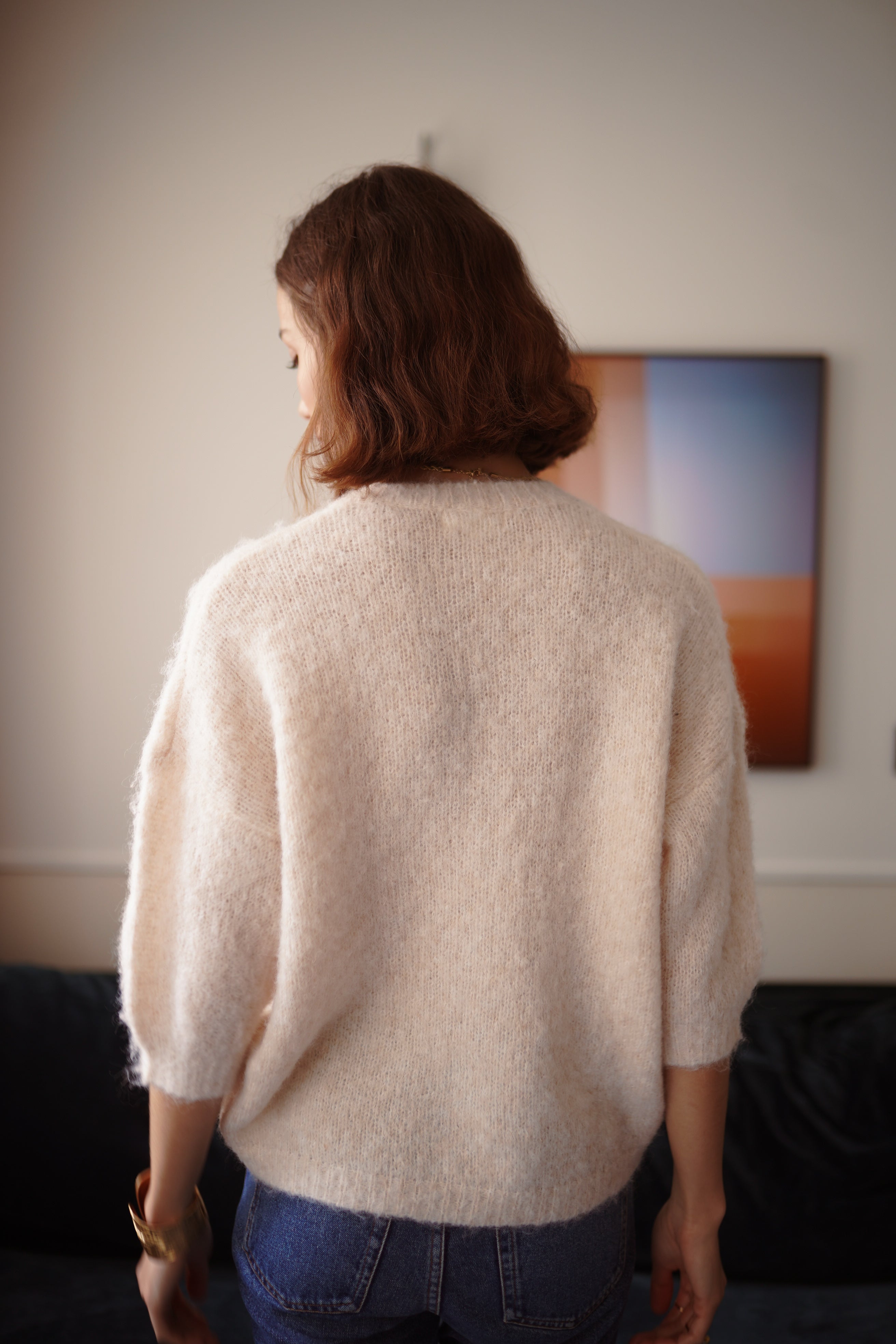 • Maille duveteuse écrue, très douce