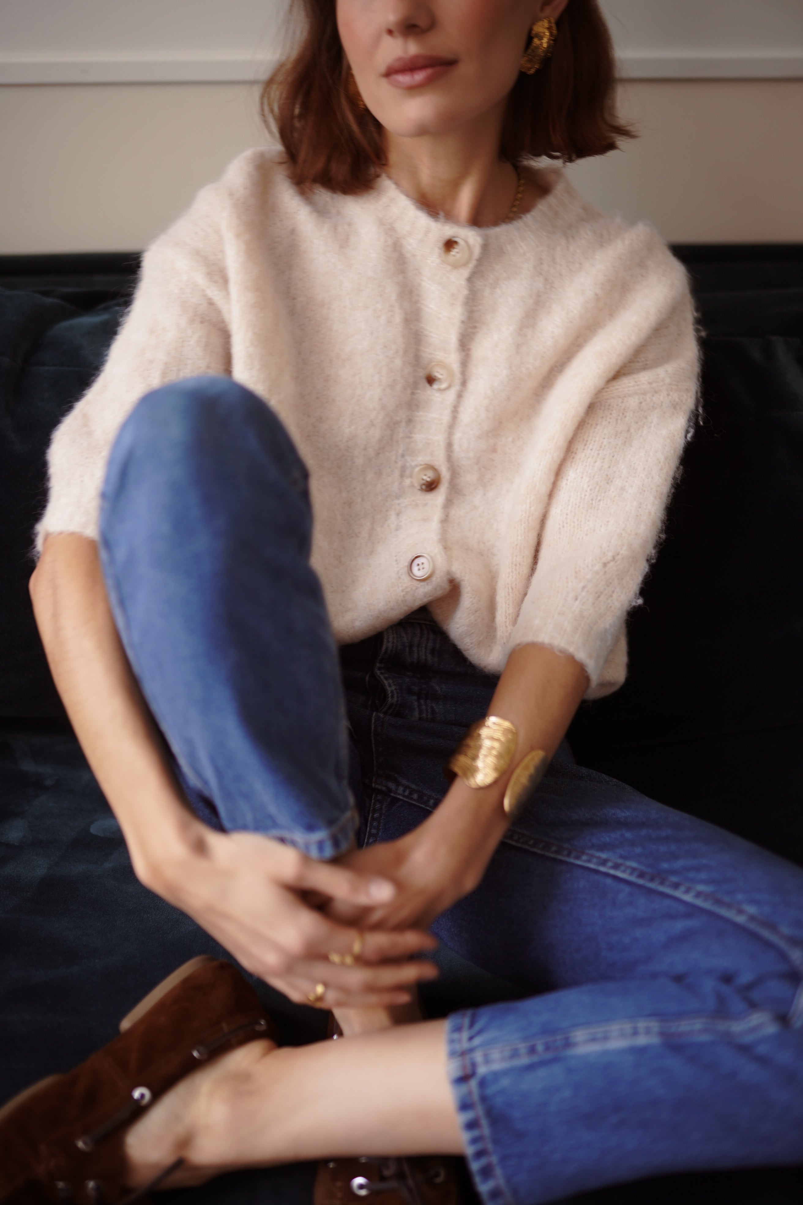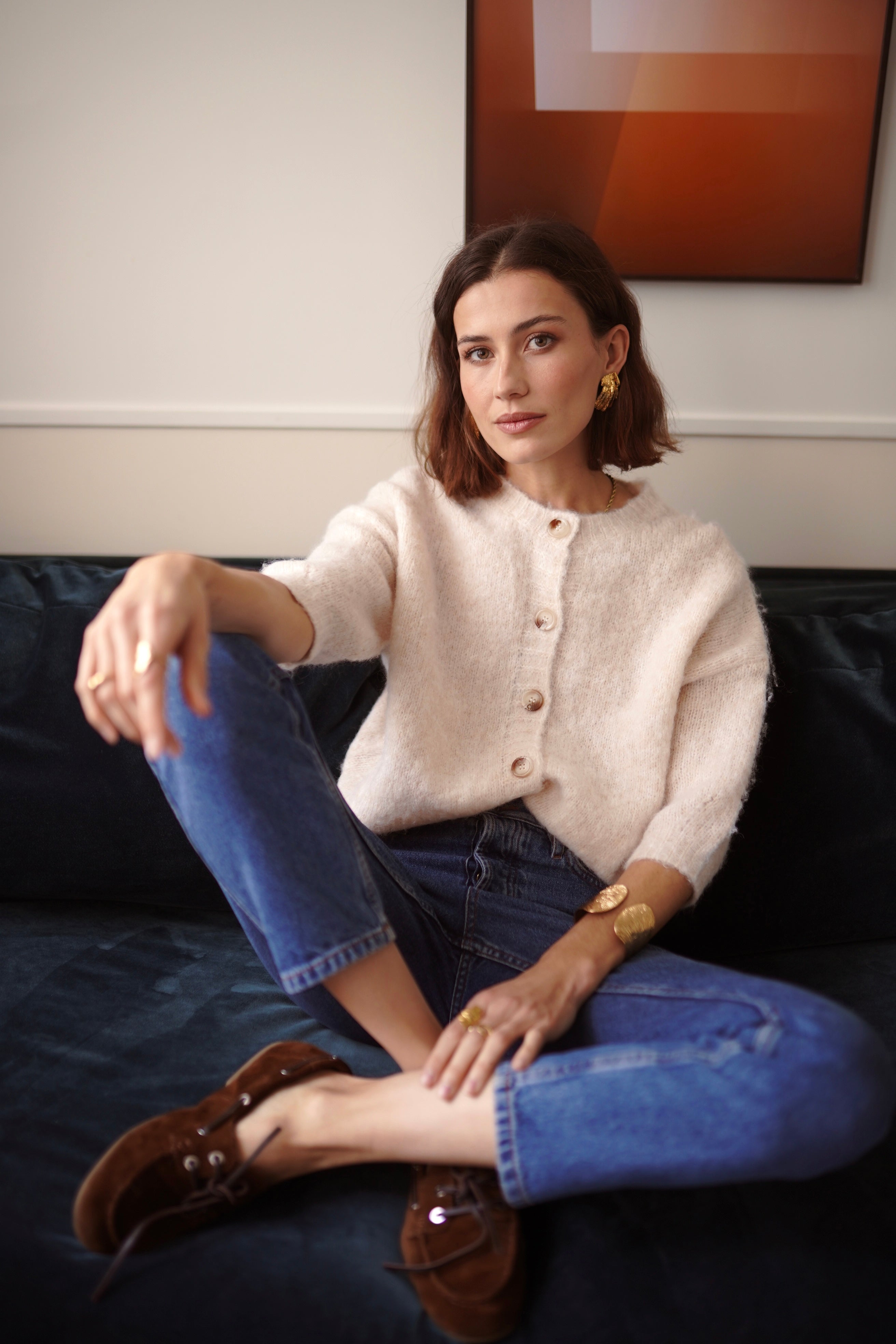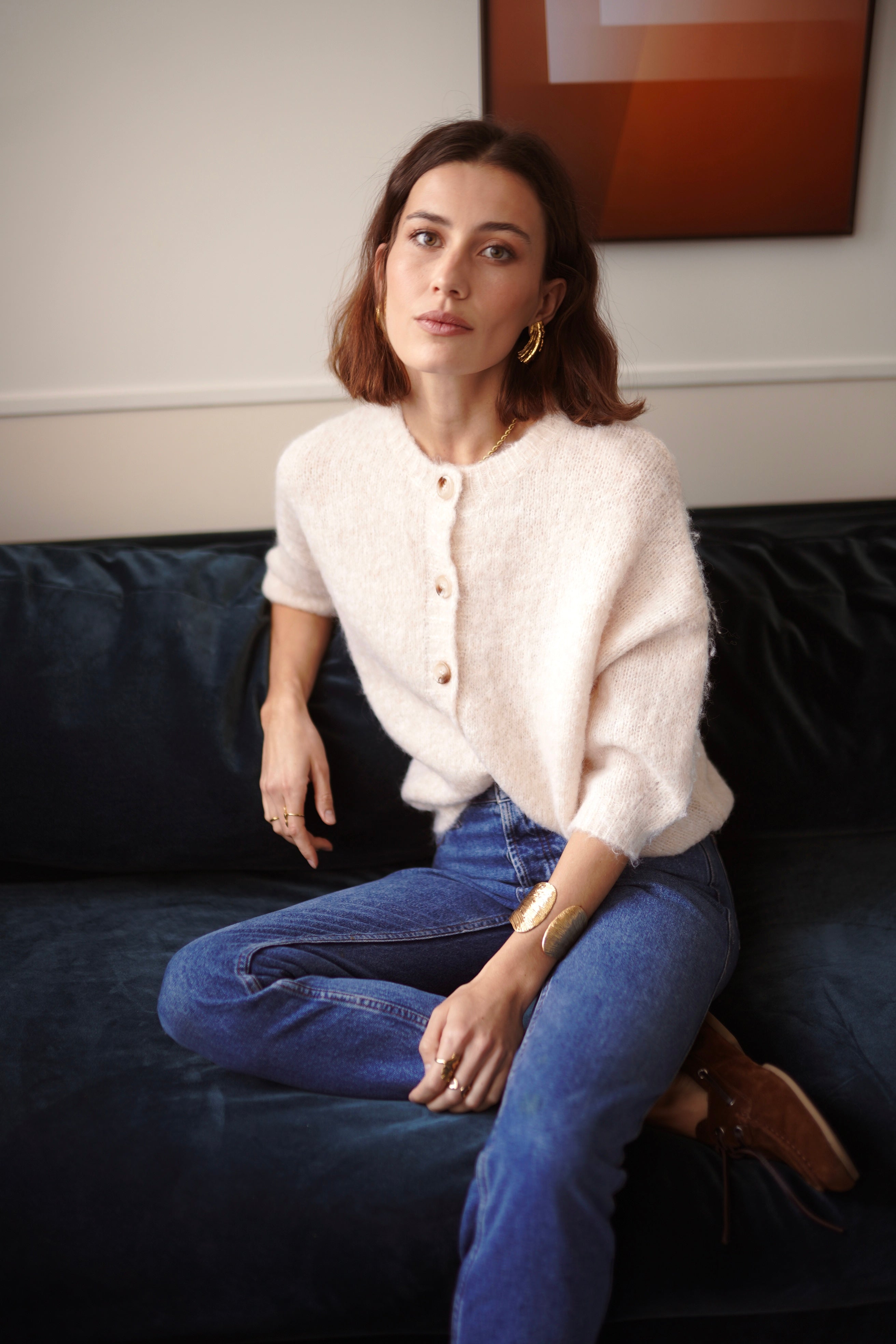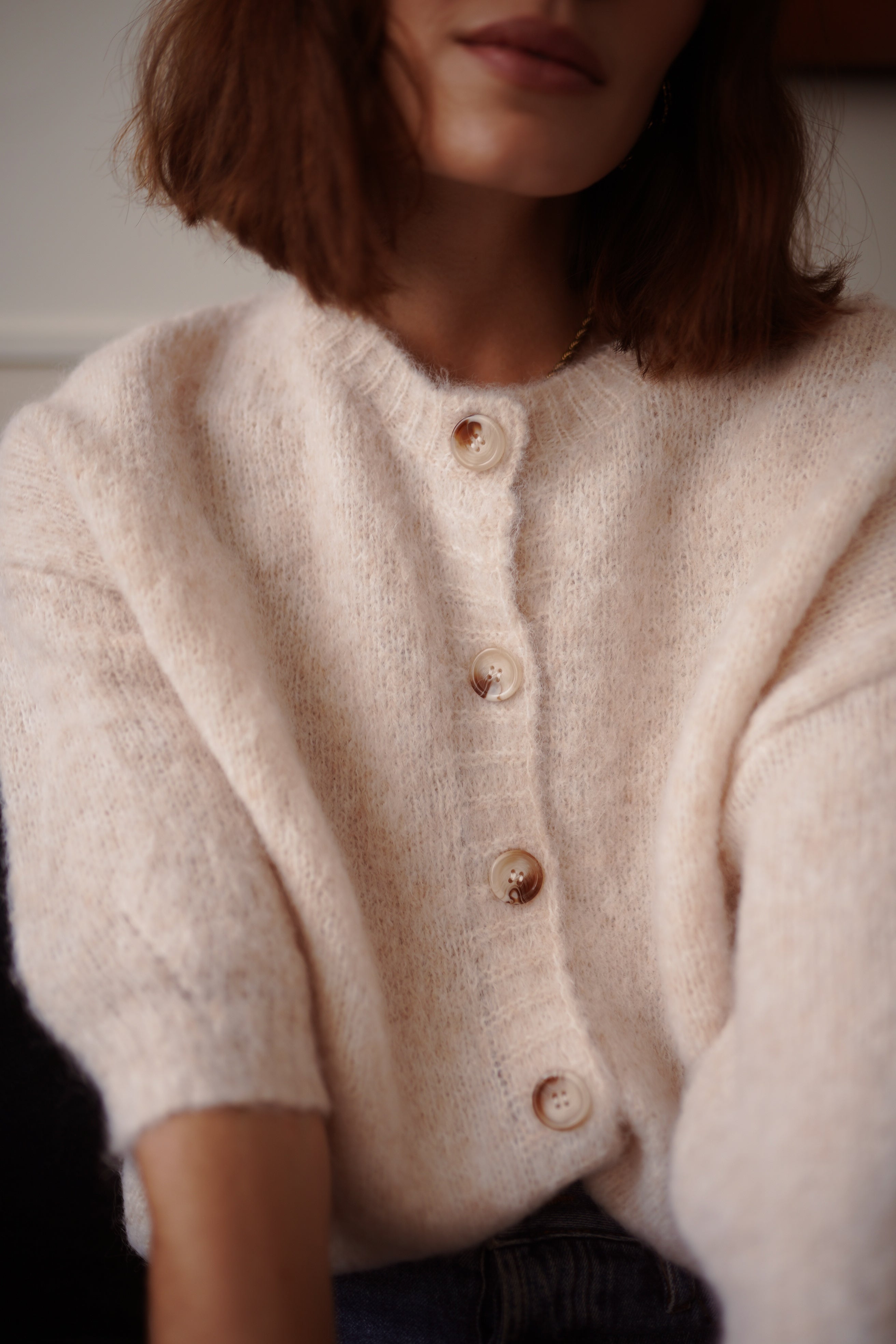 Le gilet Malia incarne la douceur absolue dans une maille vaporeuse et légère. Un cardigan épuré, féminin, sublimé par de jolis boutons nacrés qui apportent la touche subtile et lumineuse.