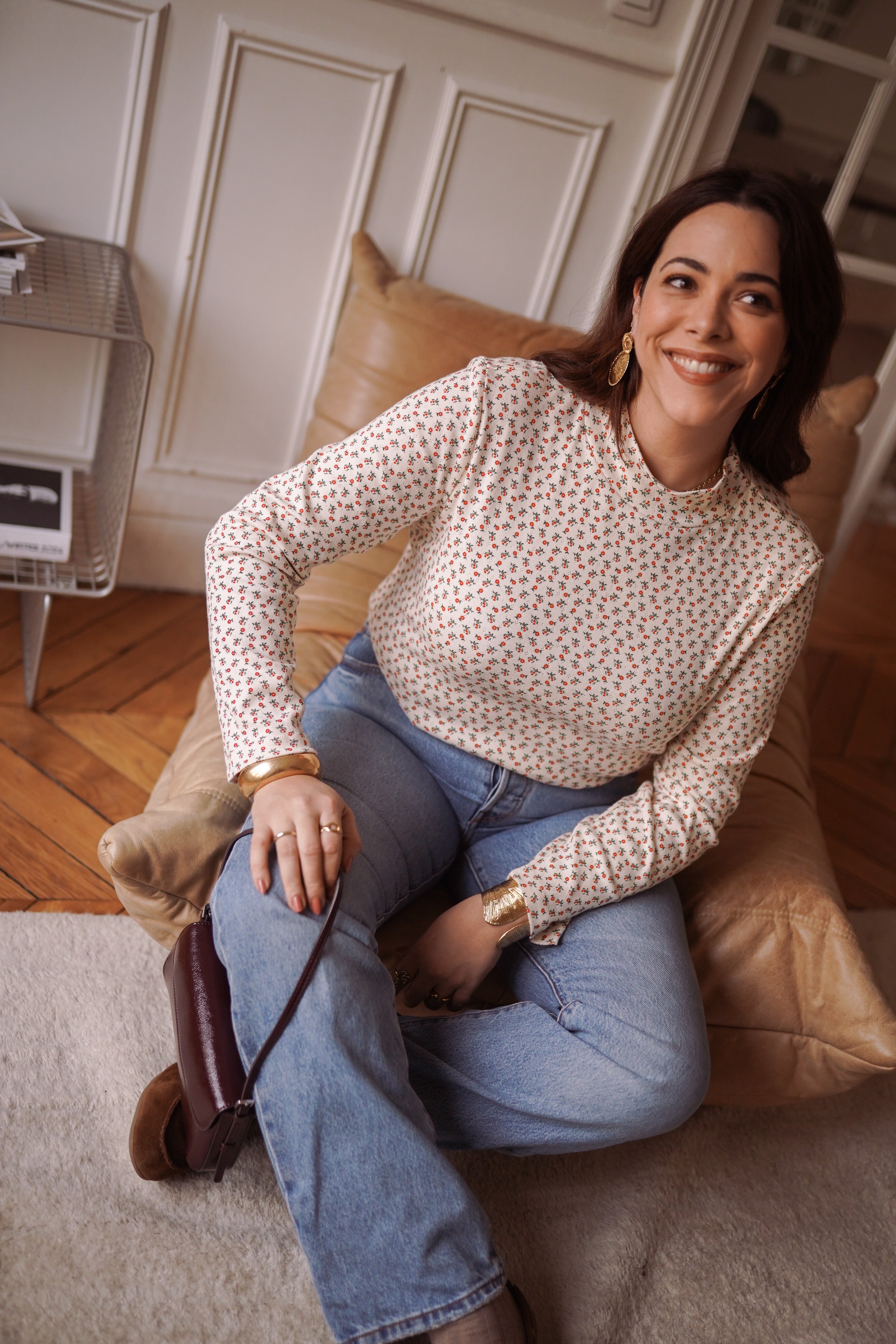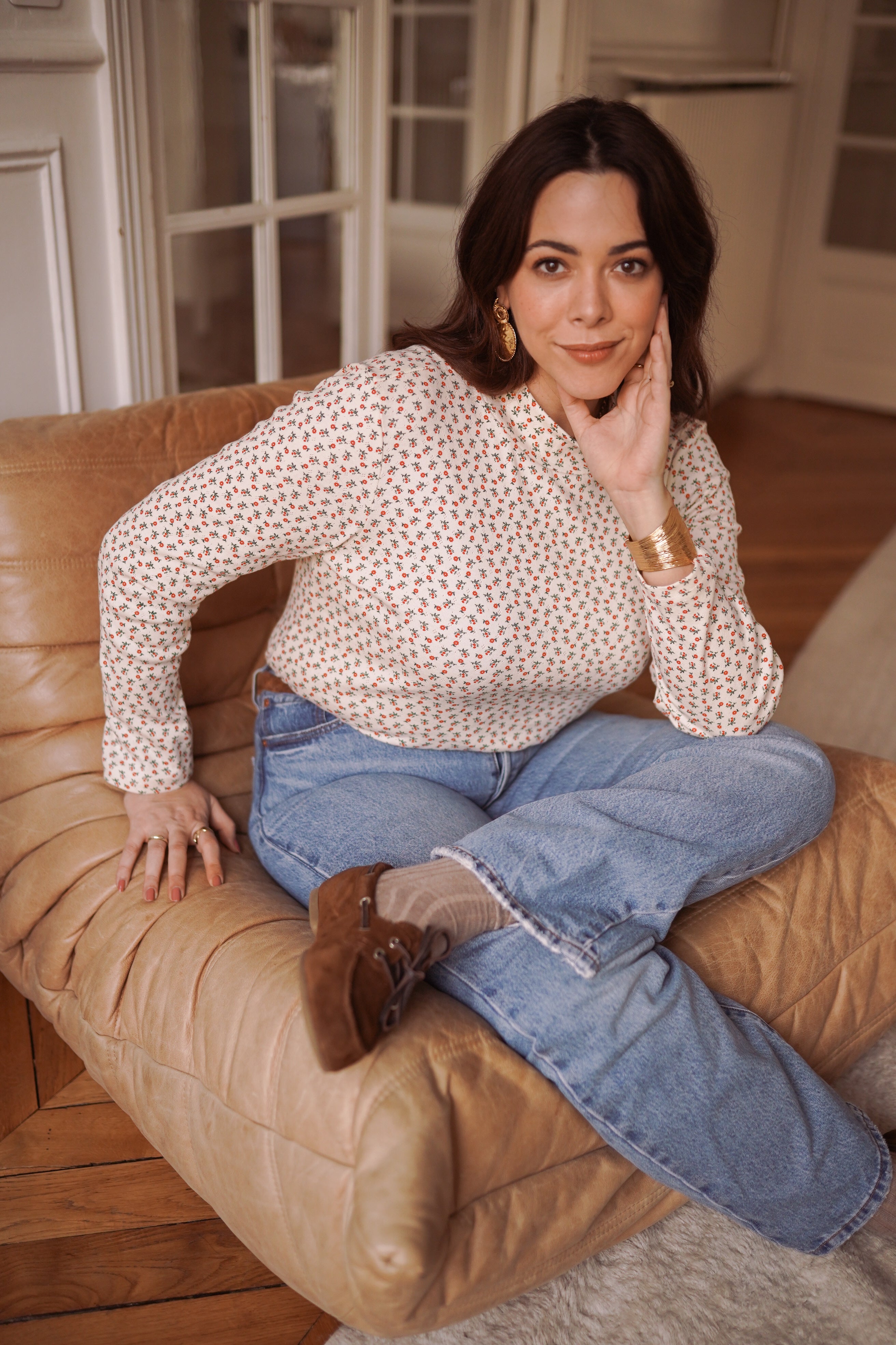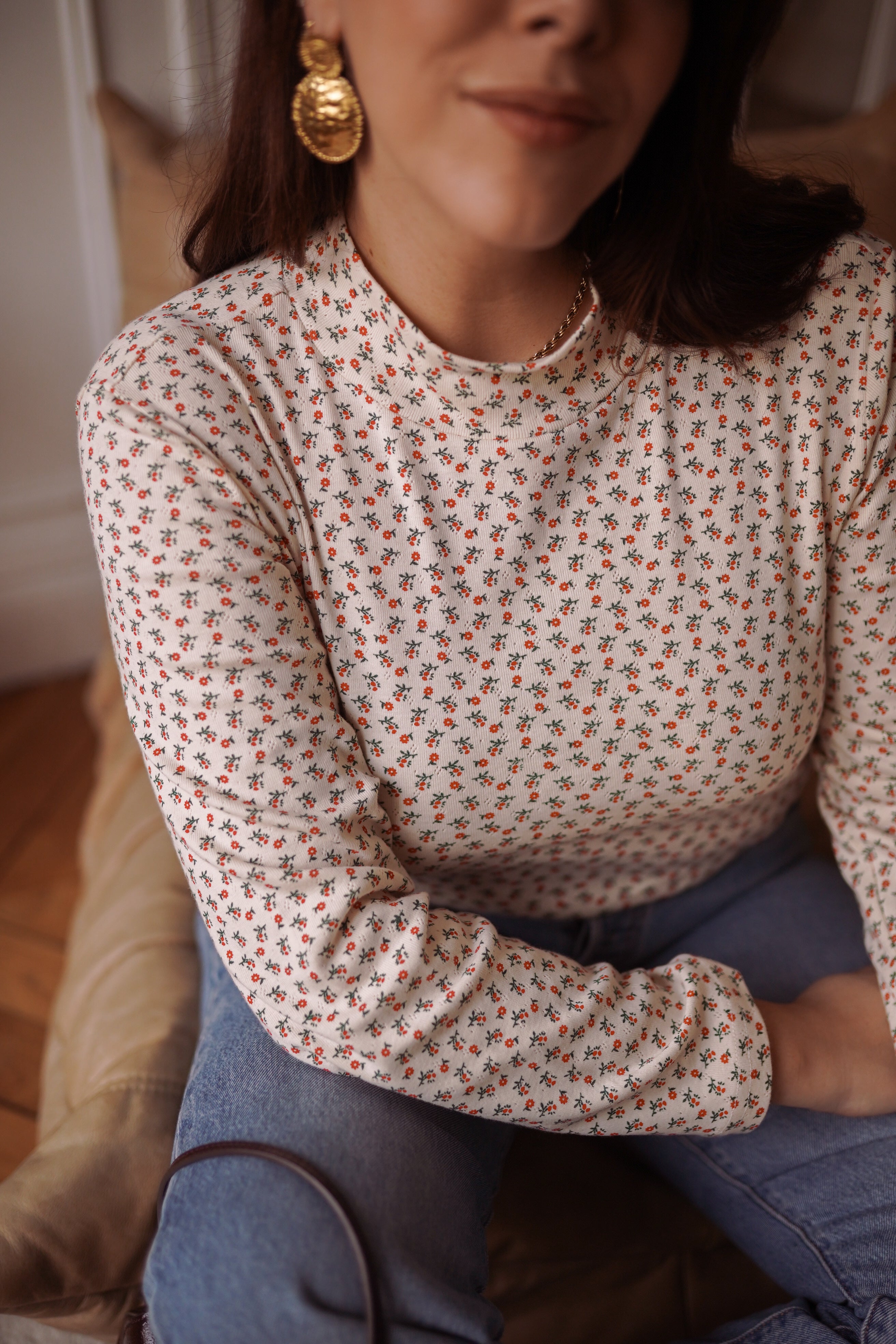 - Imprimé fleuri discret sur fond écru, délicat et intemporel