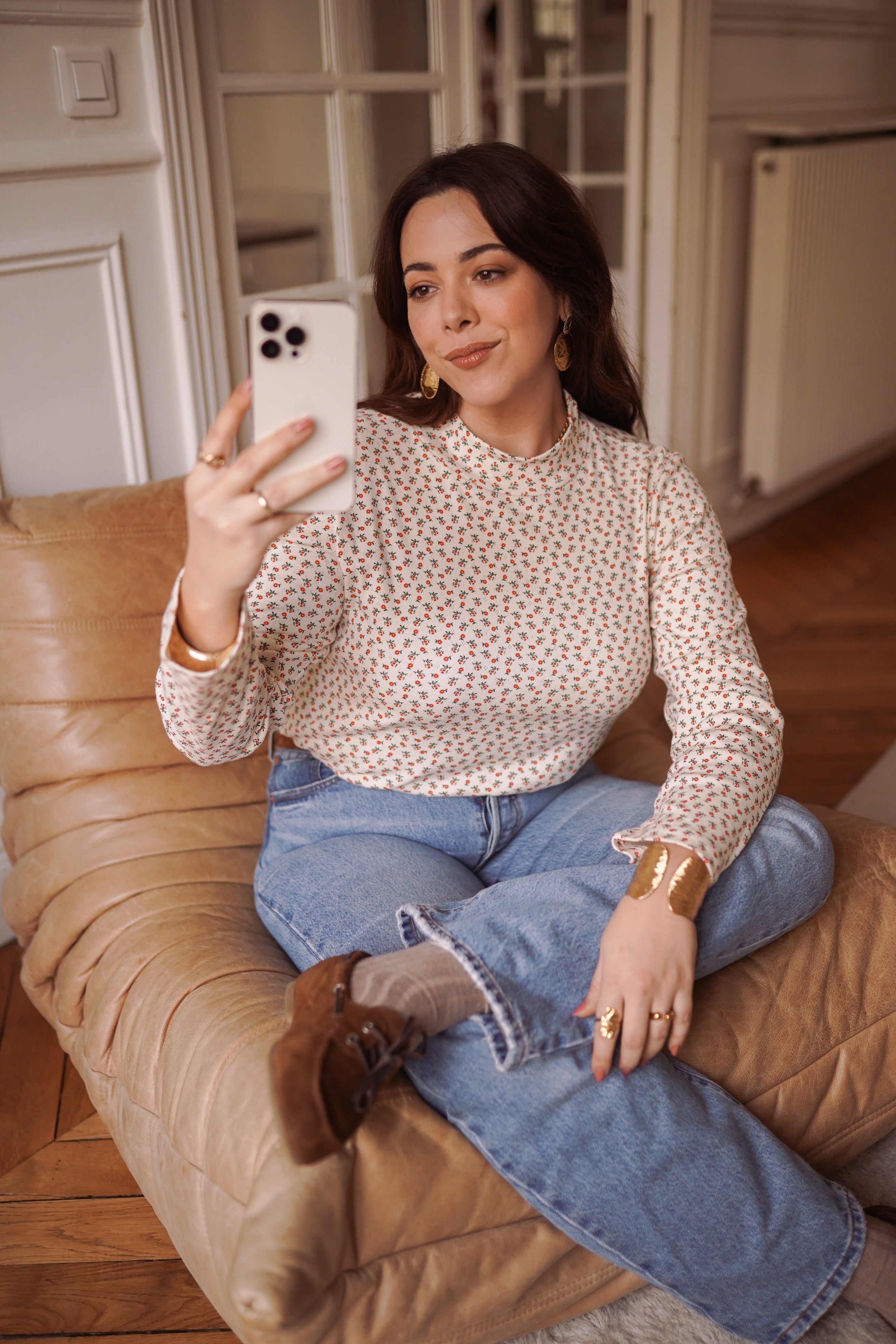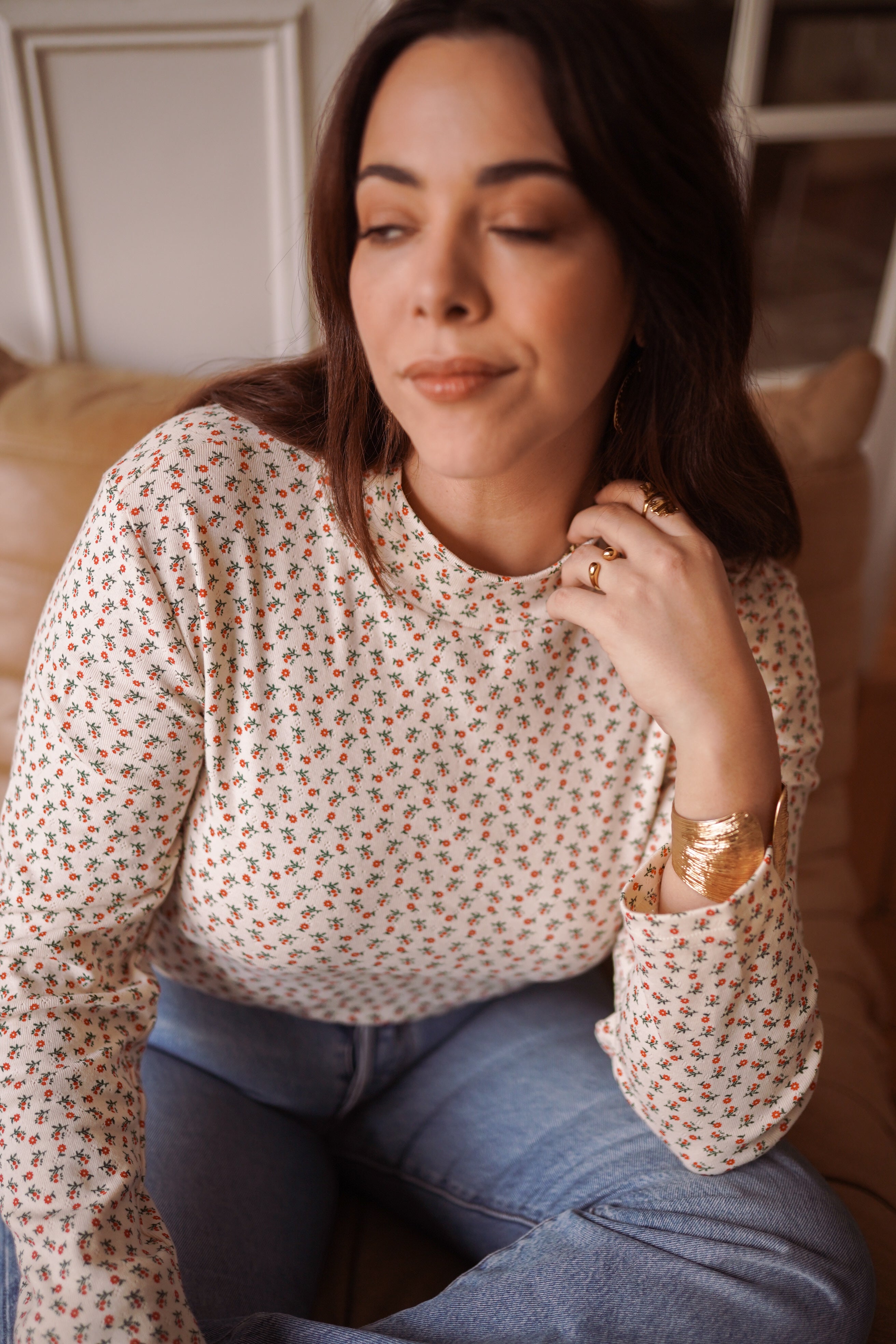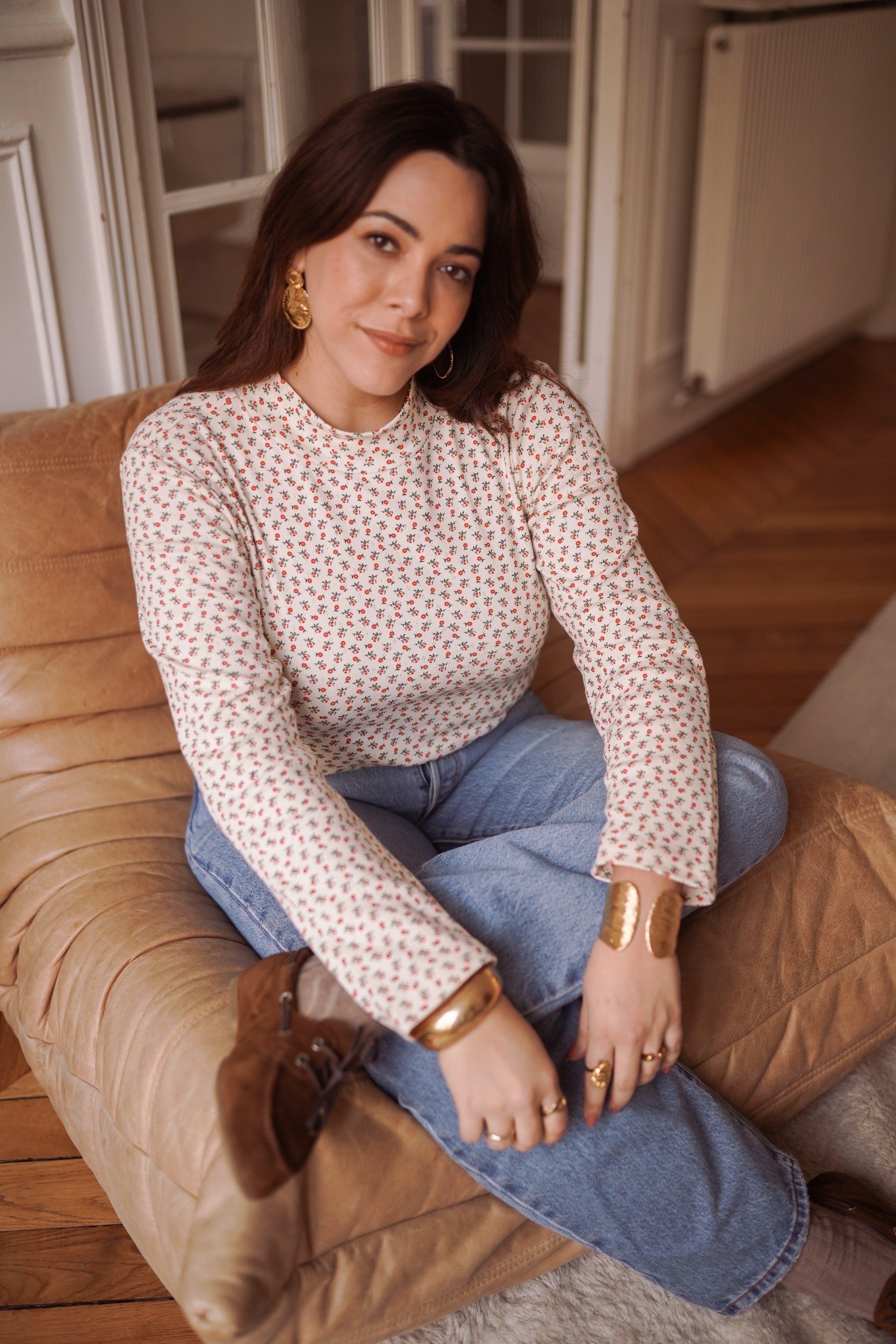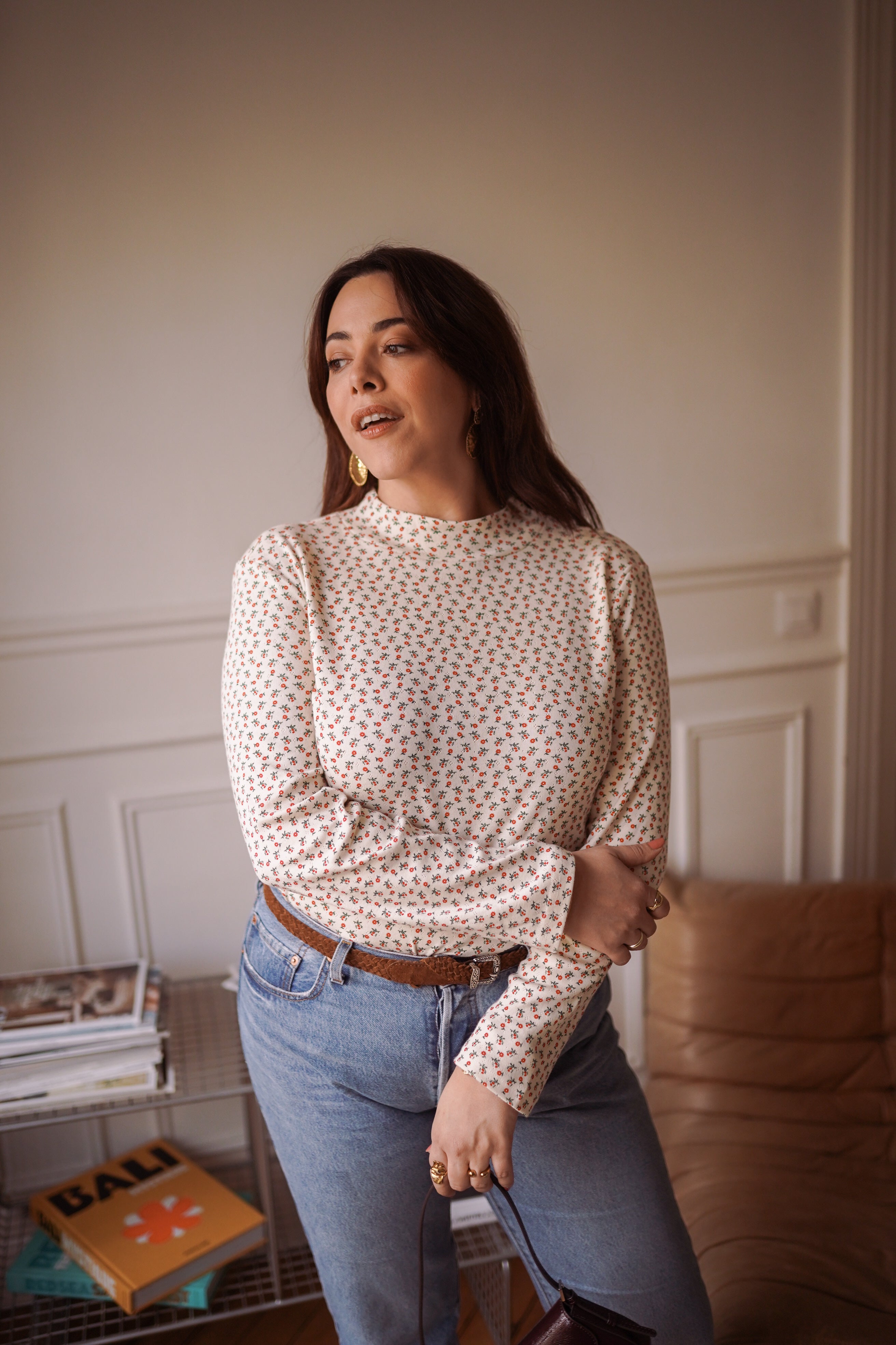 - Imprimé fleuri discret sur fond écru, délicat et intemporel