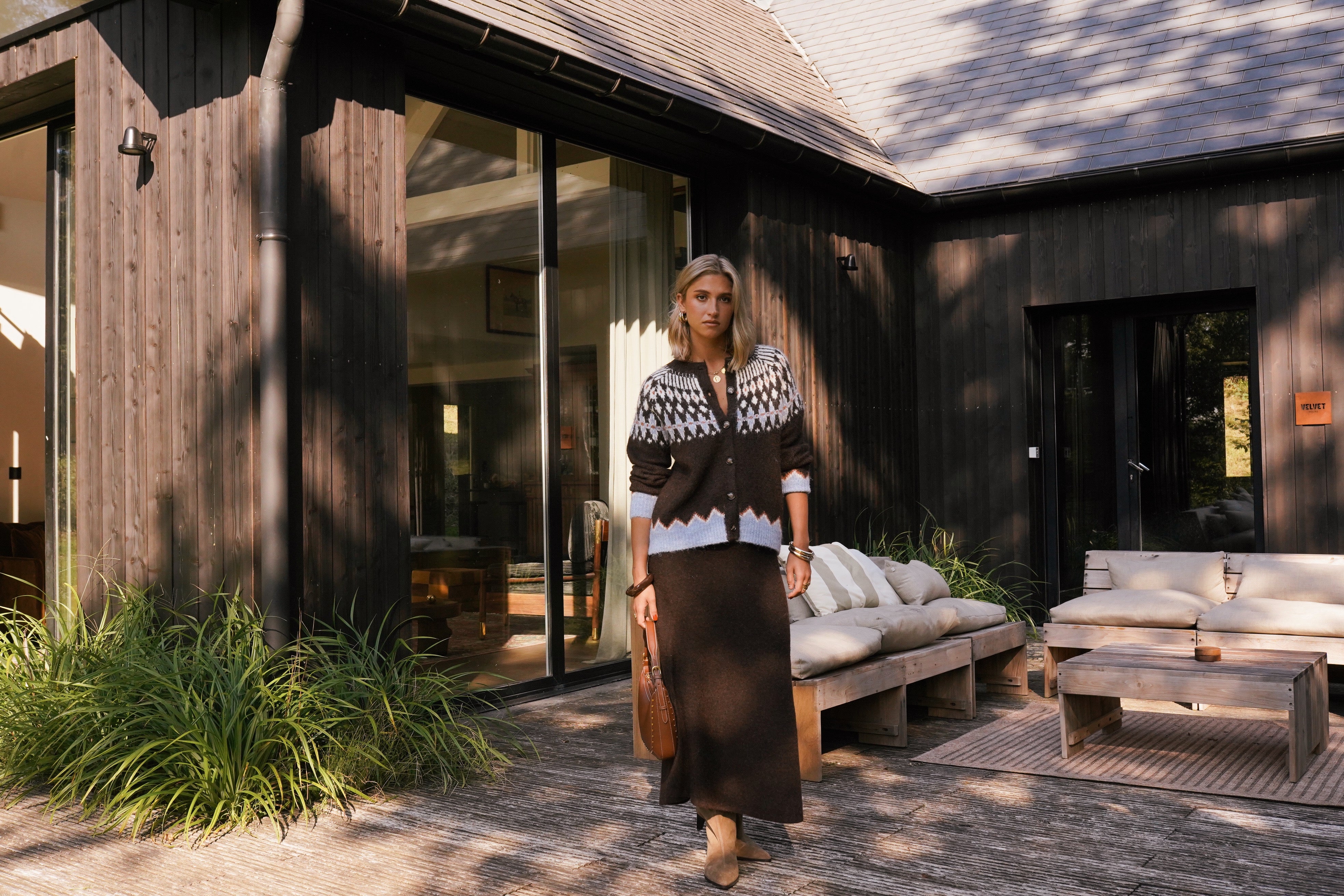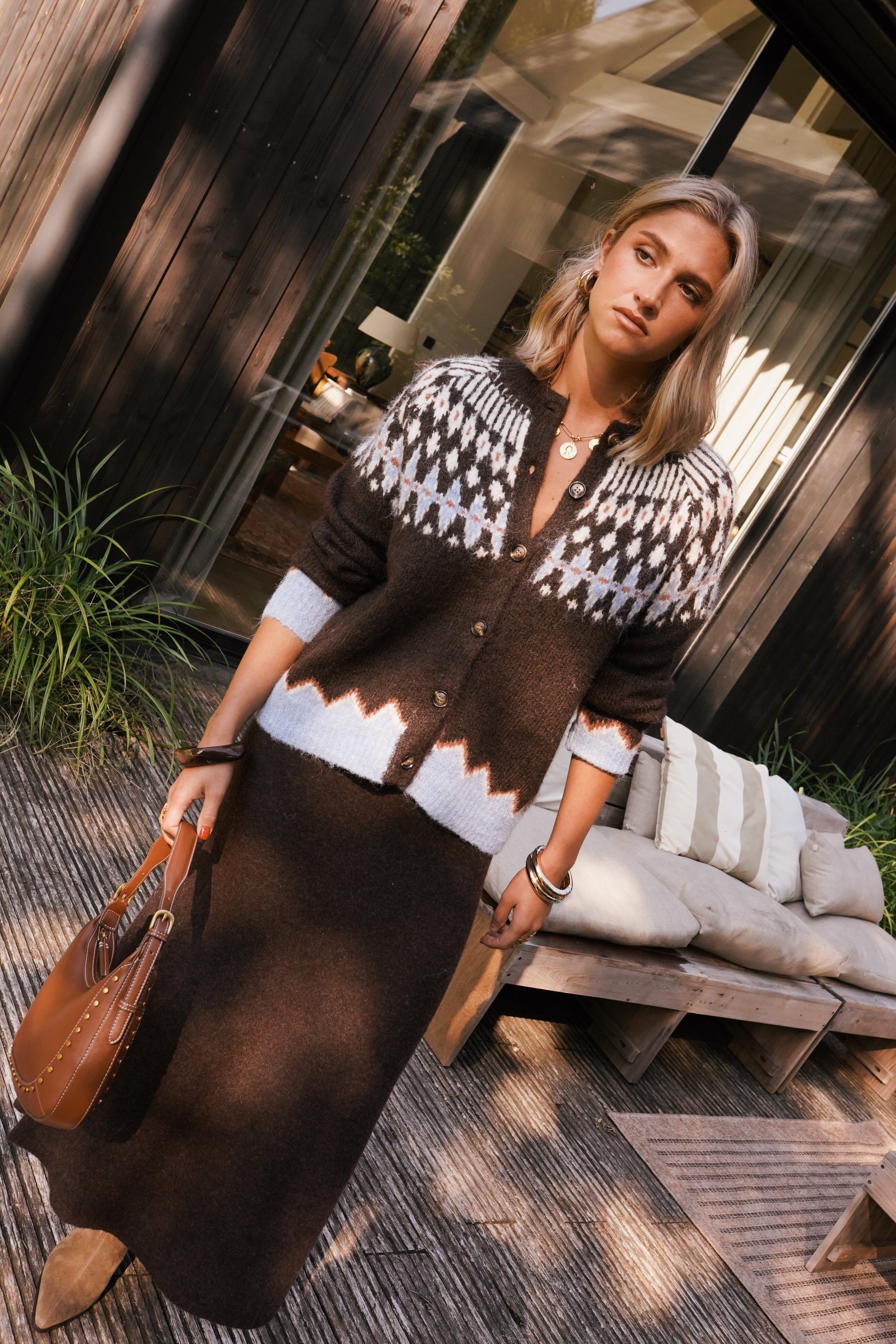 La jupe Maren incarne le confort et la féminité en version hivernale. Confectionnée dans une maille douce et épaisse, elle reprend les mêmes tons que le gilet Rafa pour un total look chaud et équilibré.