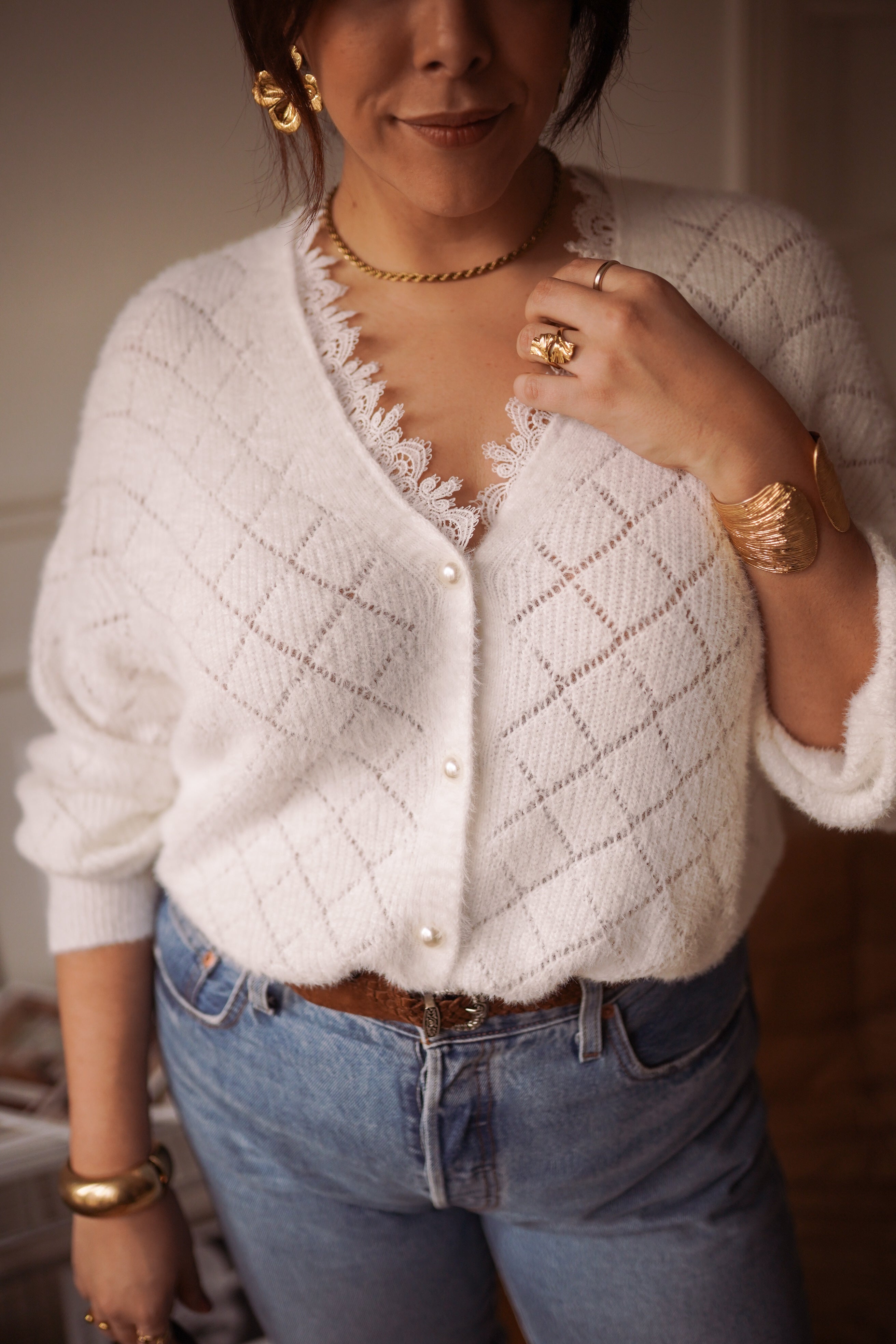 - Motif ajouré délicat en losanges pour une touche féminine