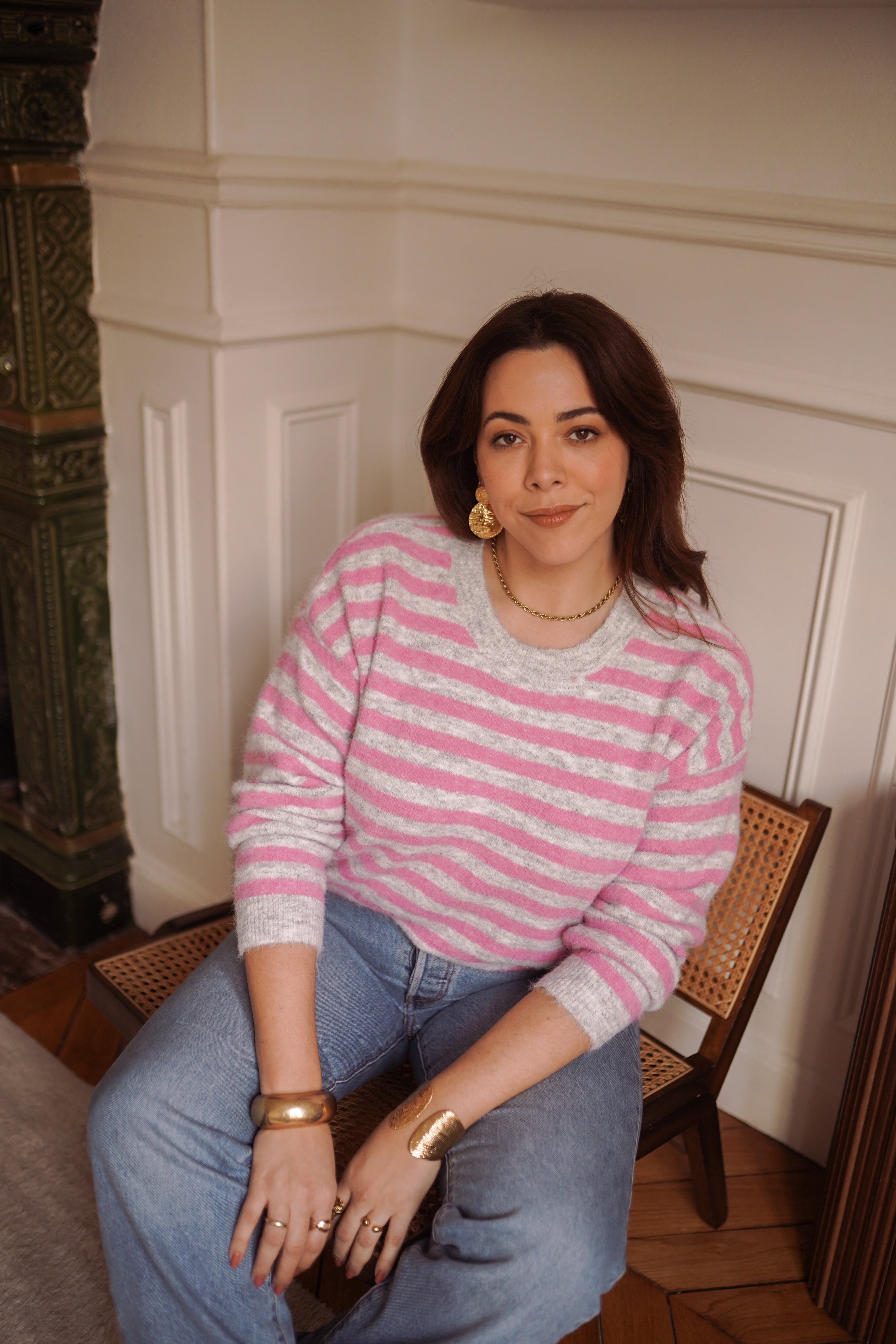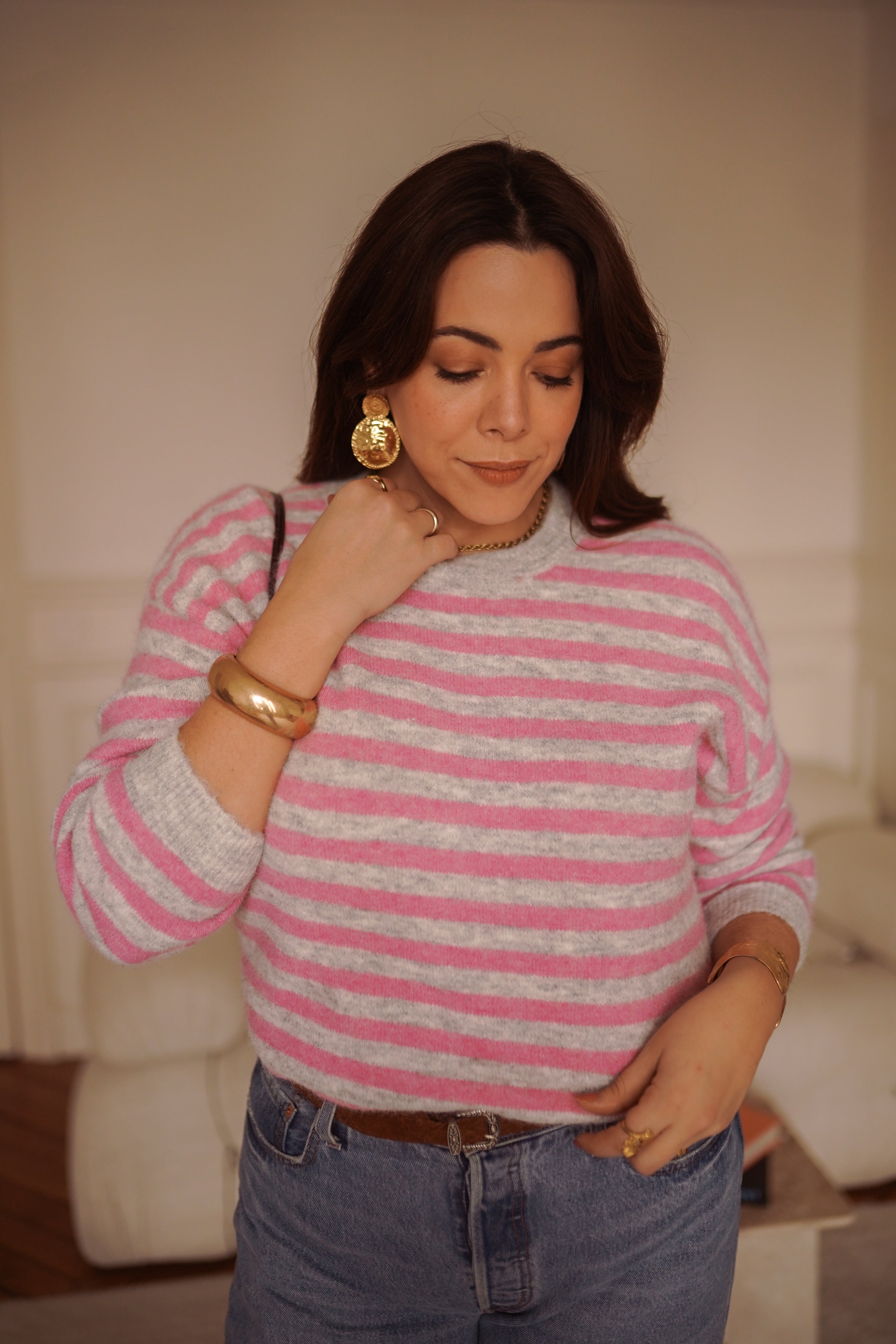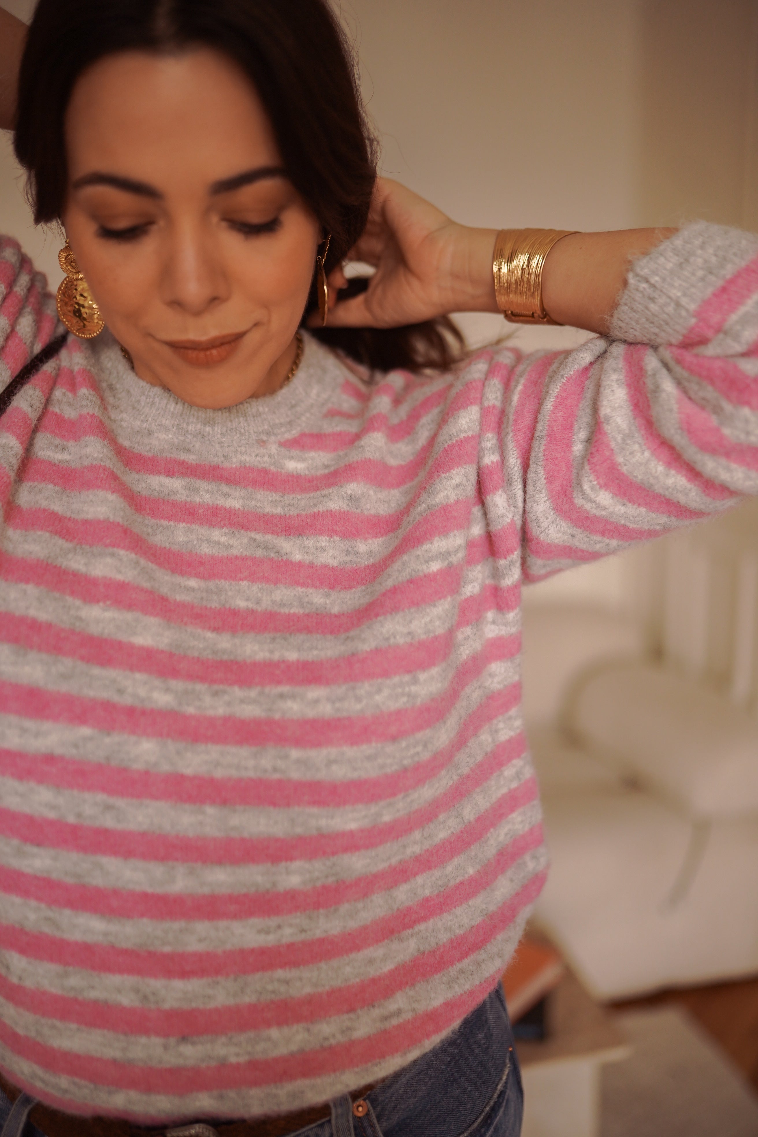 - Rayures rose et gris clair, fraîches et faciles à porter