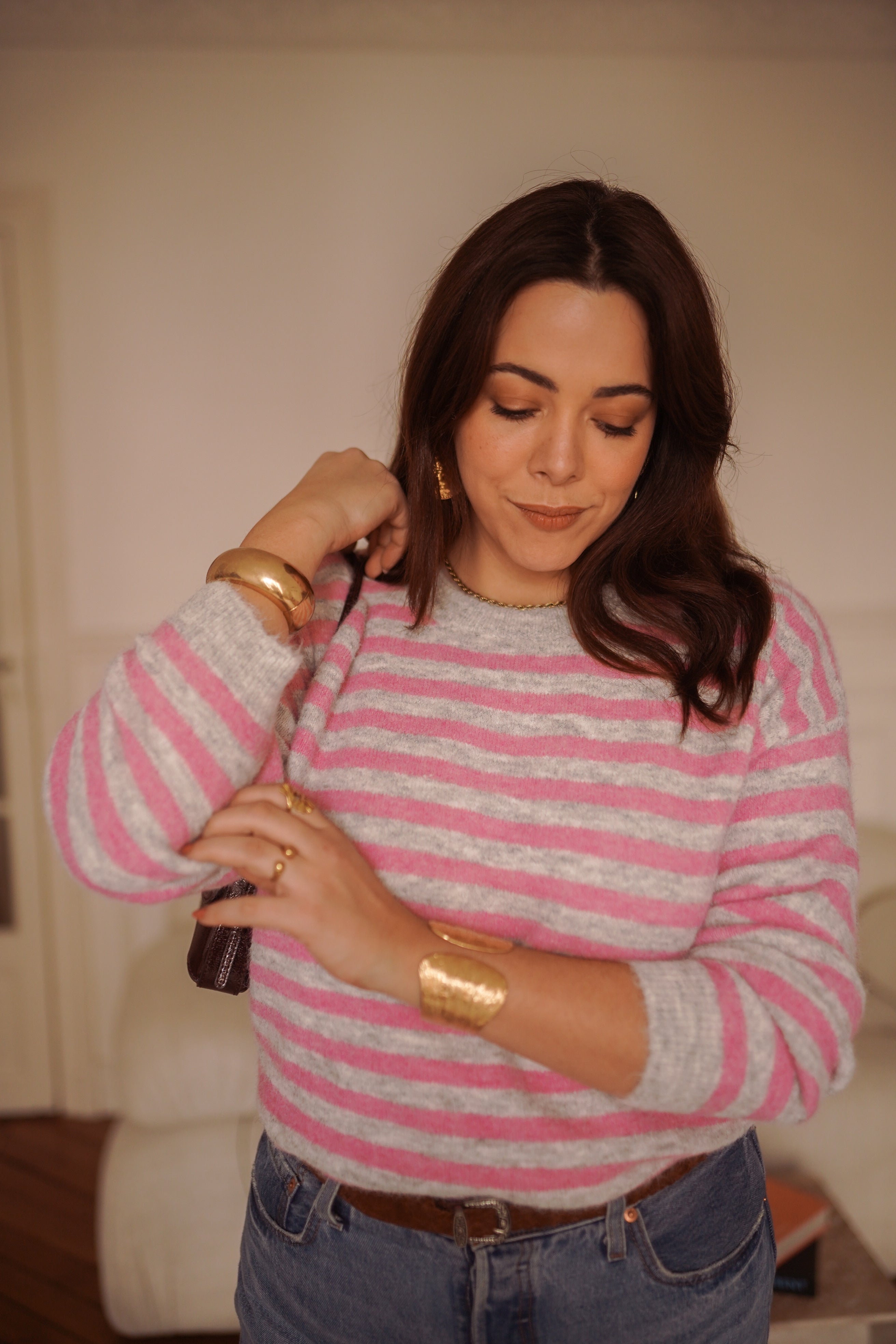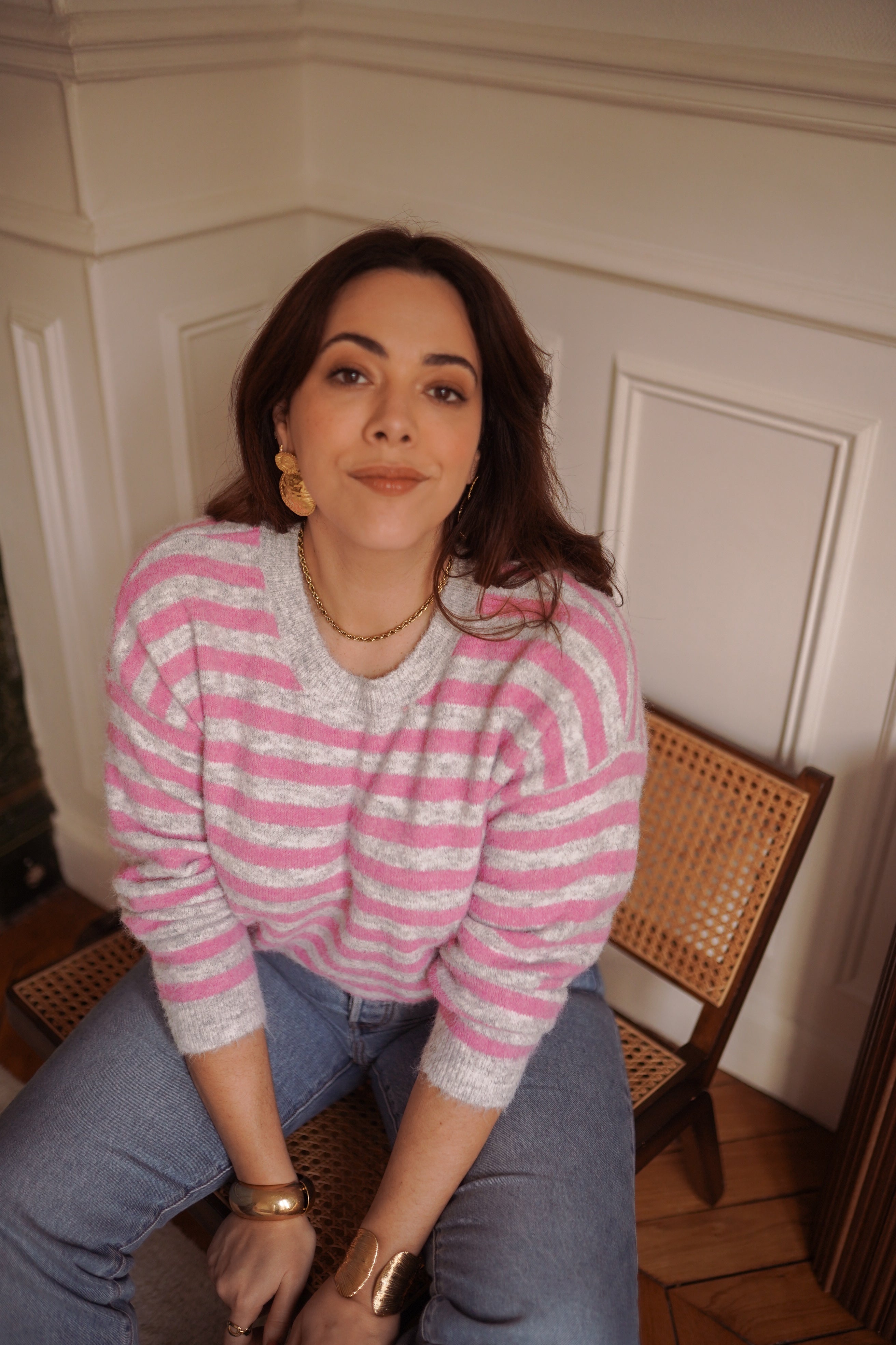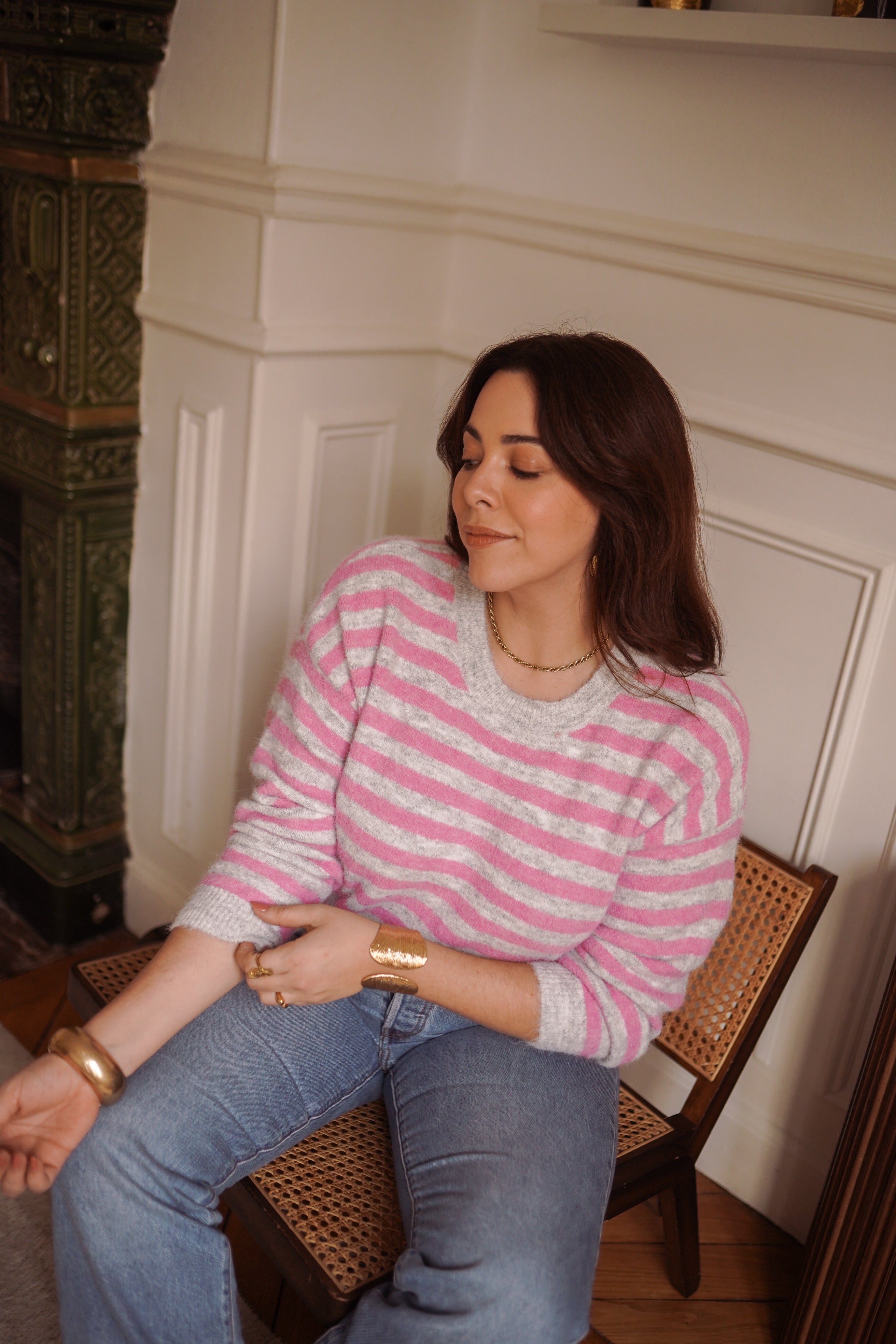 - Rayures rose et gris clair, fraîches et faciles à porter