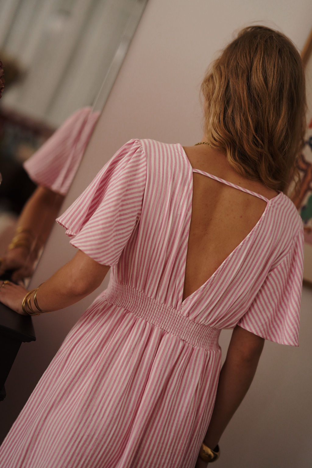 Short pink striped dress 100% cotton.