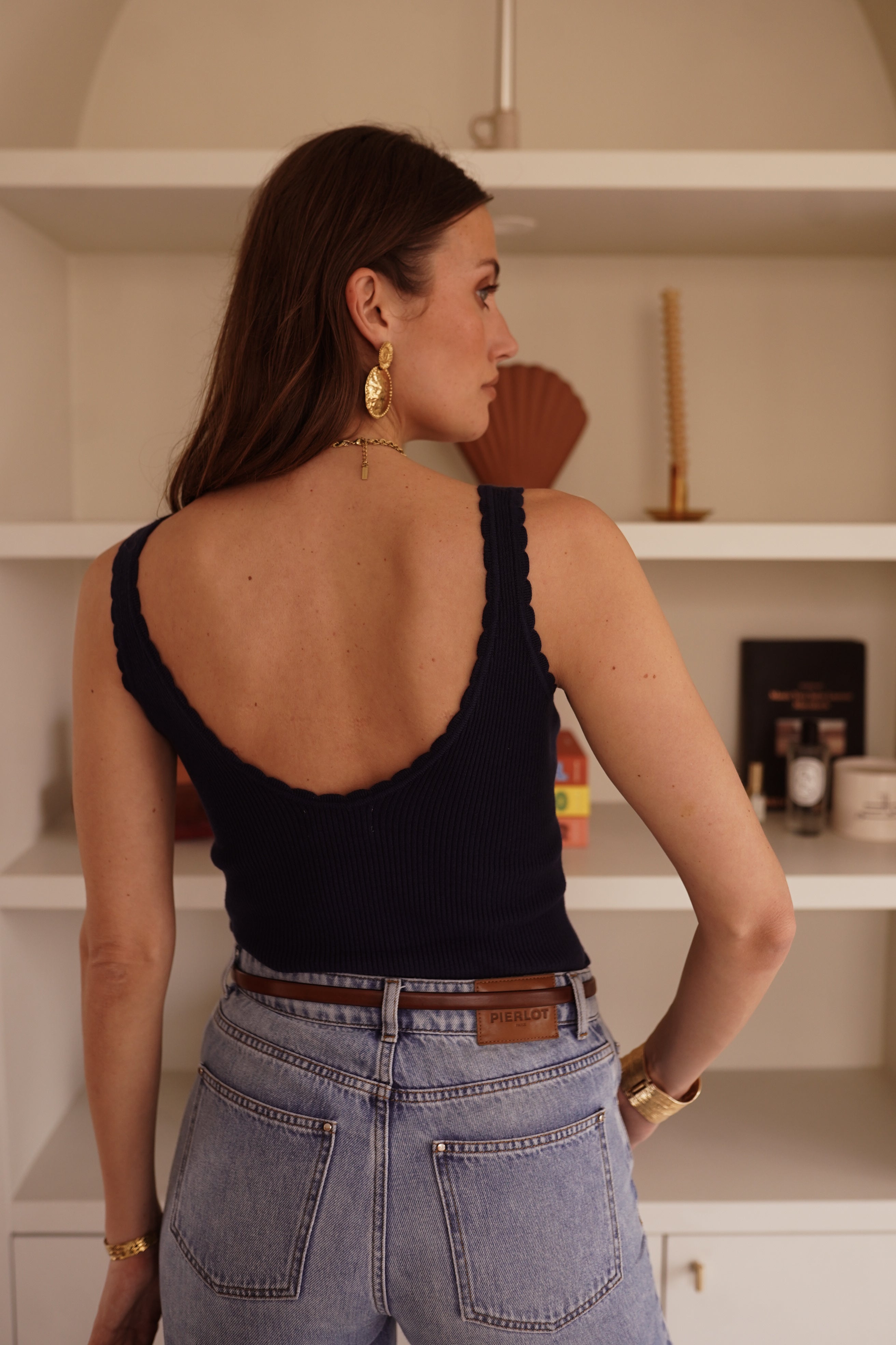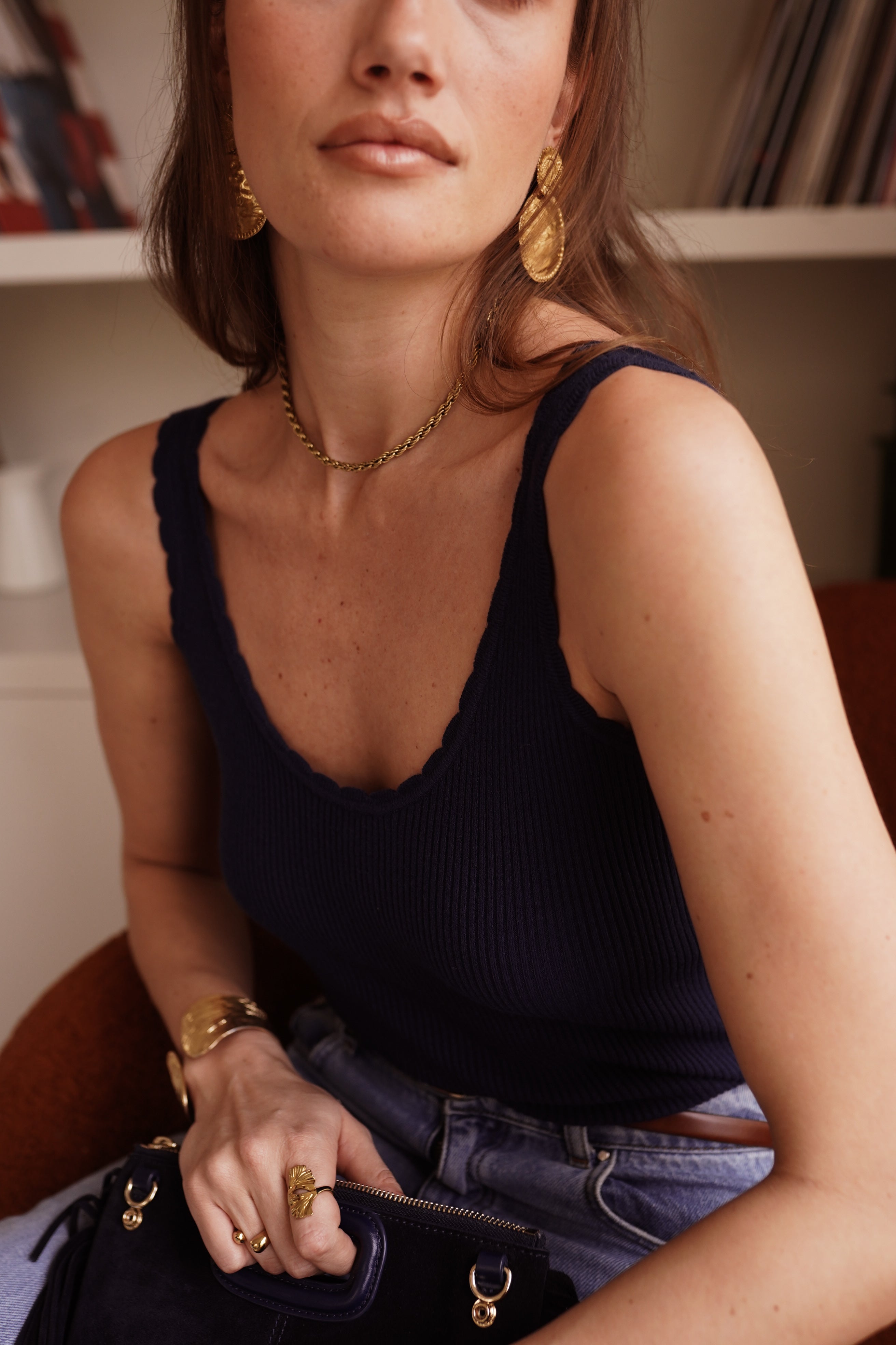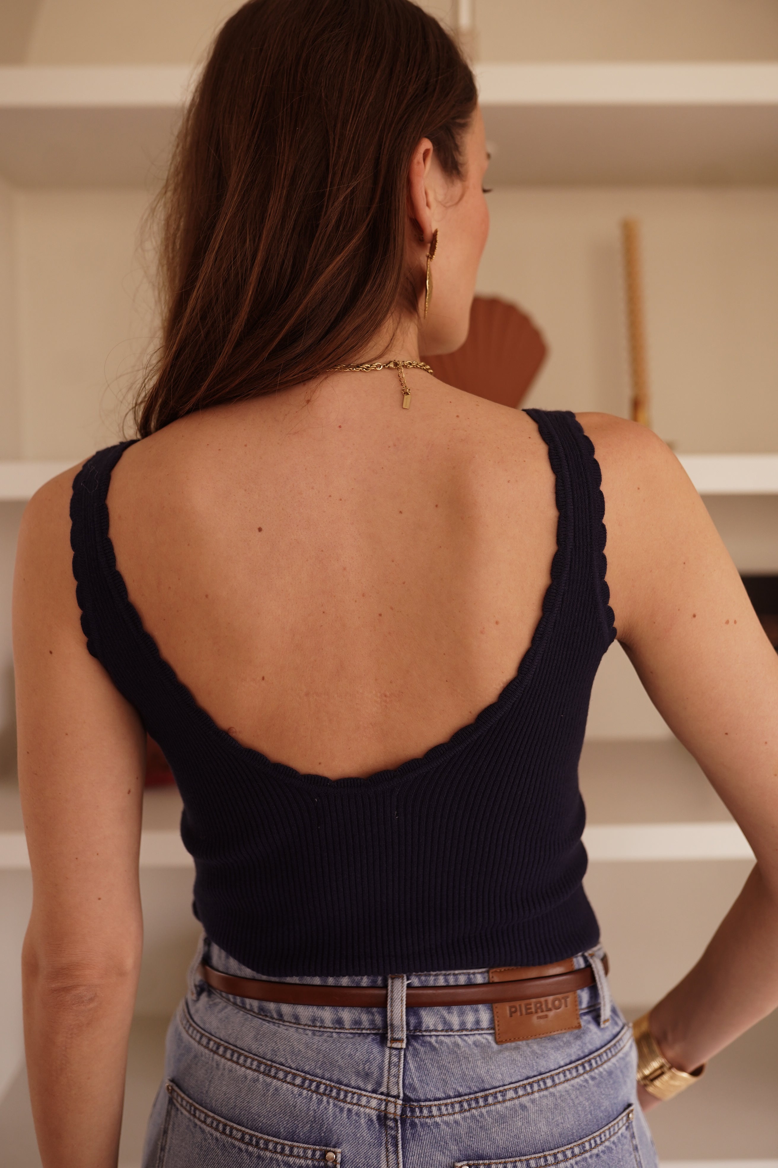 - Coupe ajustée, fines bretelles et encolure délicatement festonnée