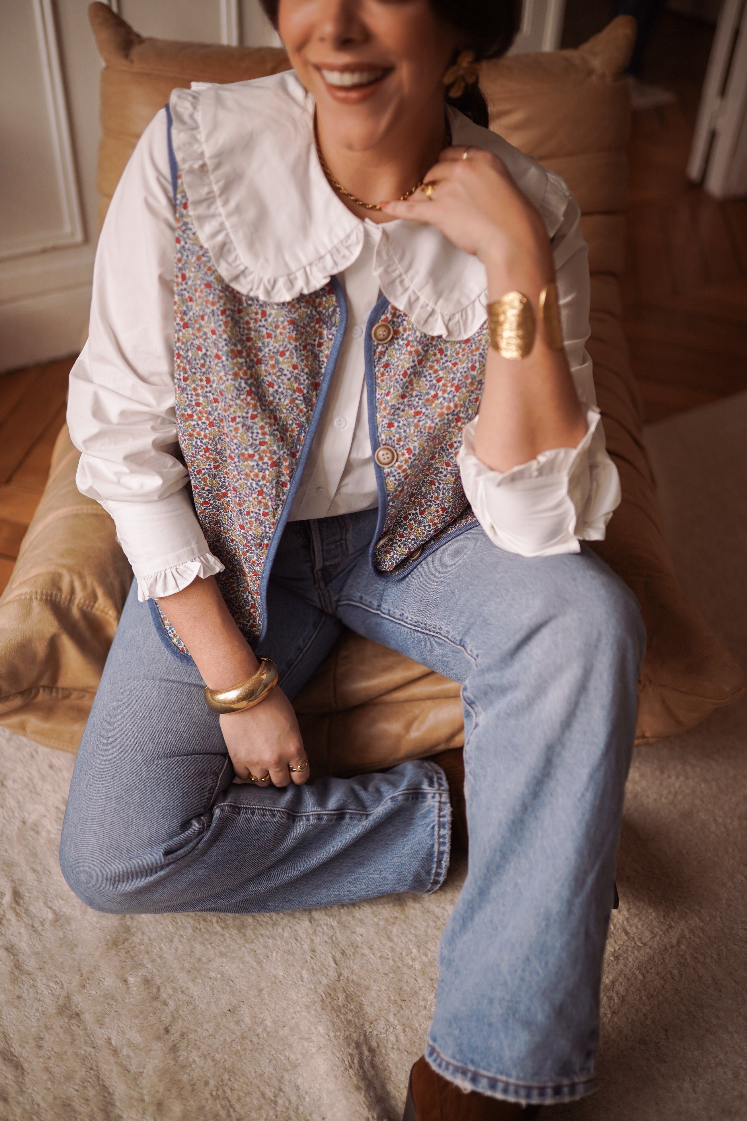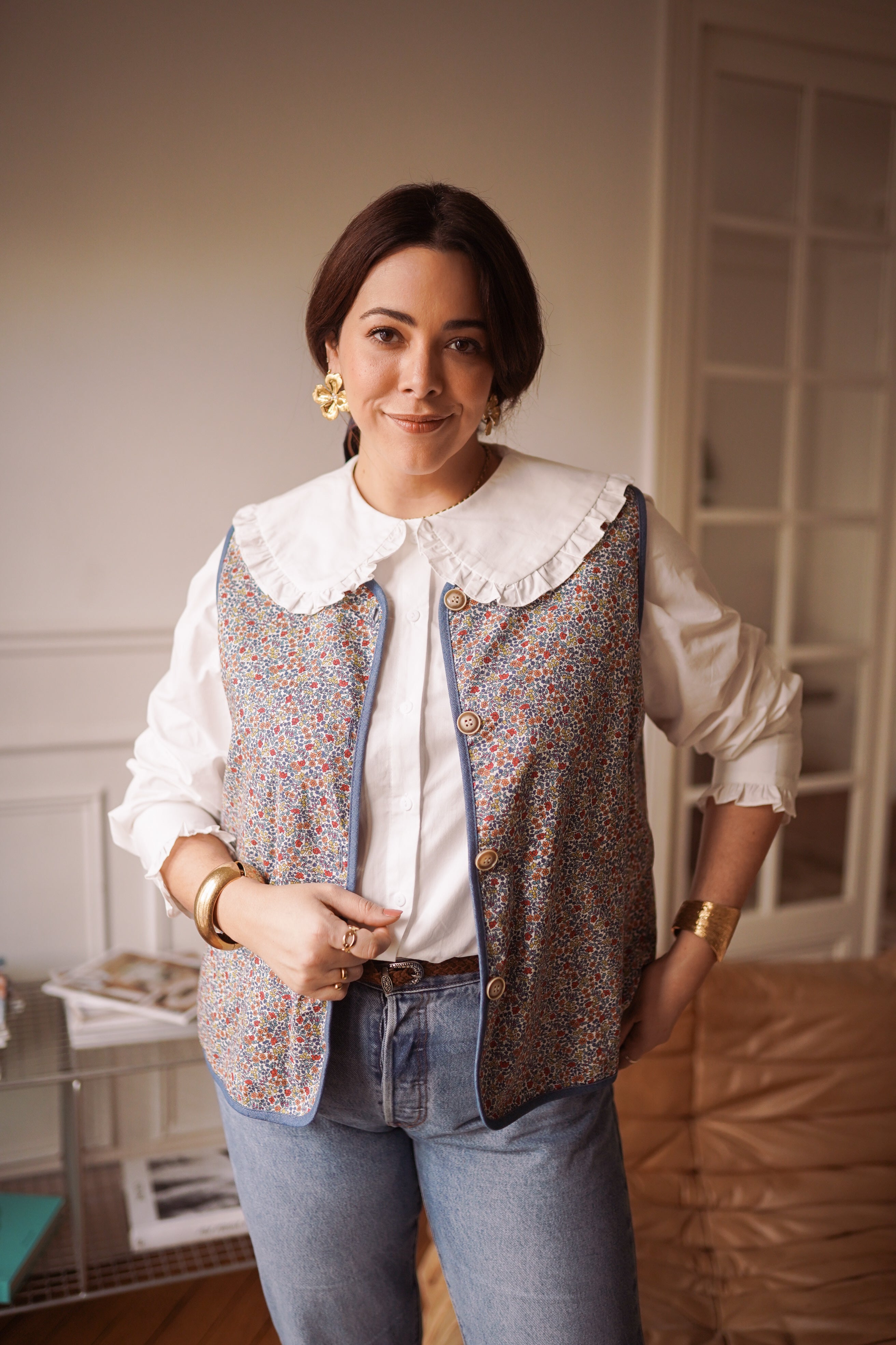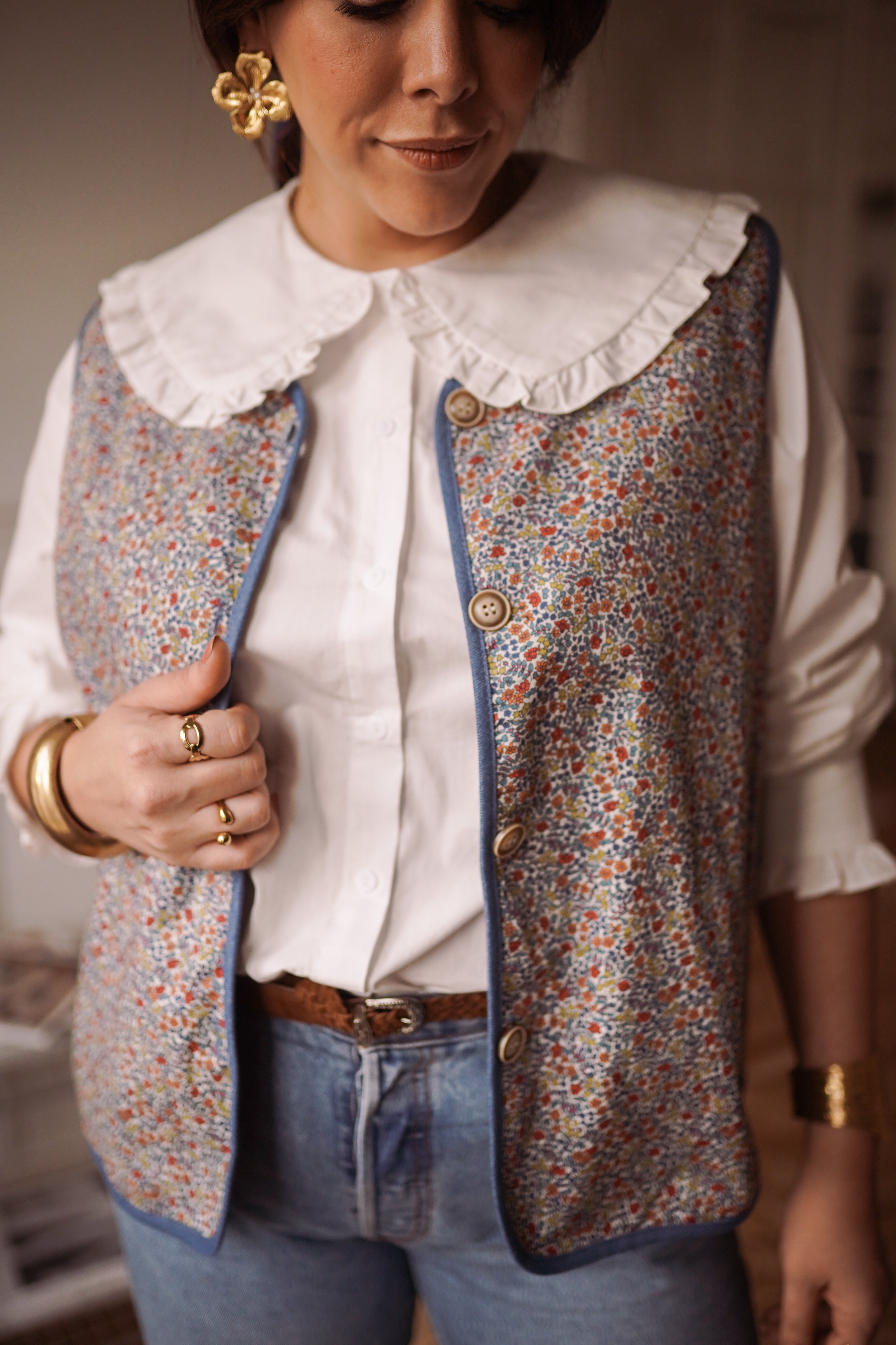 - Fermeture par boutons sur le devant, pratique et décorative