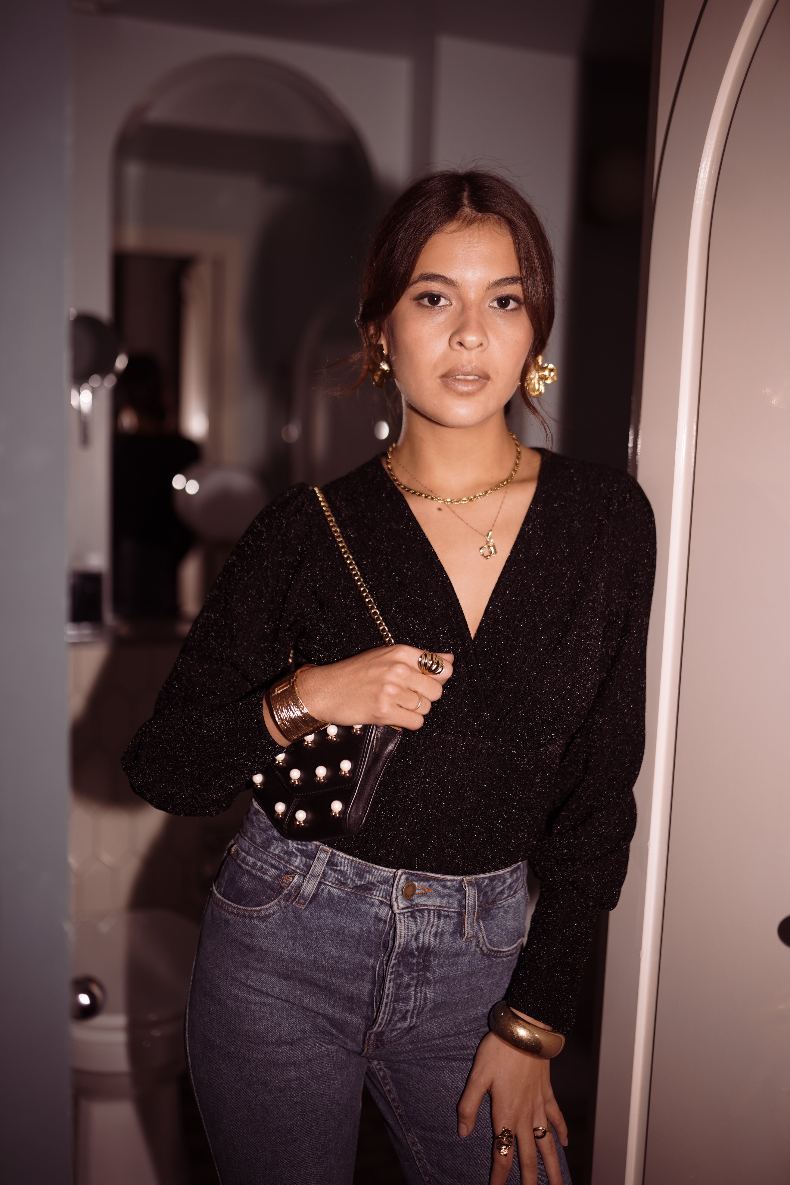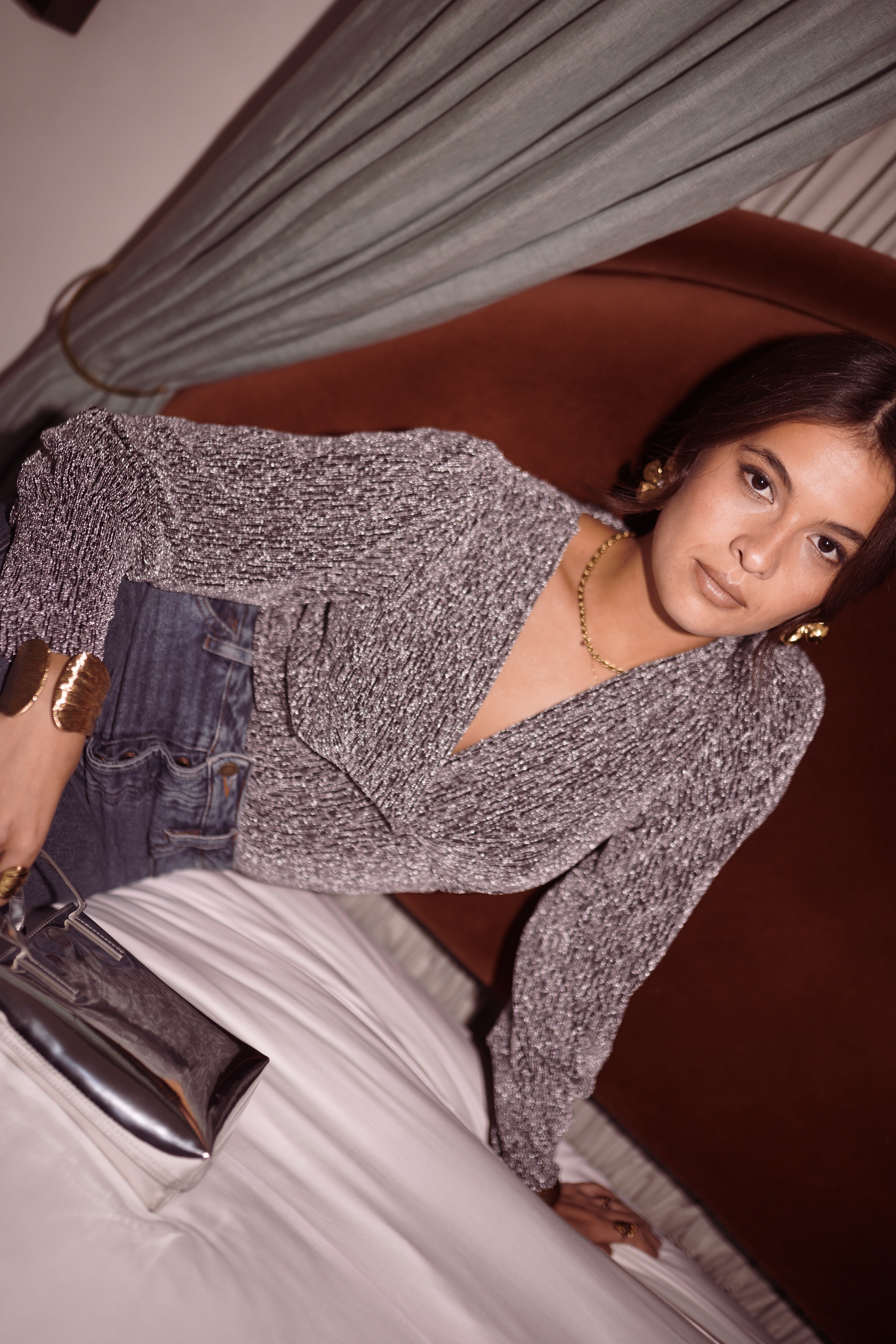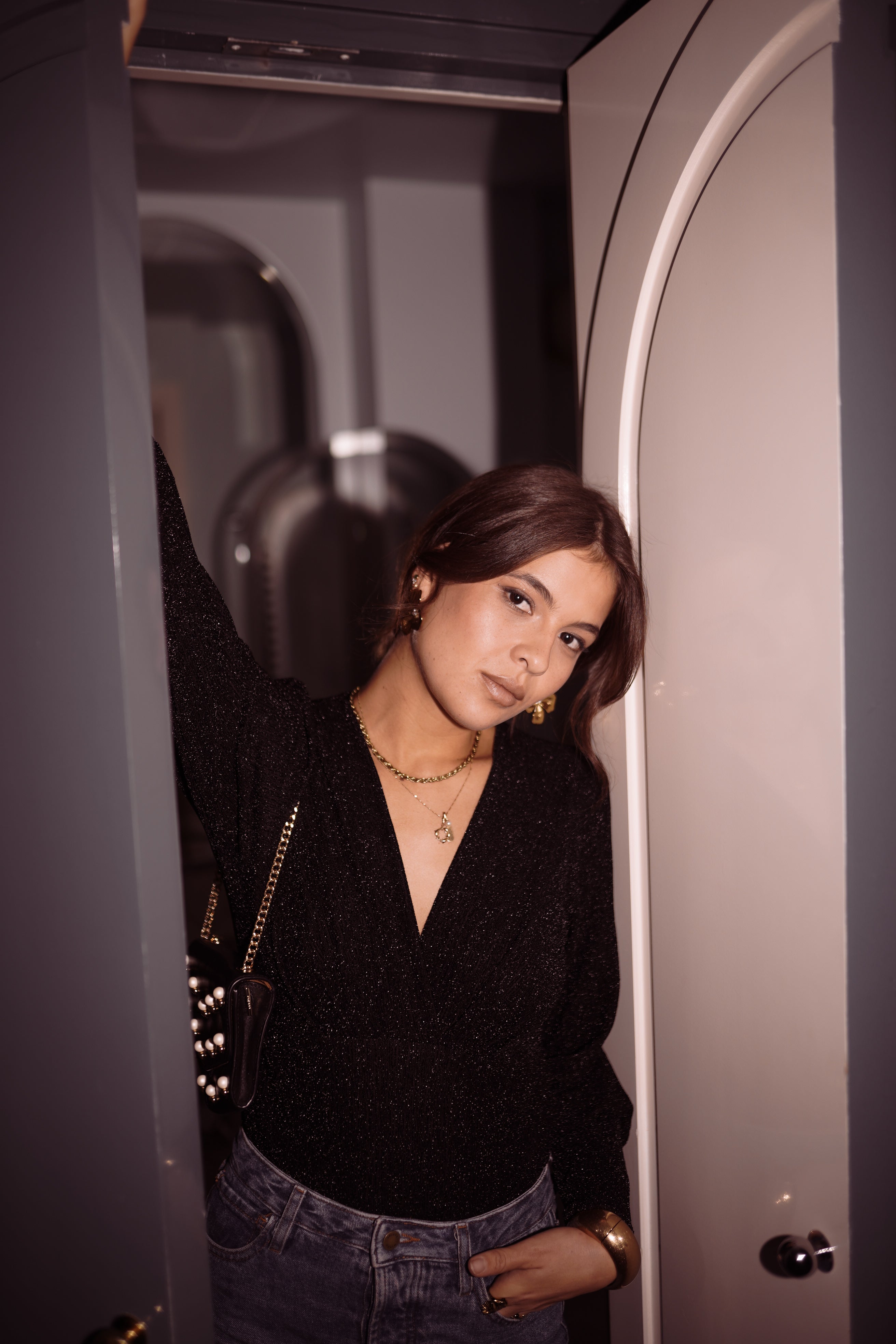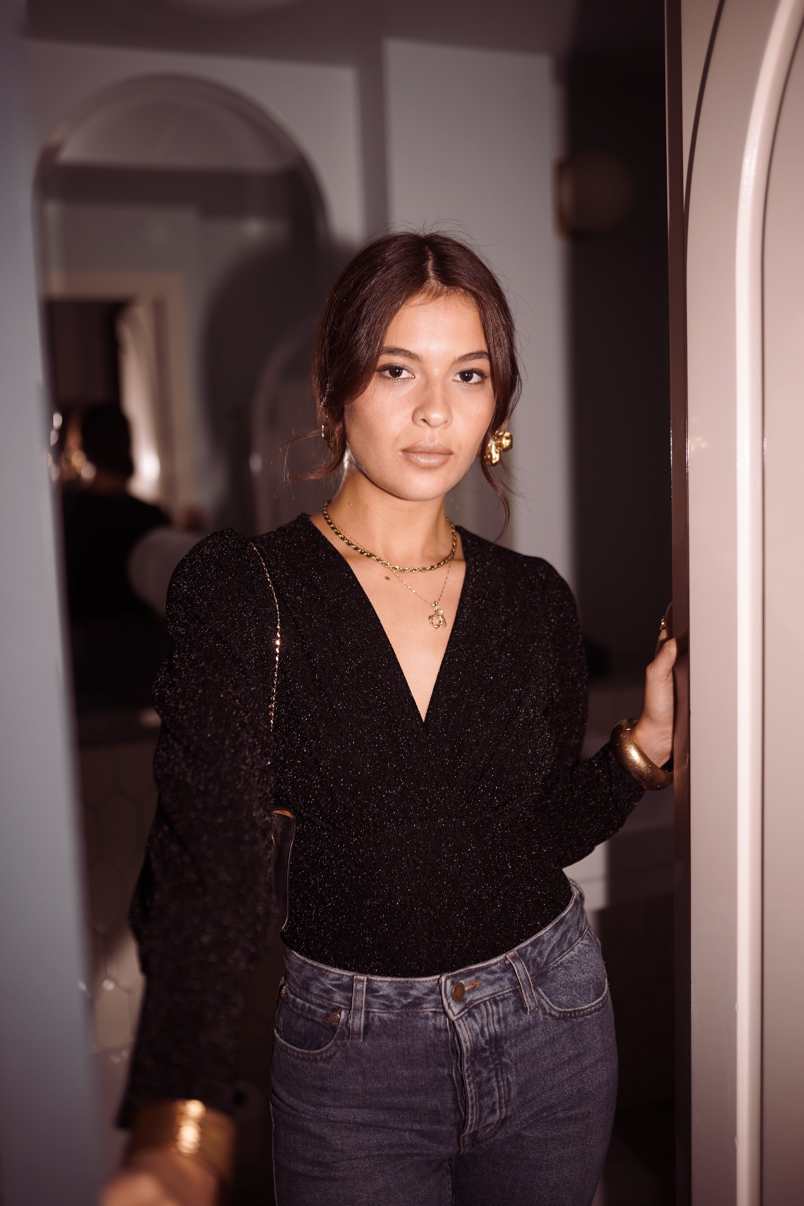 Pensé pour briller sans en faire trop, Misha réunit tout ce qu’on aime pendant la saison des fêtes : une matière lumineuse, une silhouette qui allonge et un décolleté qui sublime instantanément.