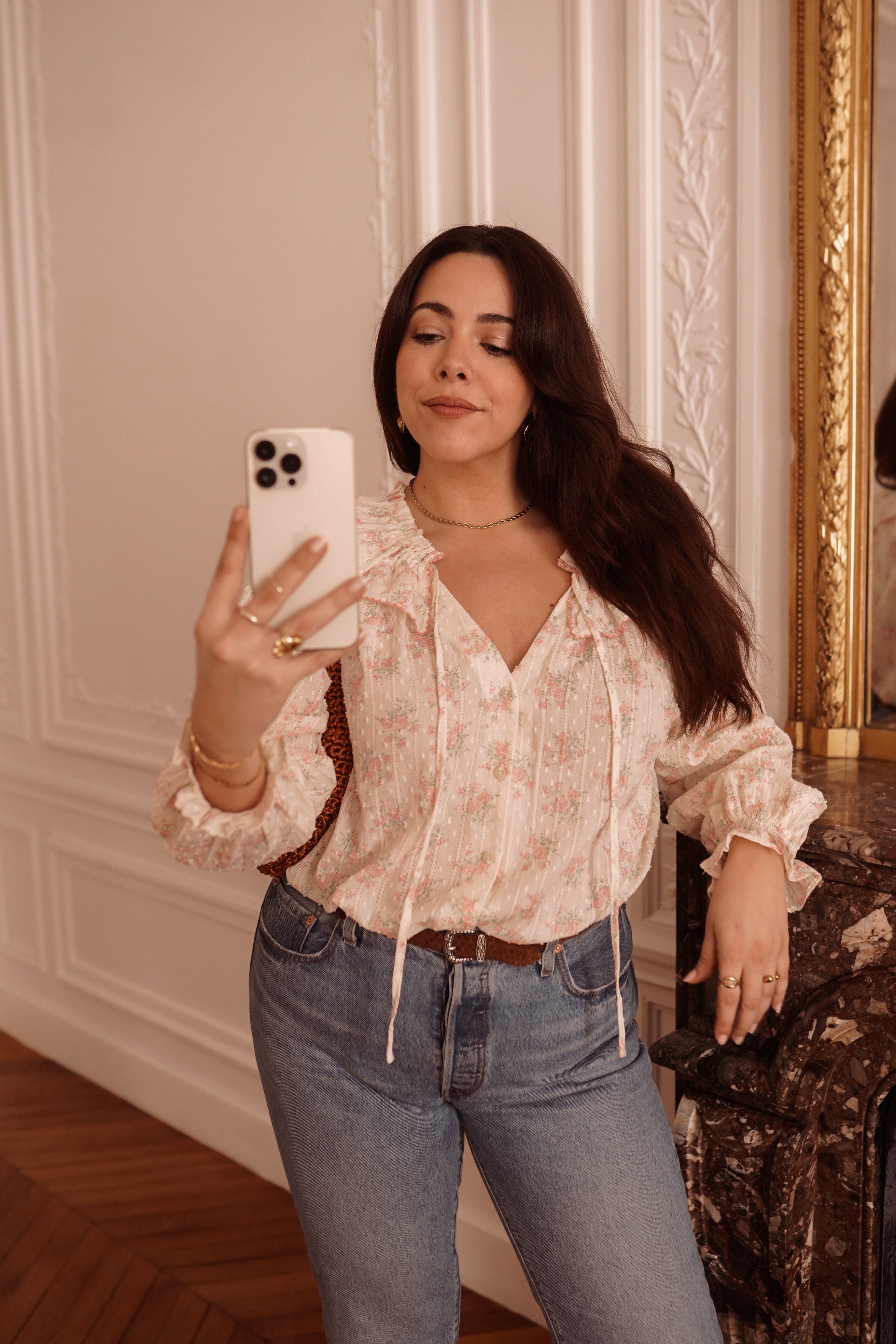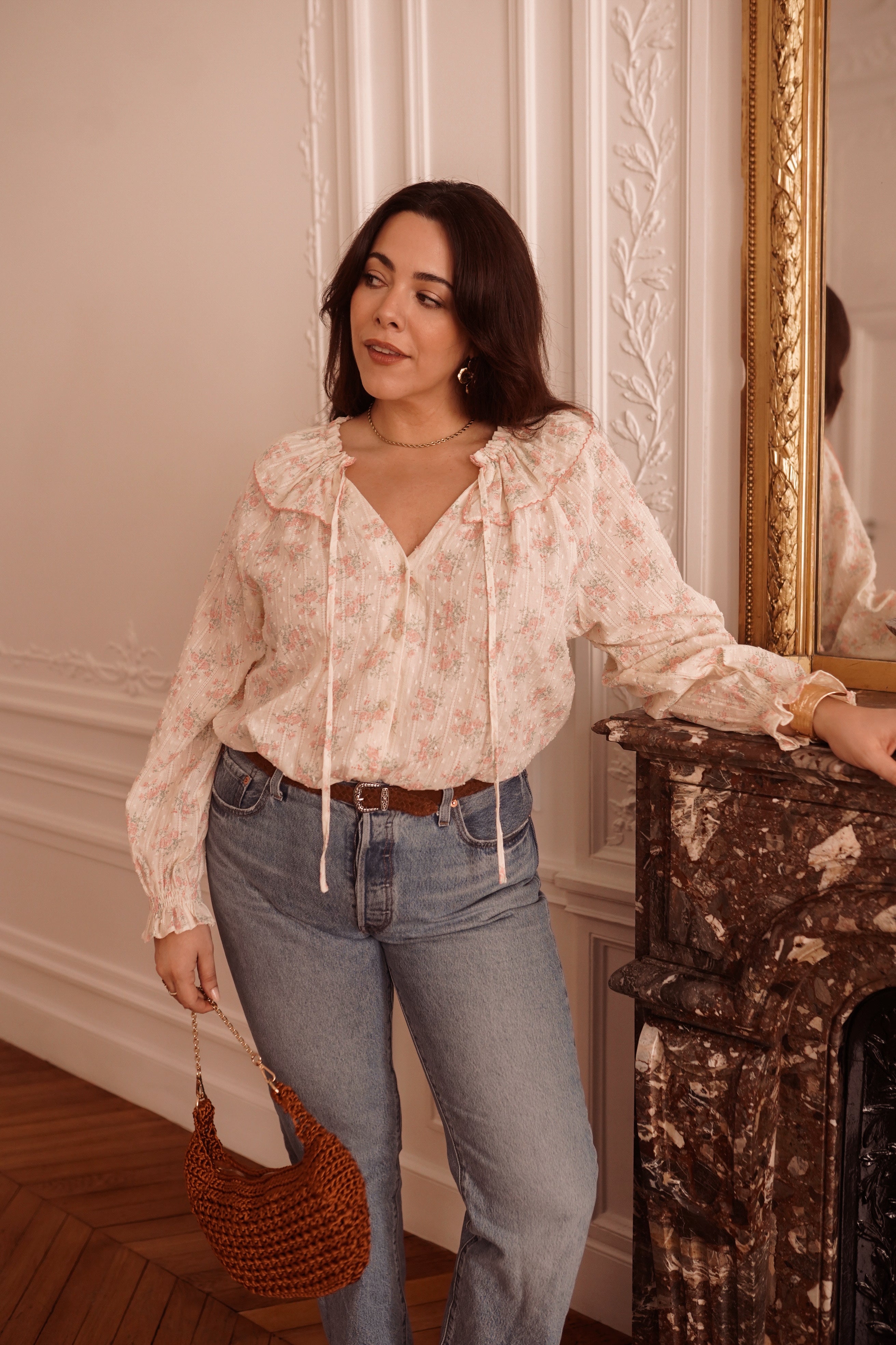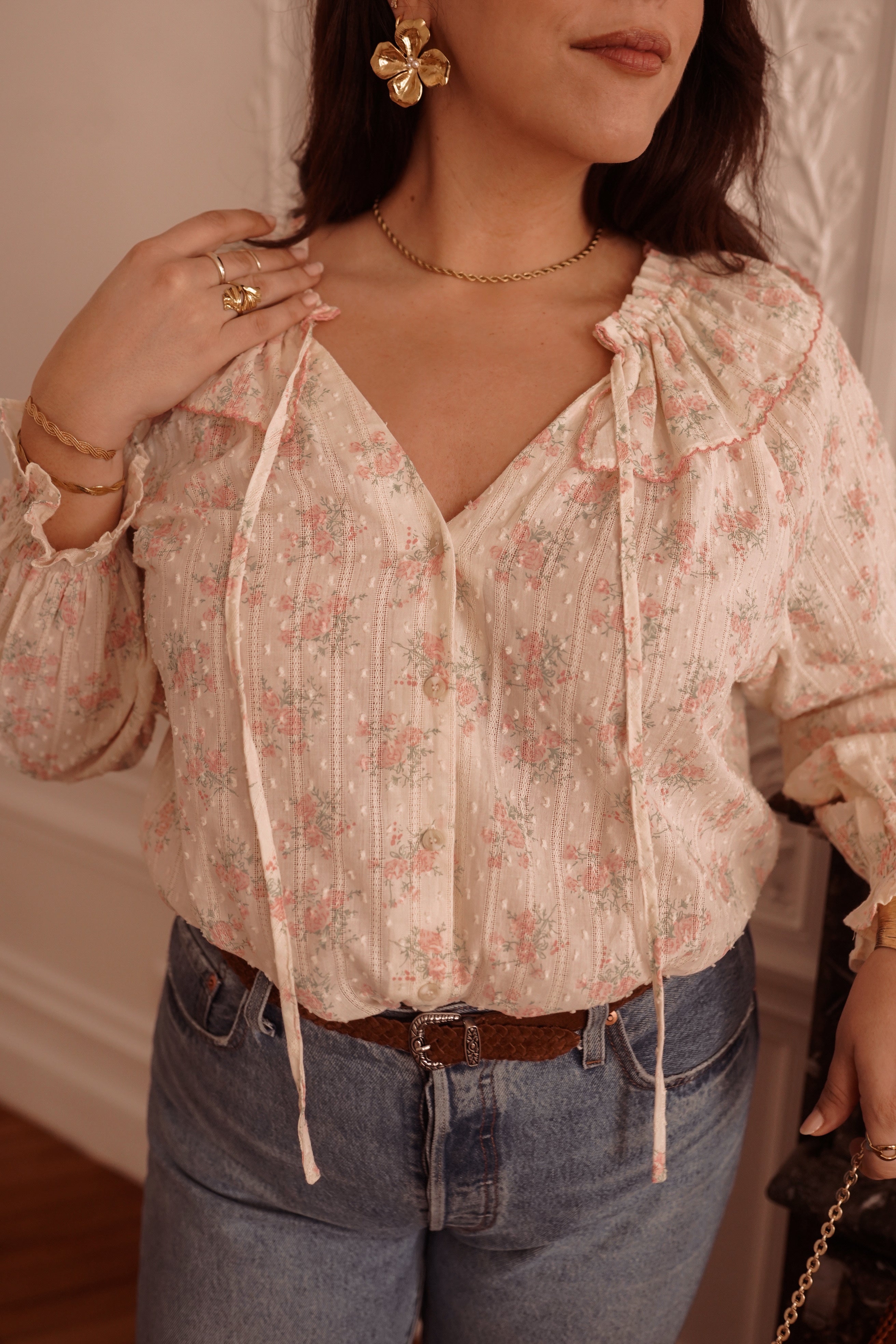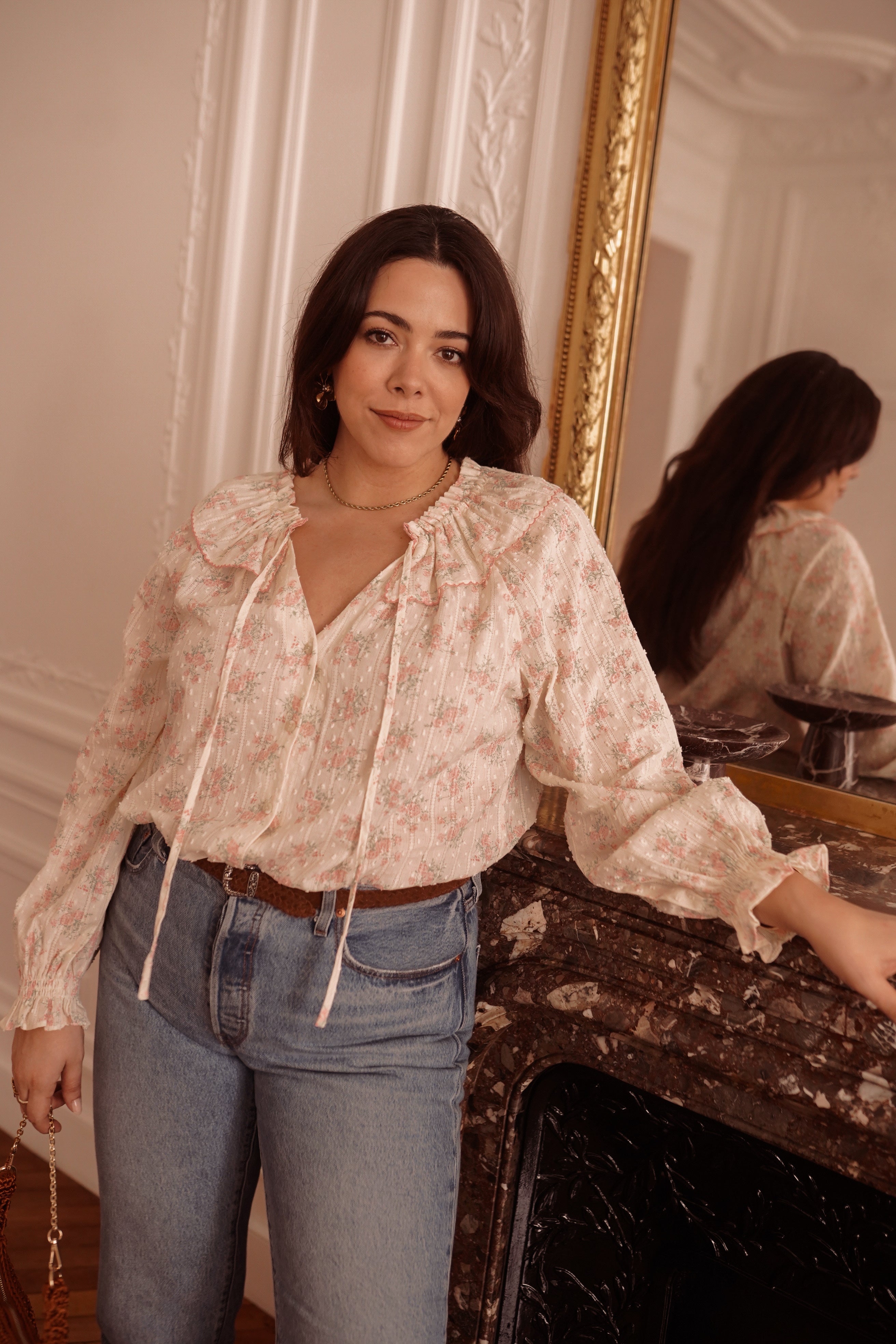 - Blouse fleurie aux tons poudrés