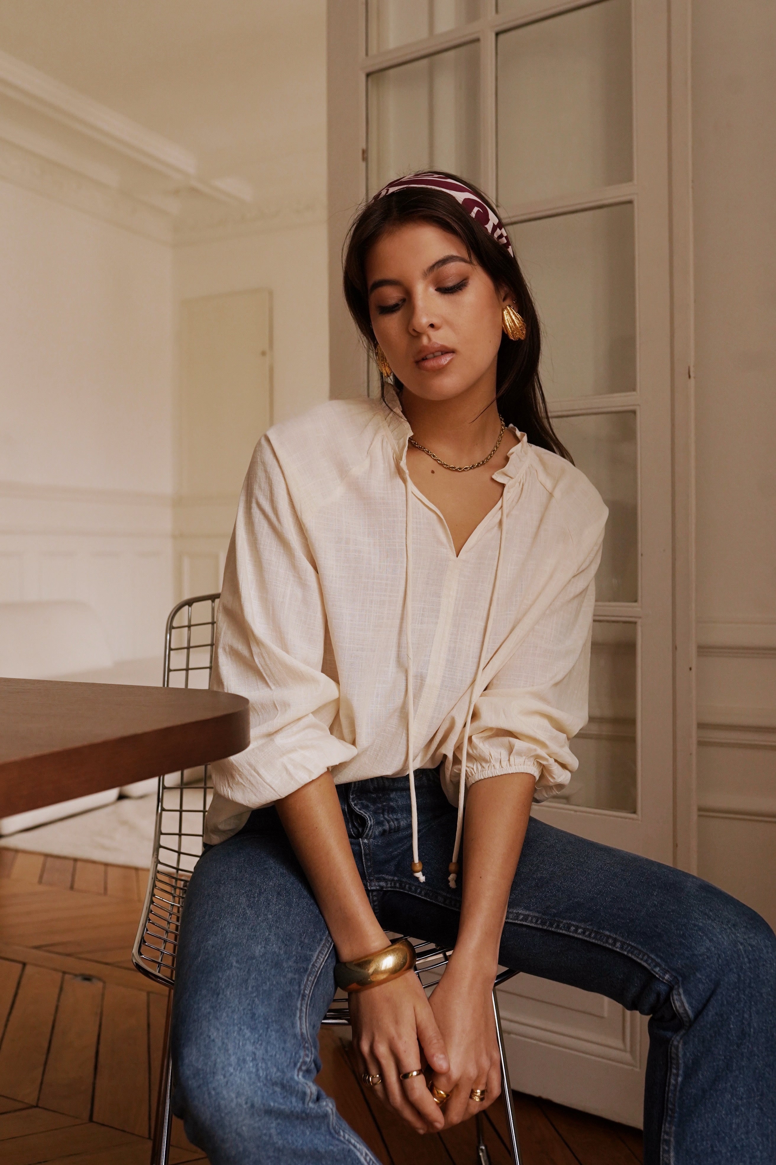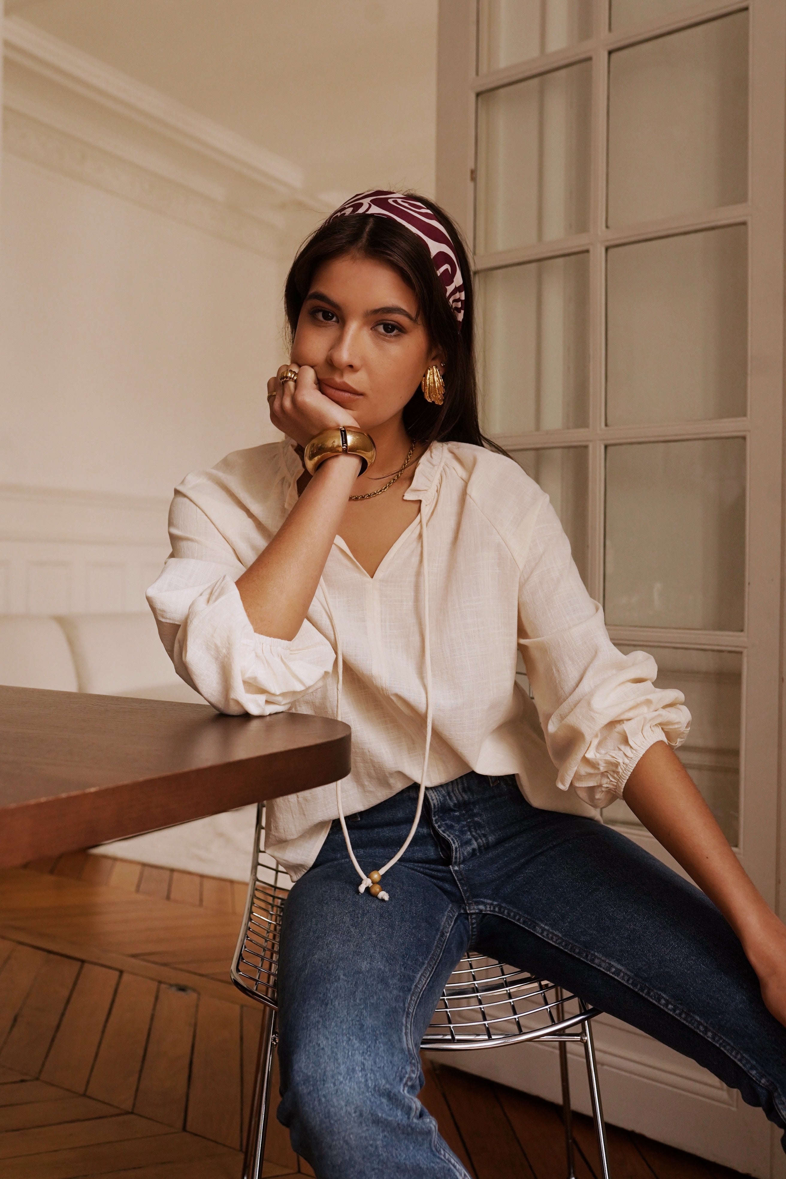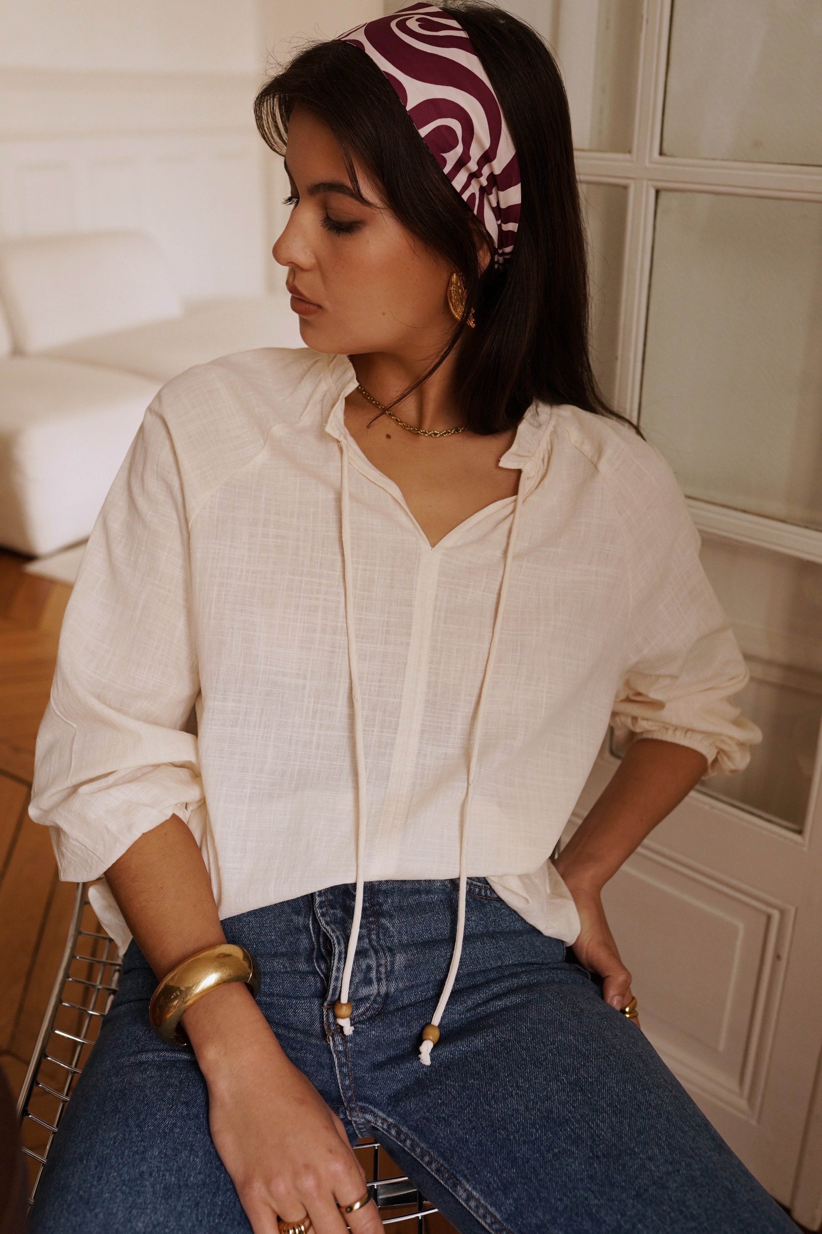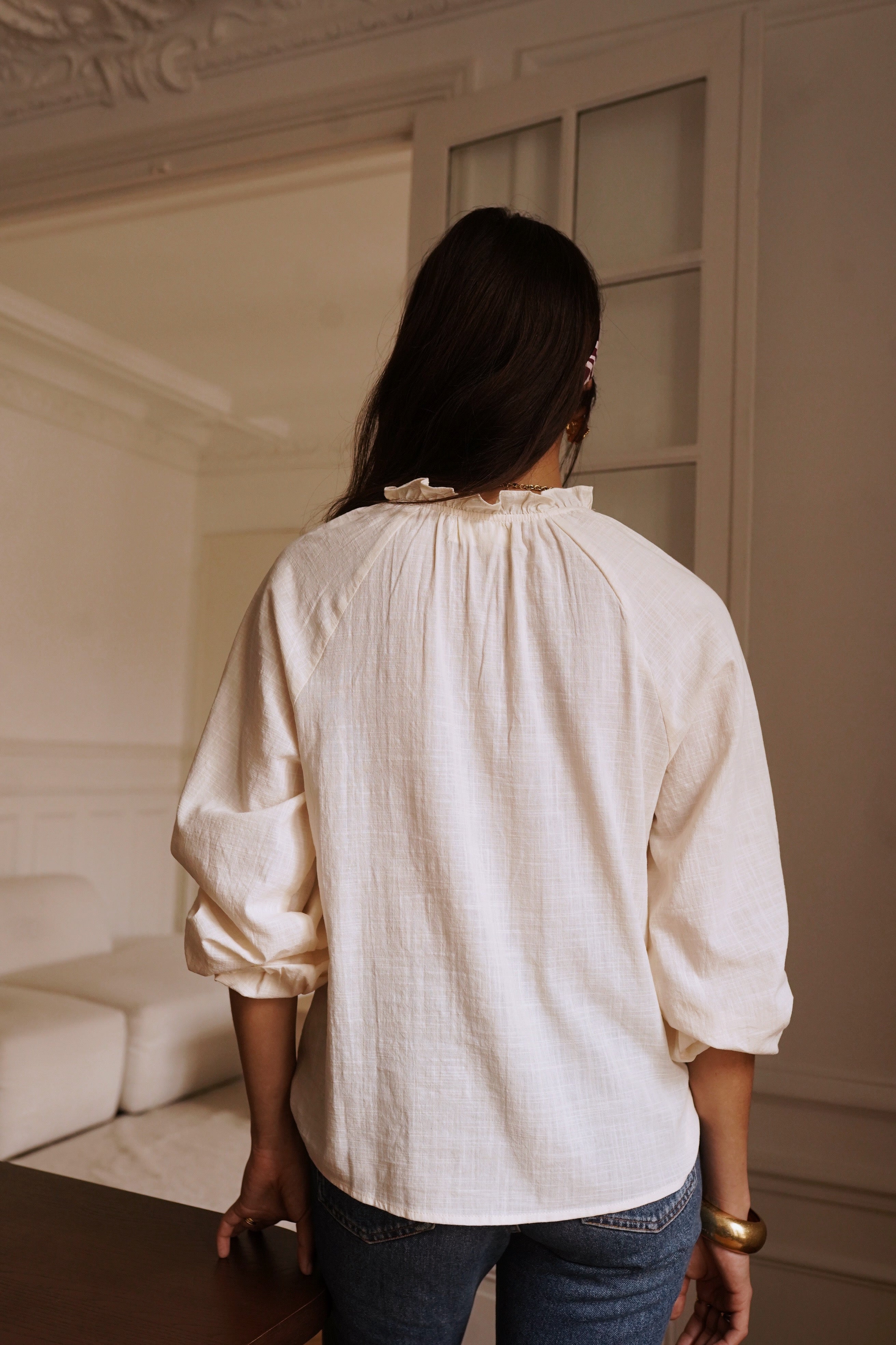 Ajoutez une touche d’élégance et de douceur à votre garde-robe avec cette superbe blouse en coton. Légère et fluide, elle séduit par son col en V délicat et ses manches bouffantes resserrées aux poignets, alliant parfaitement confort et raffinement.