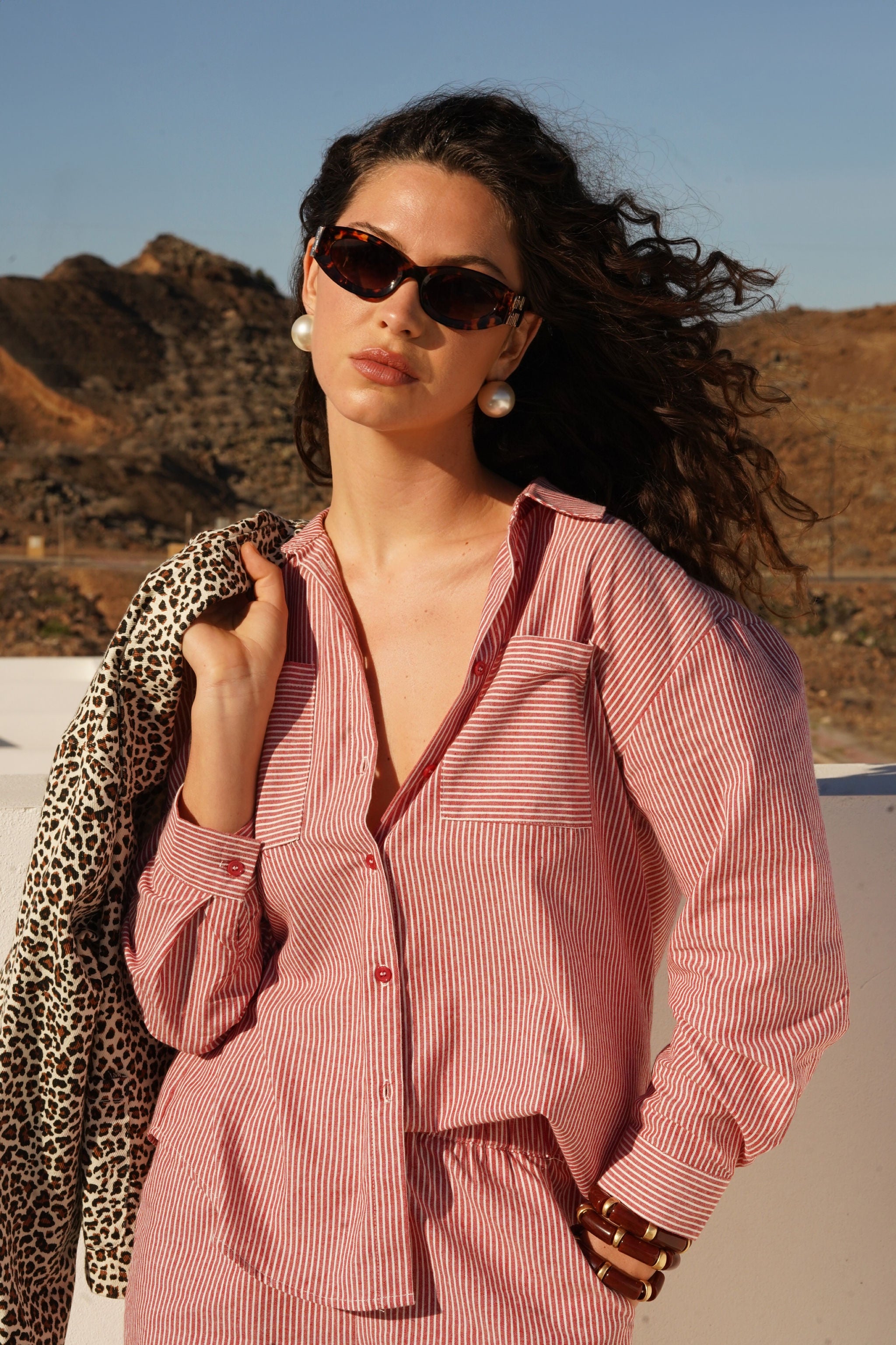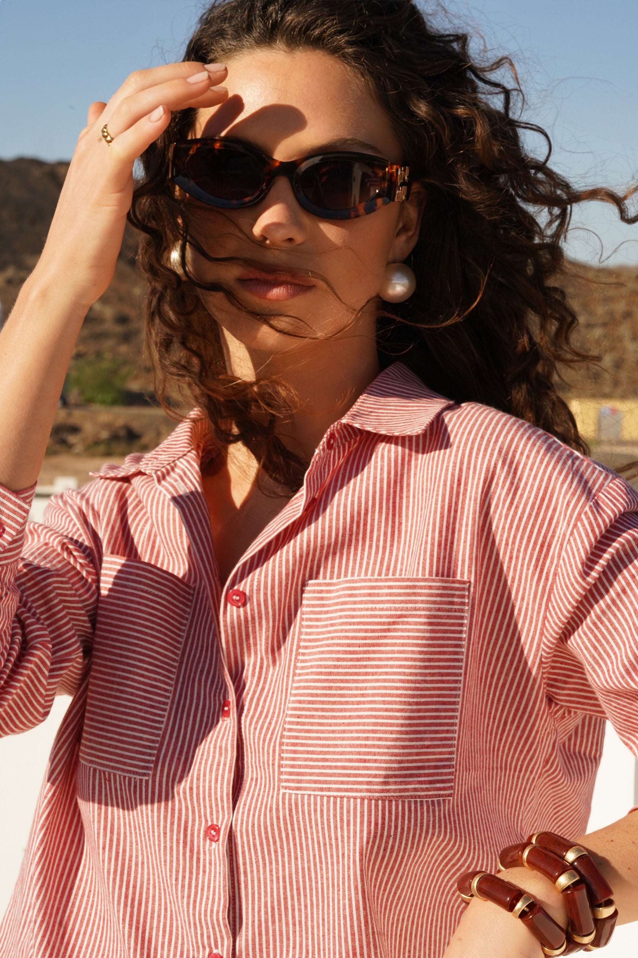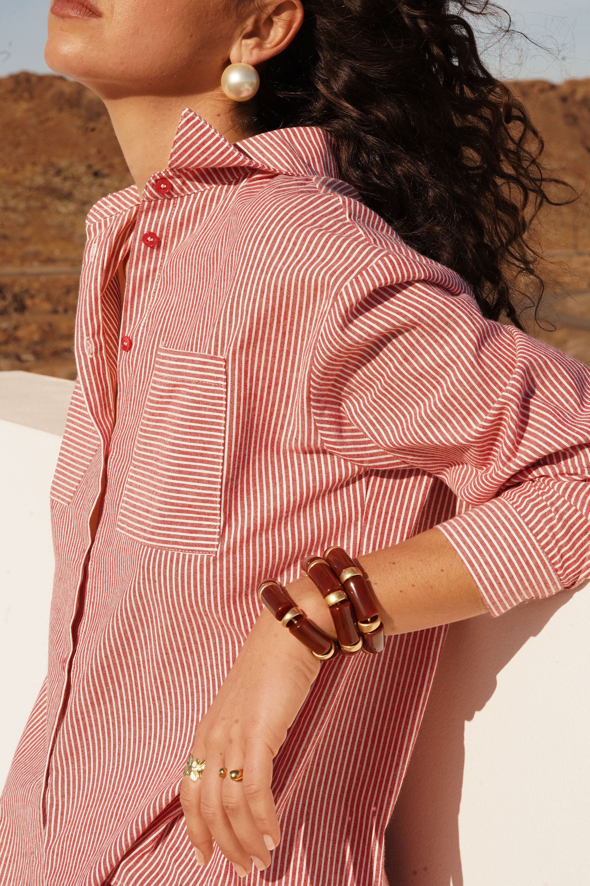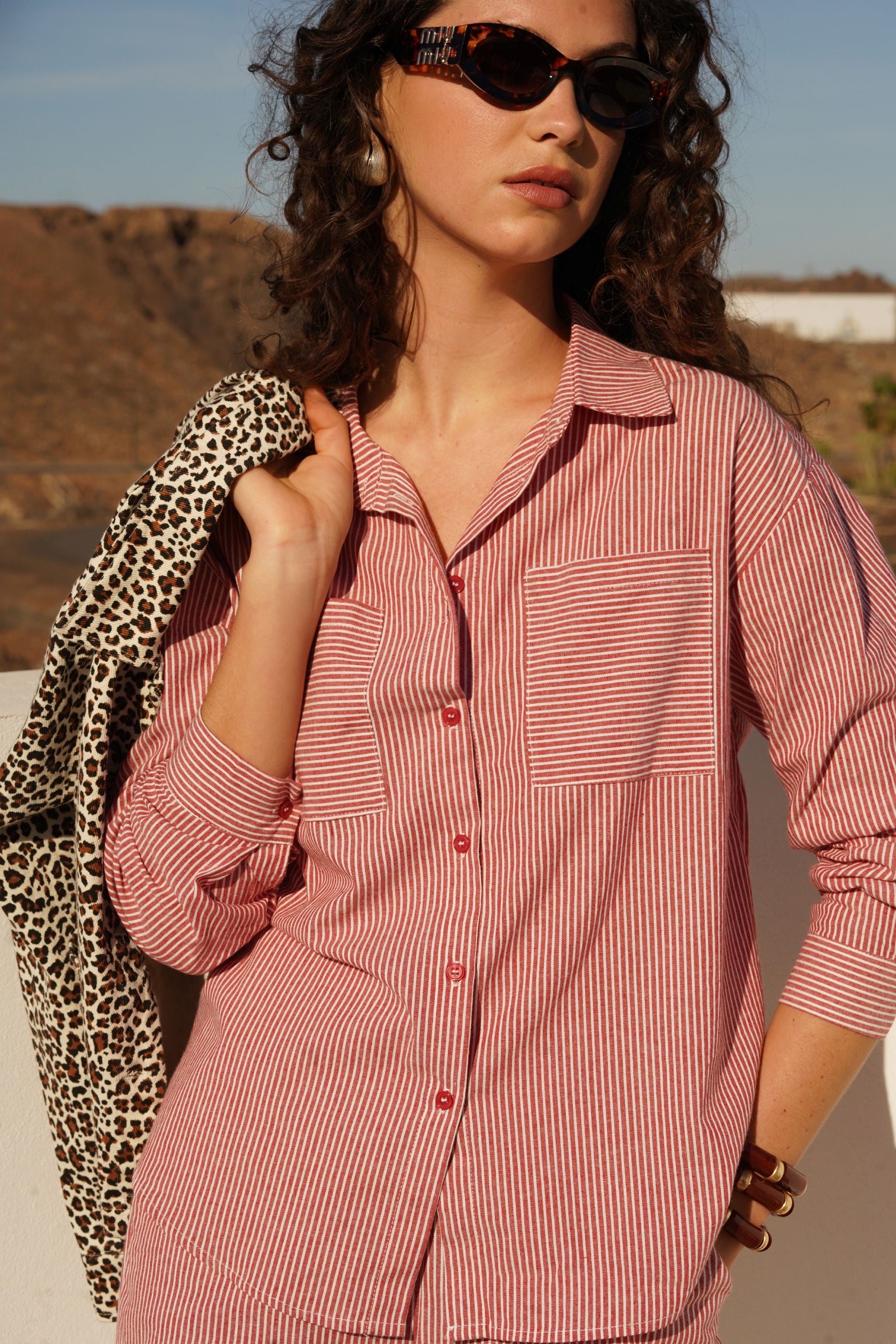Chemise rouge rayée en 100% coton.