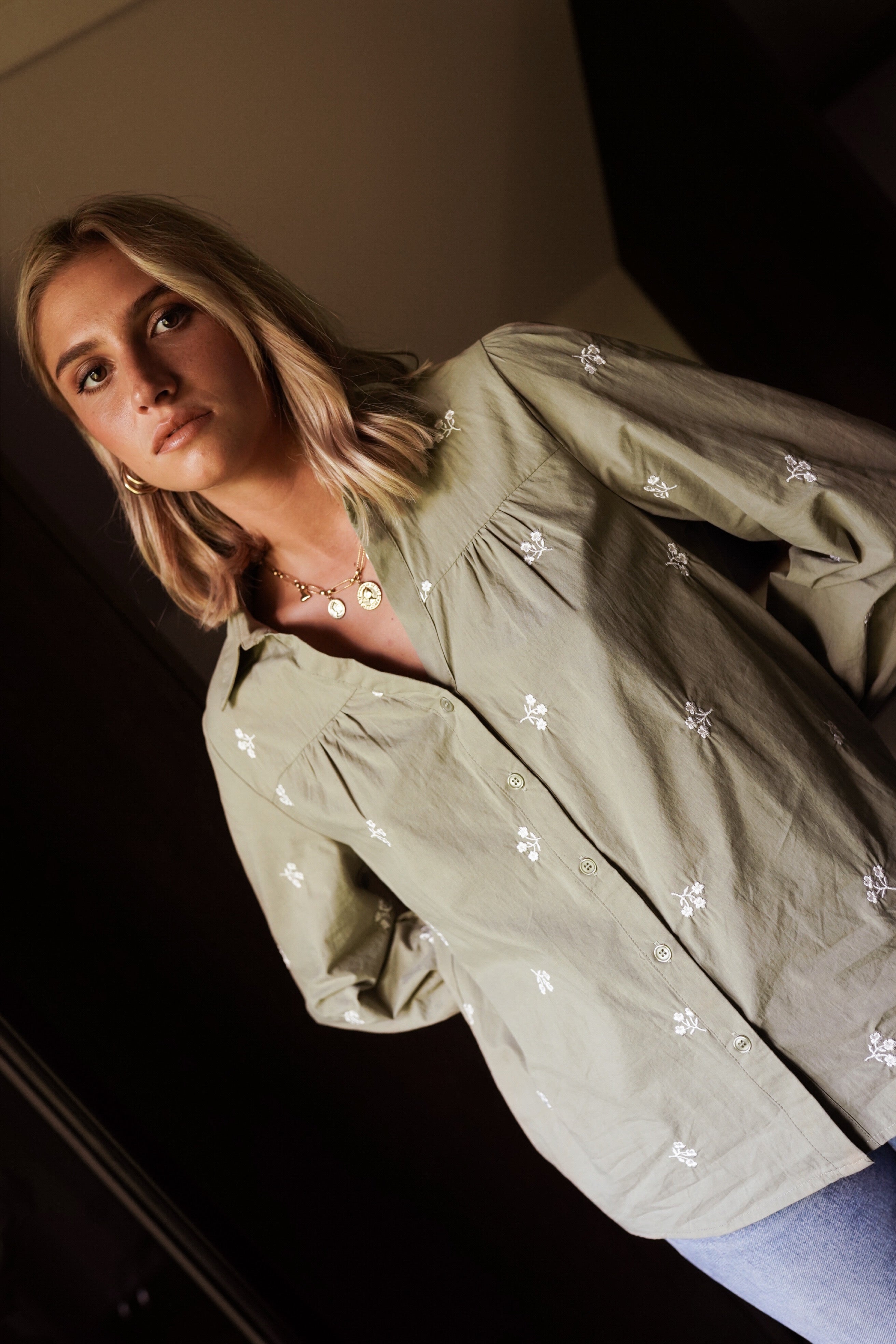 La chemise Sani capture une élégance naturelle et sans effort. Confectionnée dans une popeline de coton douce et légère, elle se distingue par ses broderies florales blanches qui apportent une touche de poésie. Sa teinte kaki clair lui donne une allure subtilement vintage, parfaite pour les jours où l’on veut être à la fois féminine et décontractée.