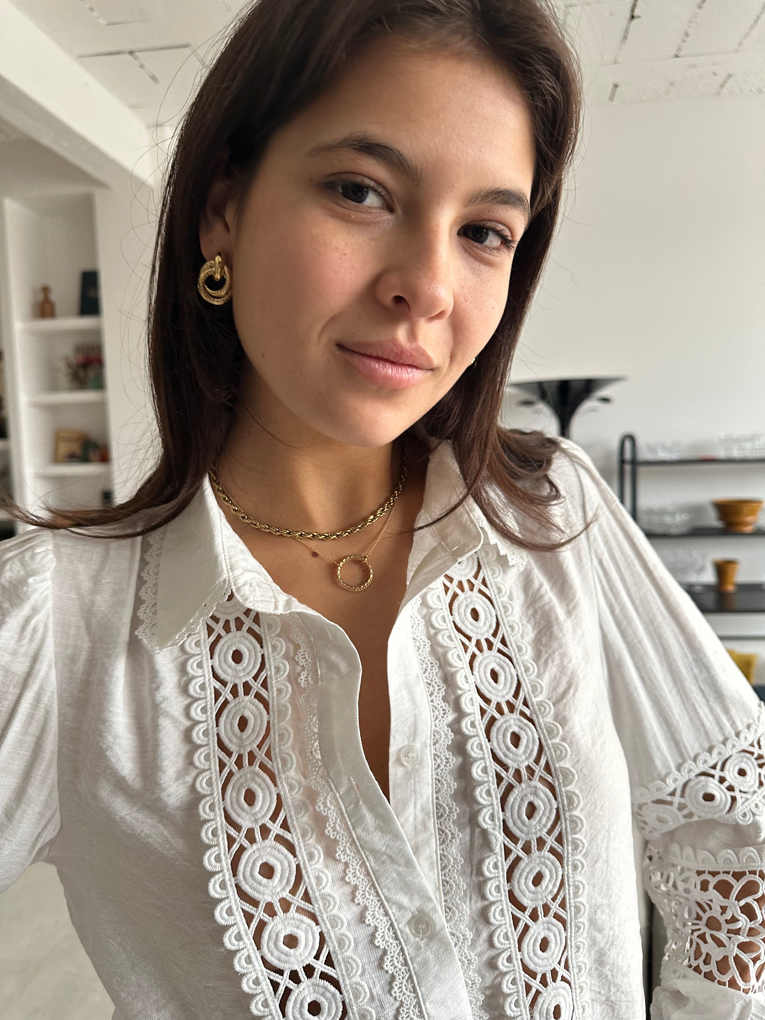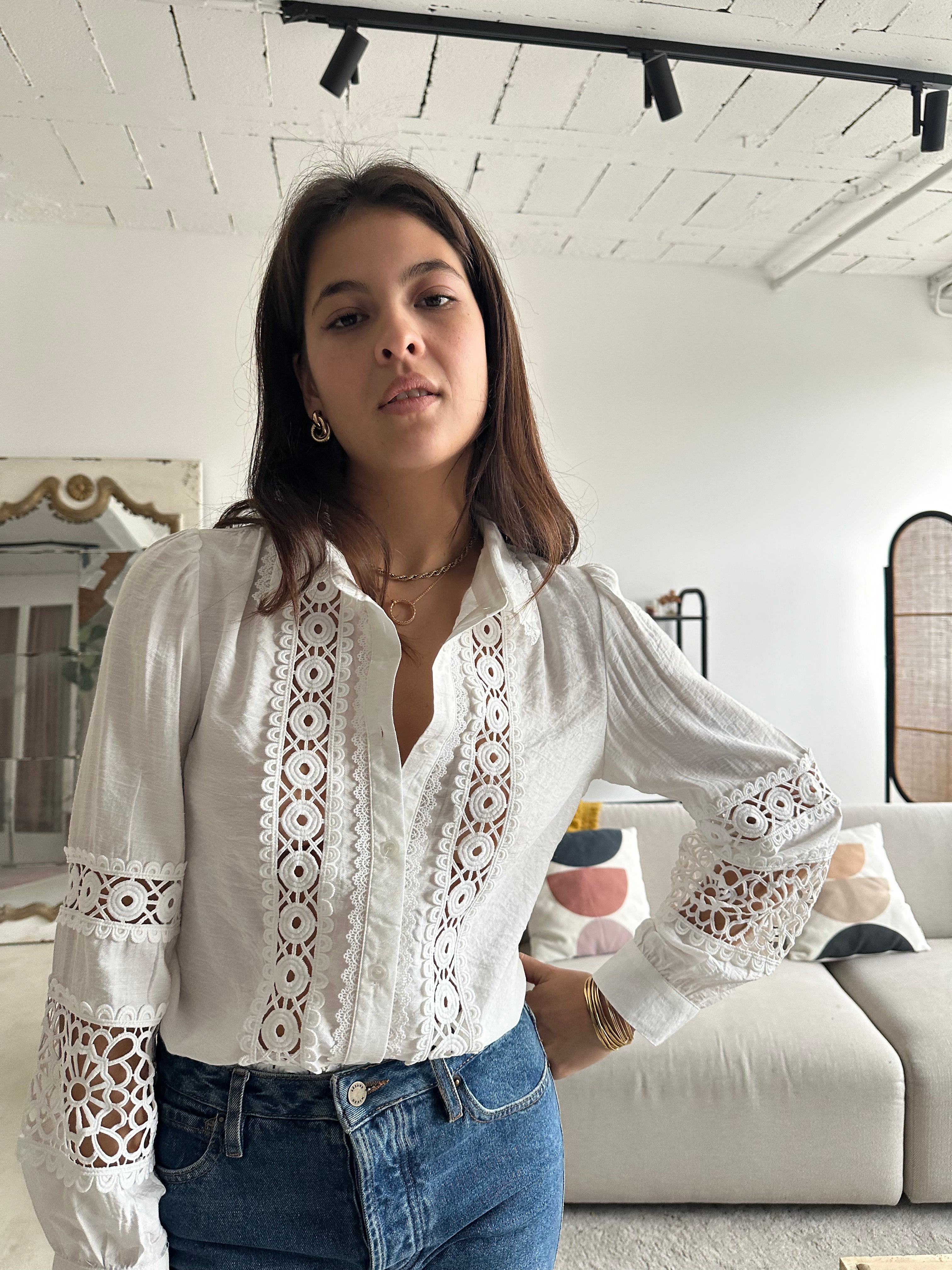 Cette chemise blanche brodée est un véritable essentiel au charme romantique et intemporel. Confectionnée dans une matière légère, elle se distingue par ses broderies délicates qui ajoutent une touche d’élégance subtile.