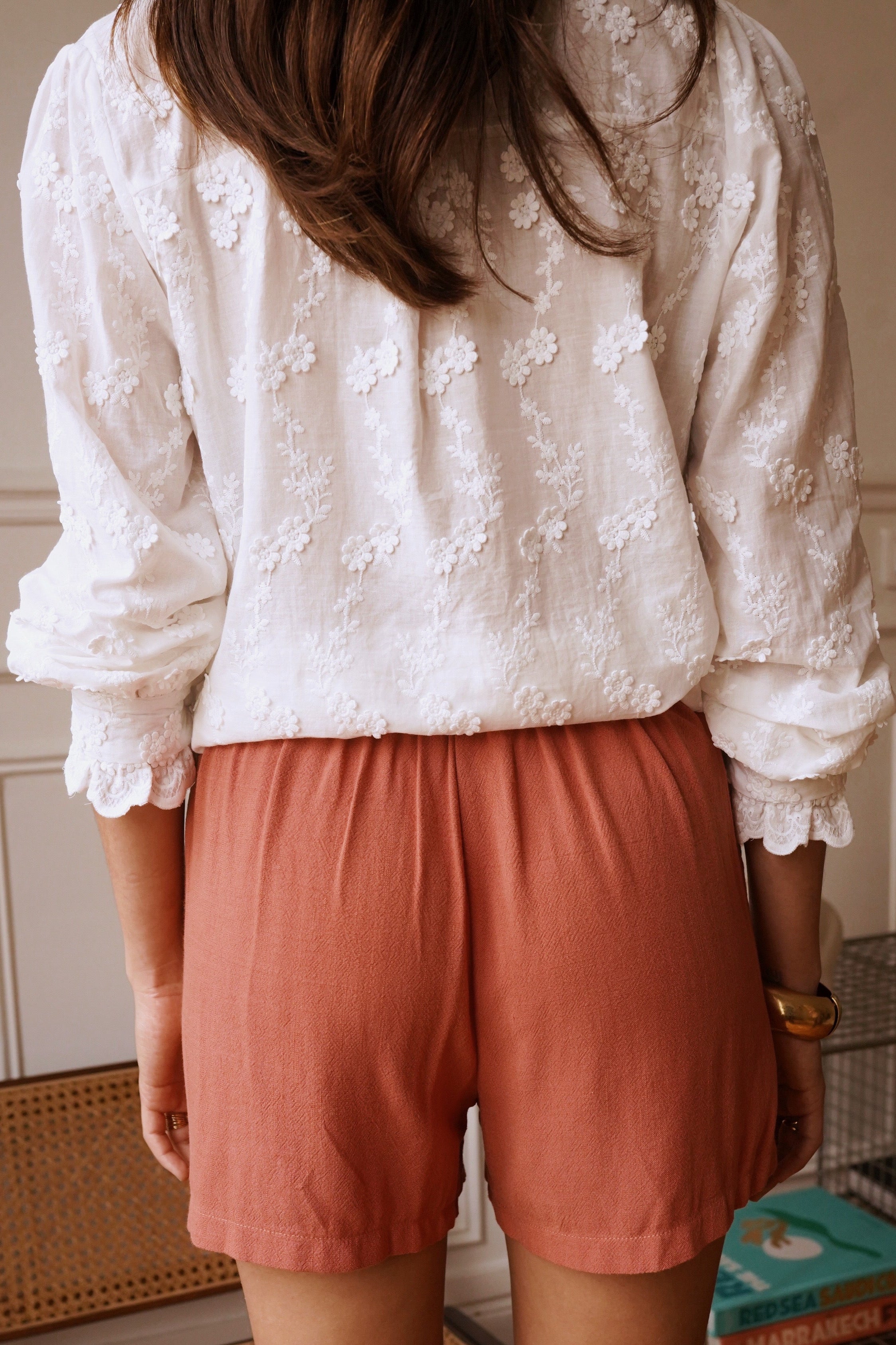 Sa coupe légèrement ample et son tissu léger offrent un confort absolu, tandis que les broderies ajoutent une note artisanale et bohème.