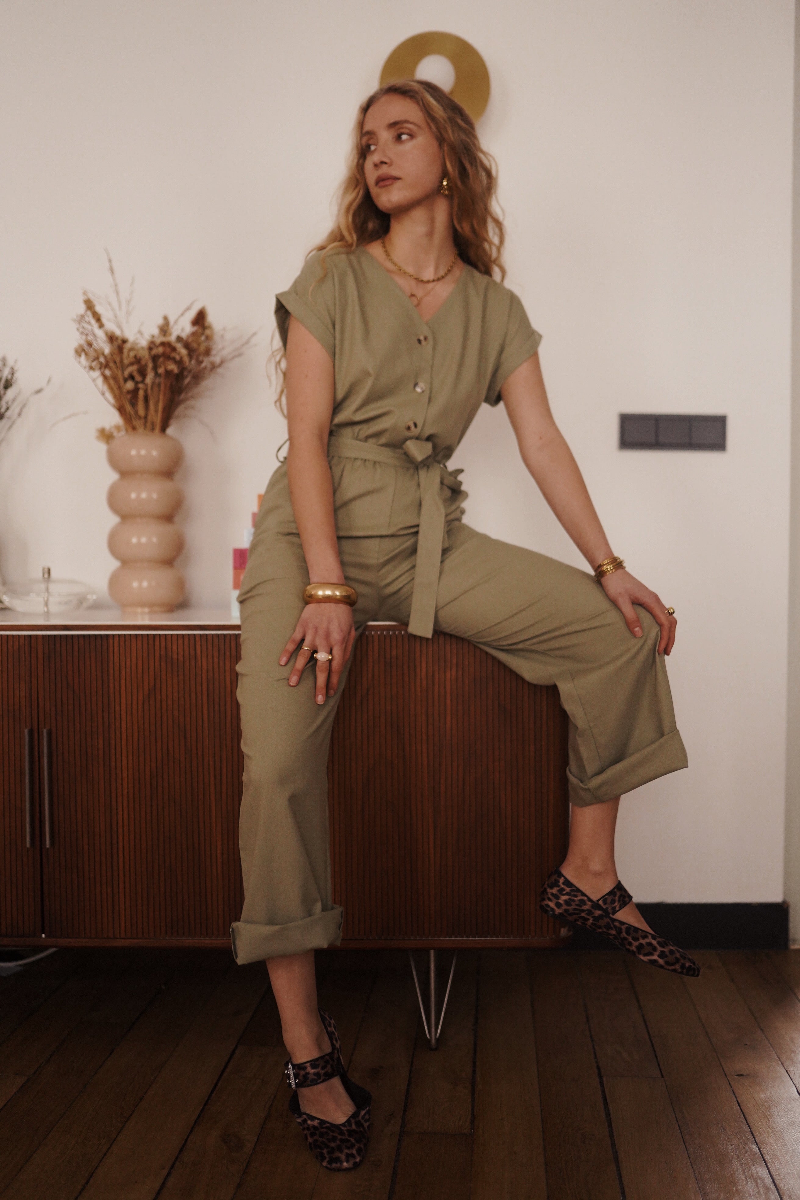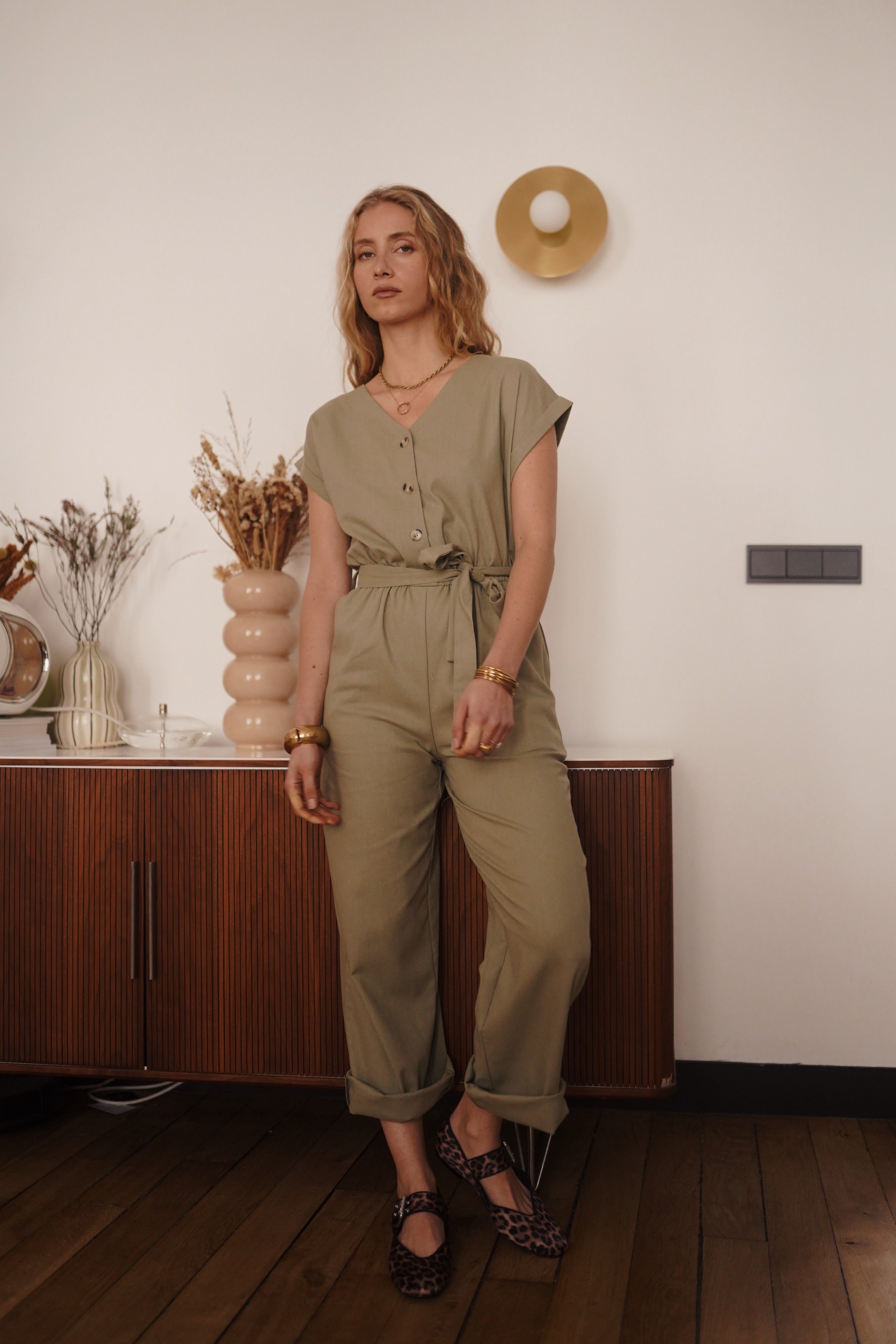Combinaison kaki en 100% coton.
