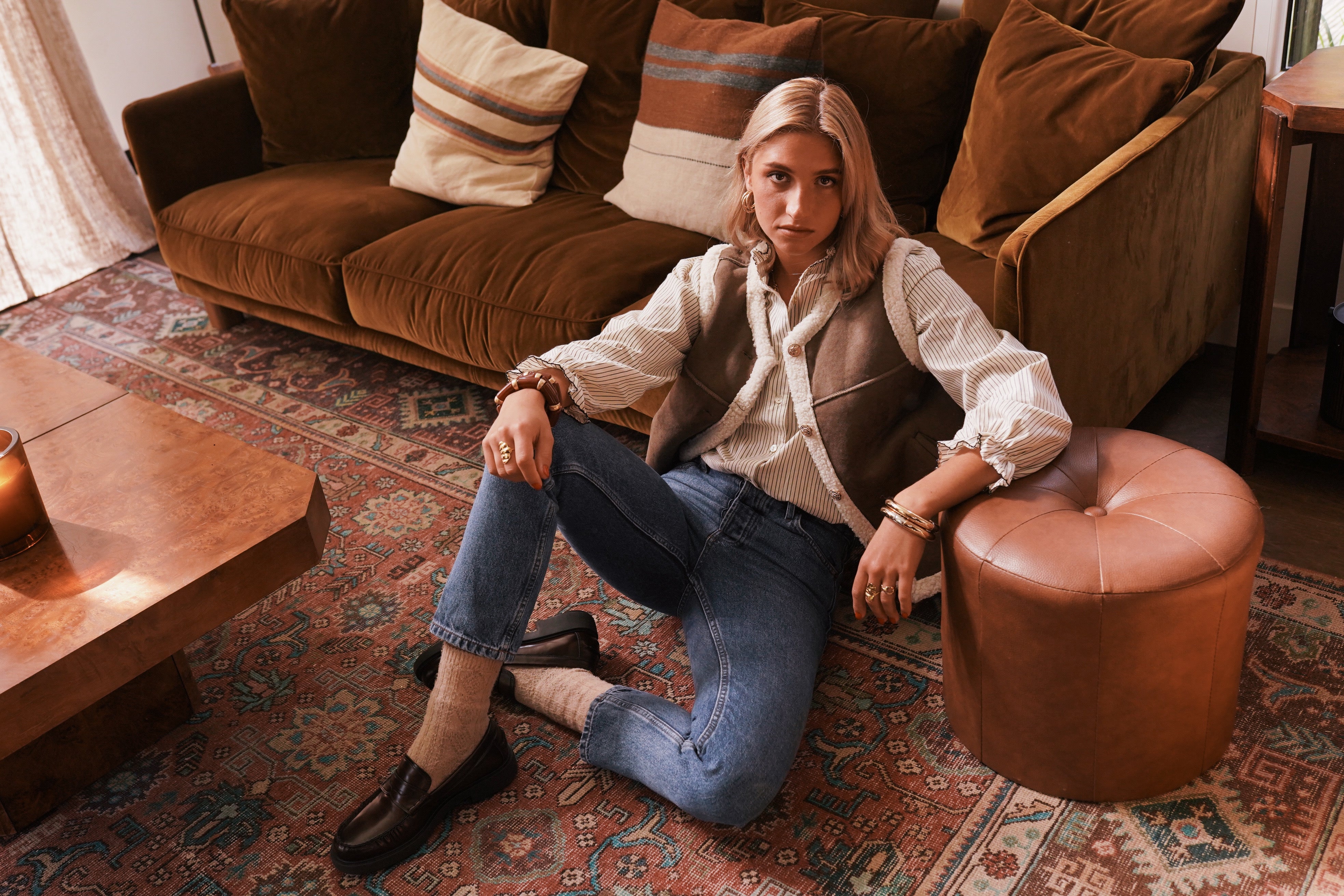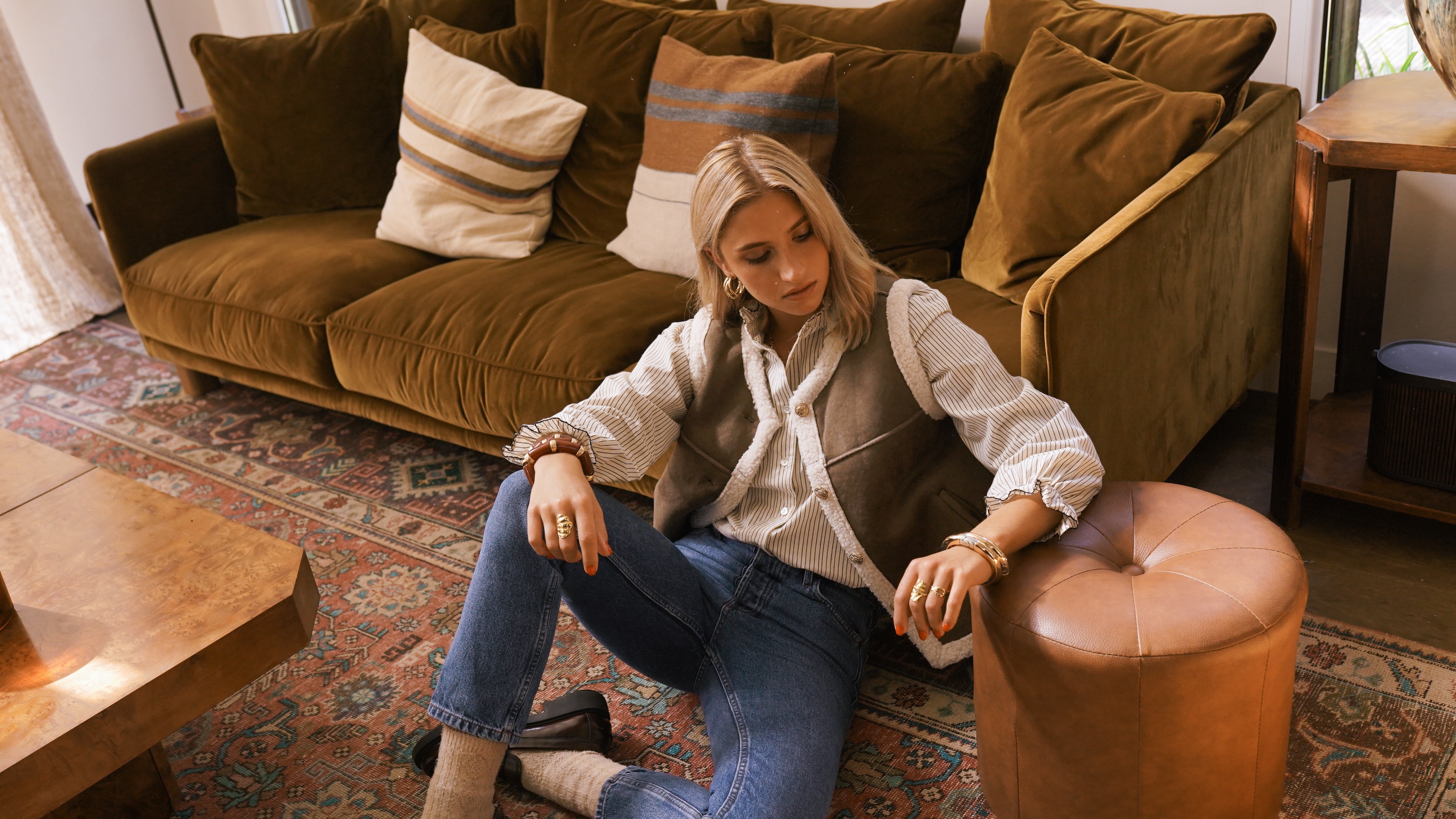 Associez le gilet Marly à la chemise Jacob pour une allure bohème-chic et facile à vivre. Le duo parfait entre matières naturelles et teintes automnales.