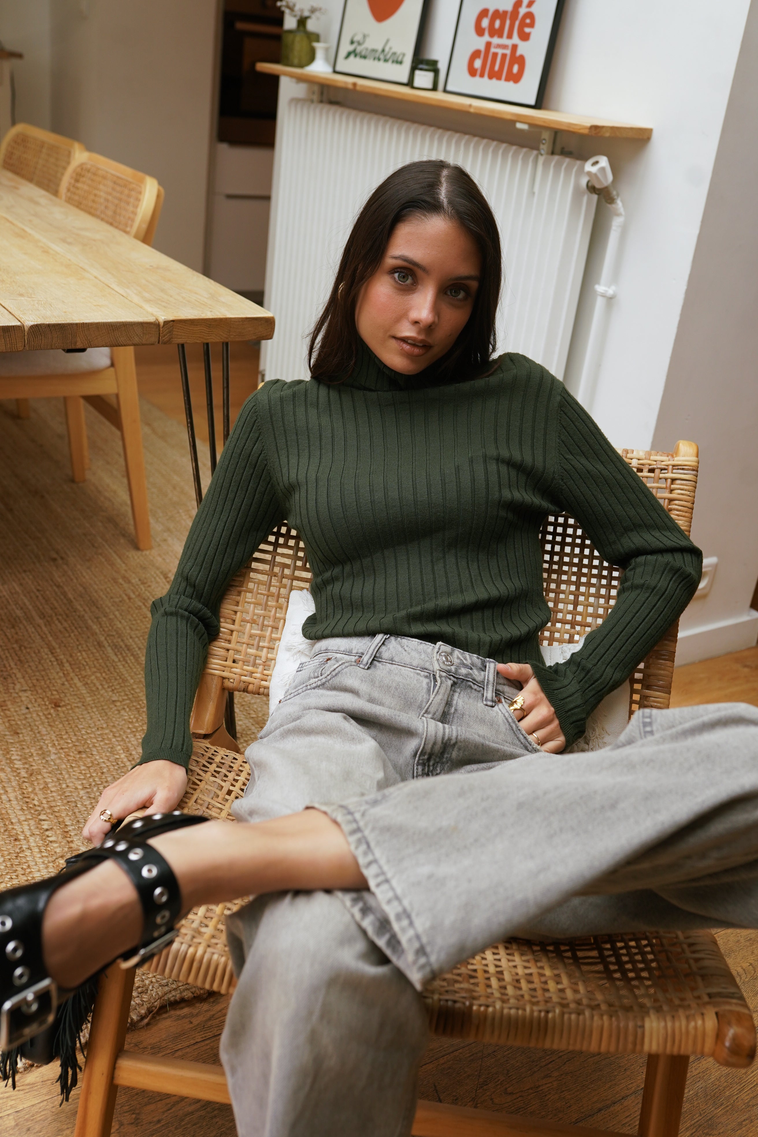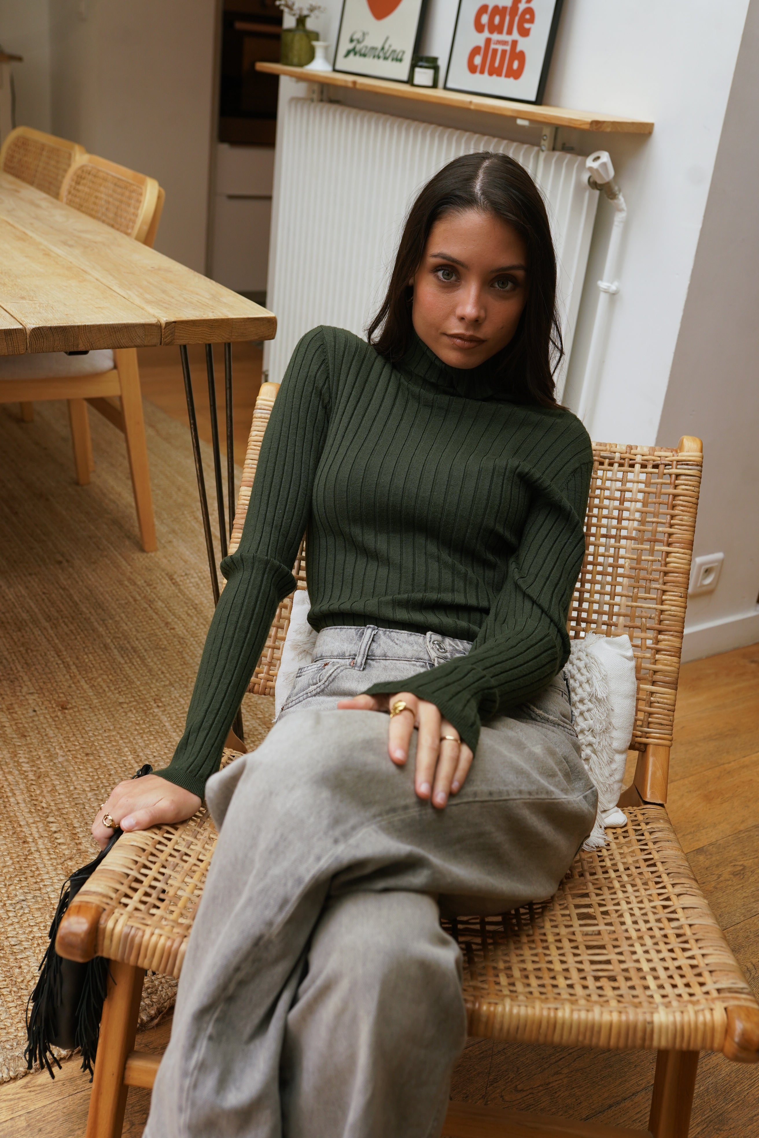 Le haut Cristal, c’est l’alliance parfaite entre confort et allure. Sa maille côtelée fine épouse les lignes du corps sans trop en faire, tandis que son col montant structure la silhouette avec élégance.