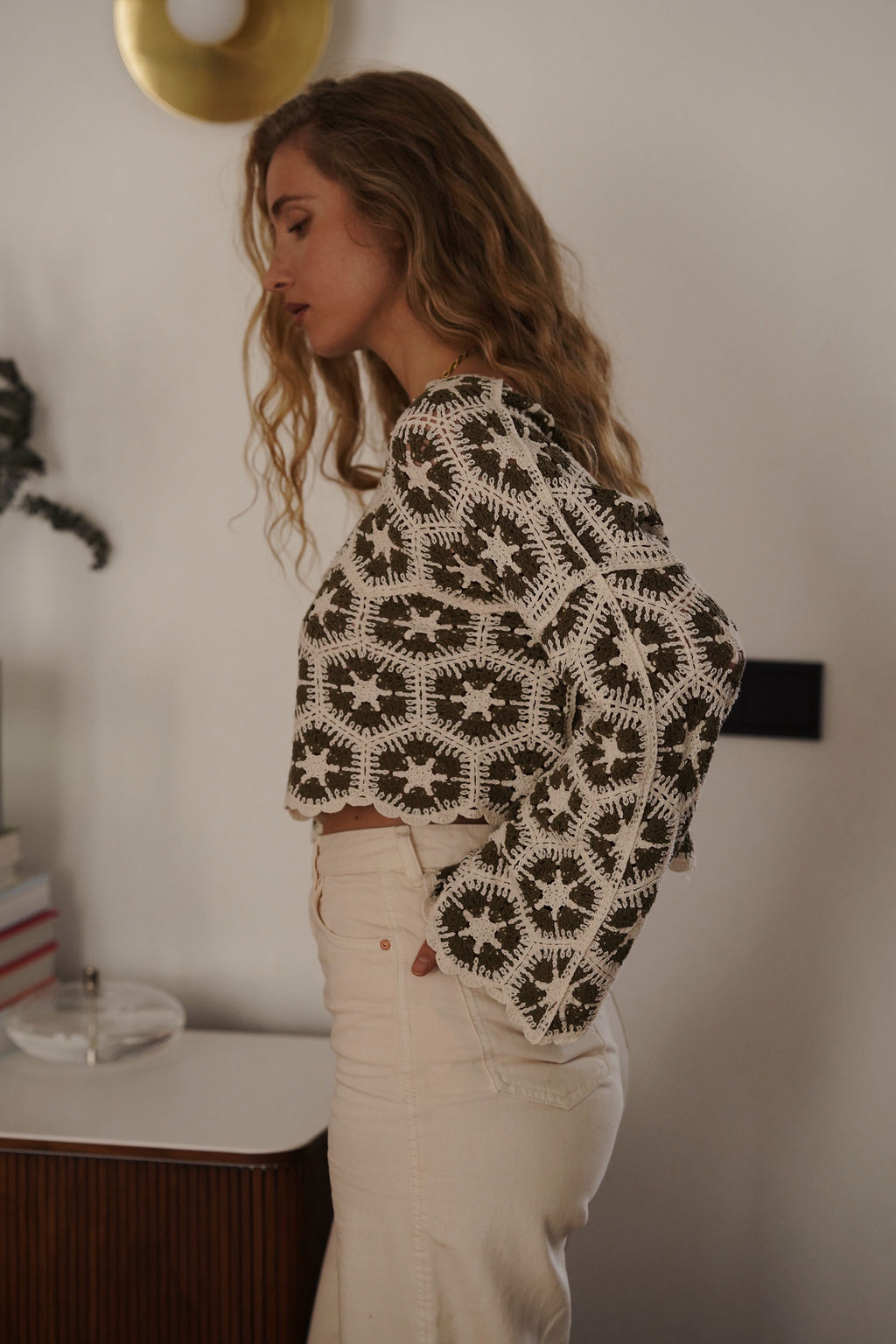 Encolure bateau, manches évasées, très léger et confortable pour l'été.