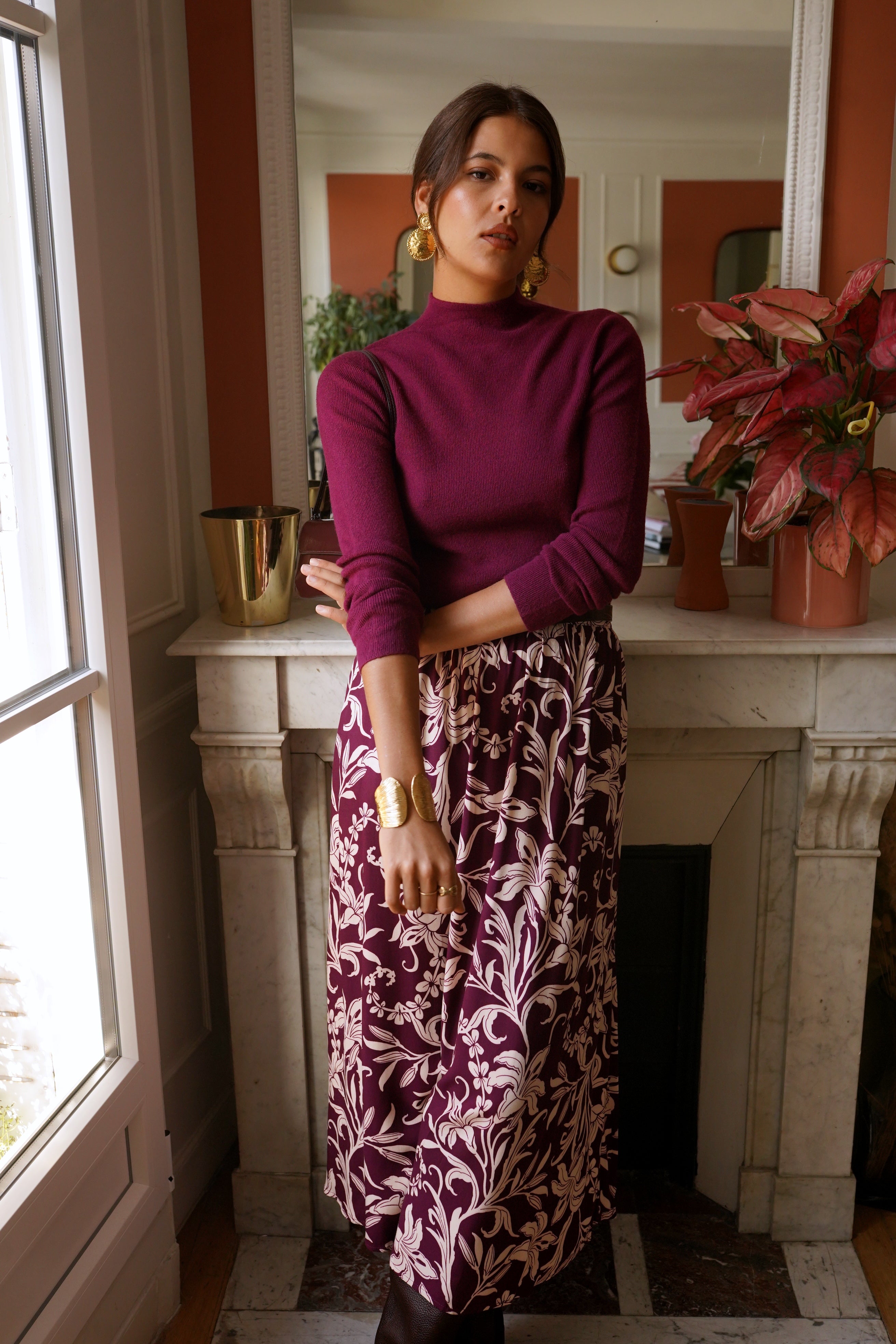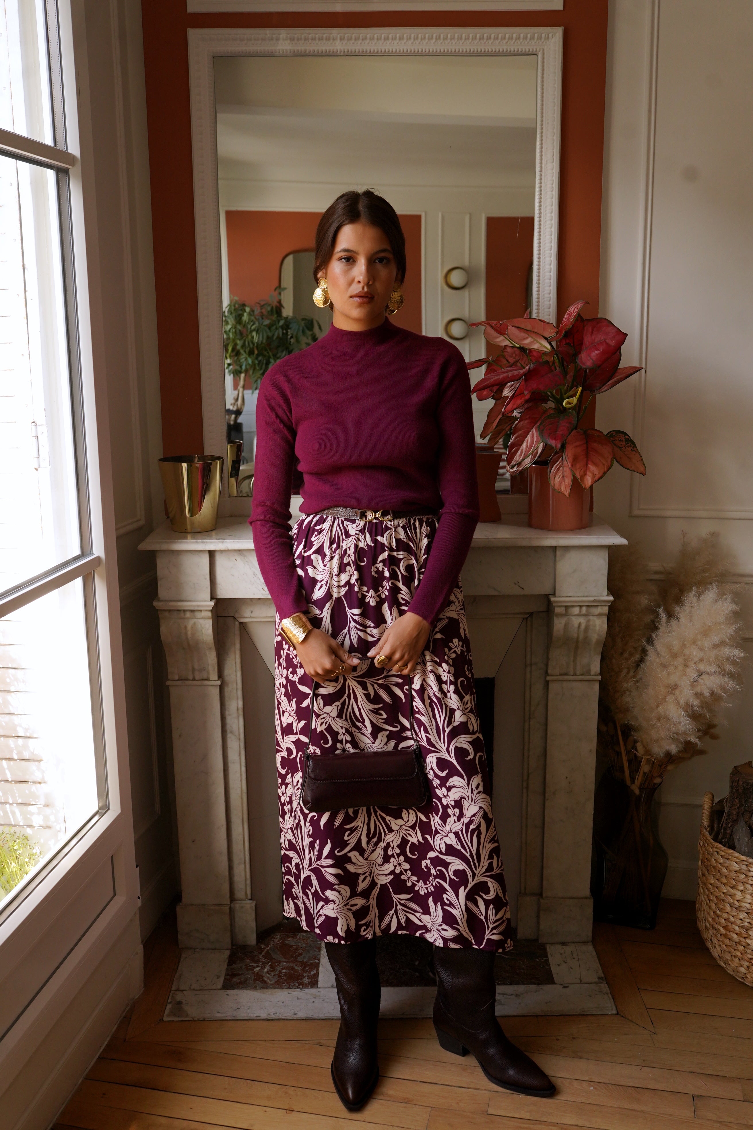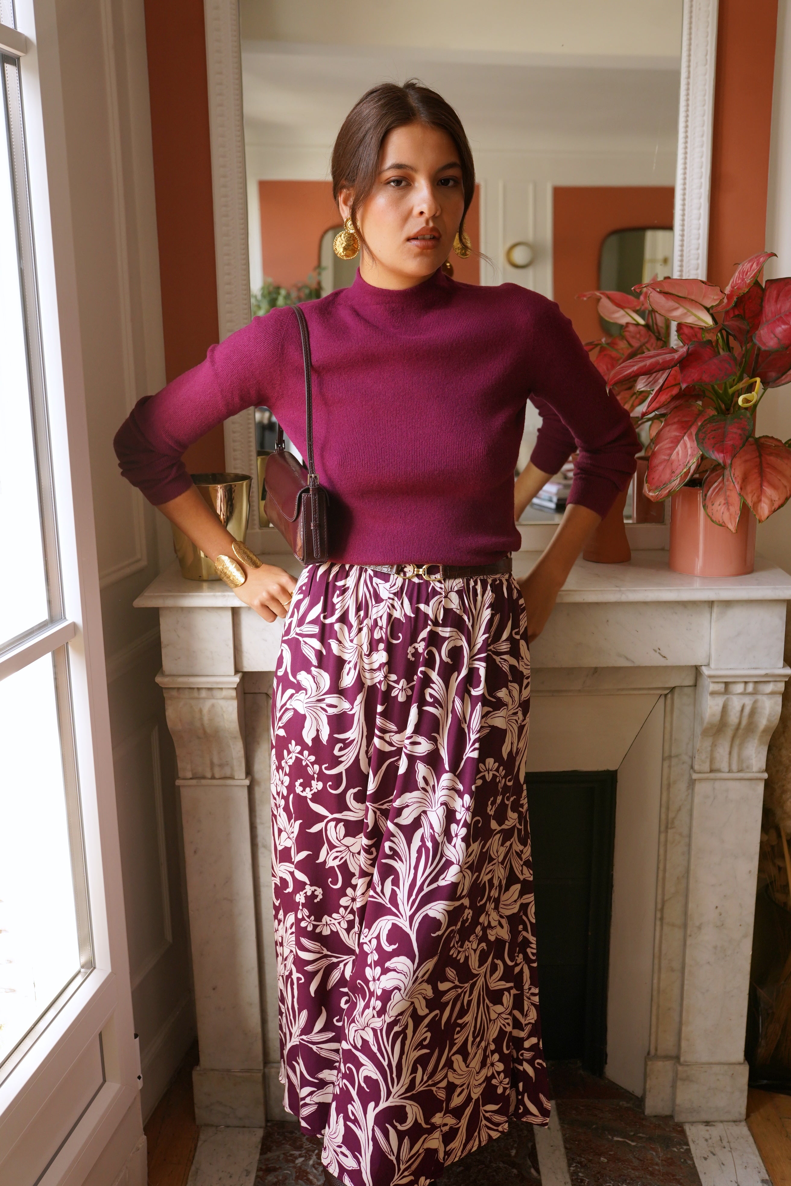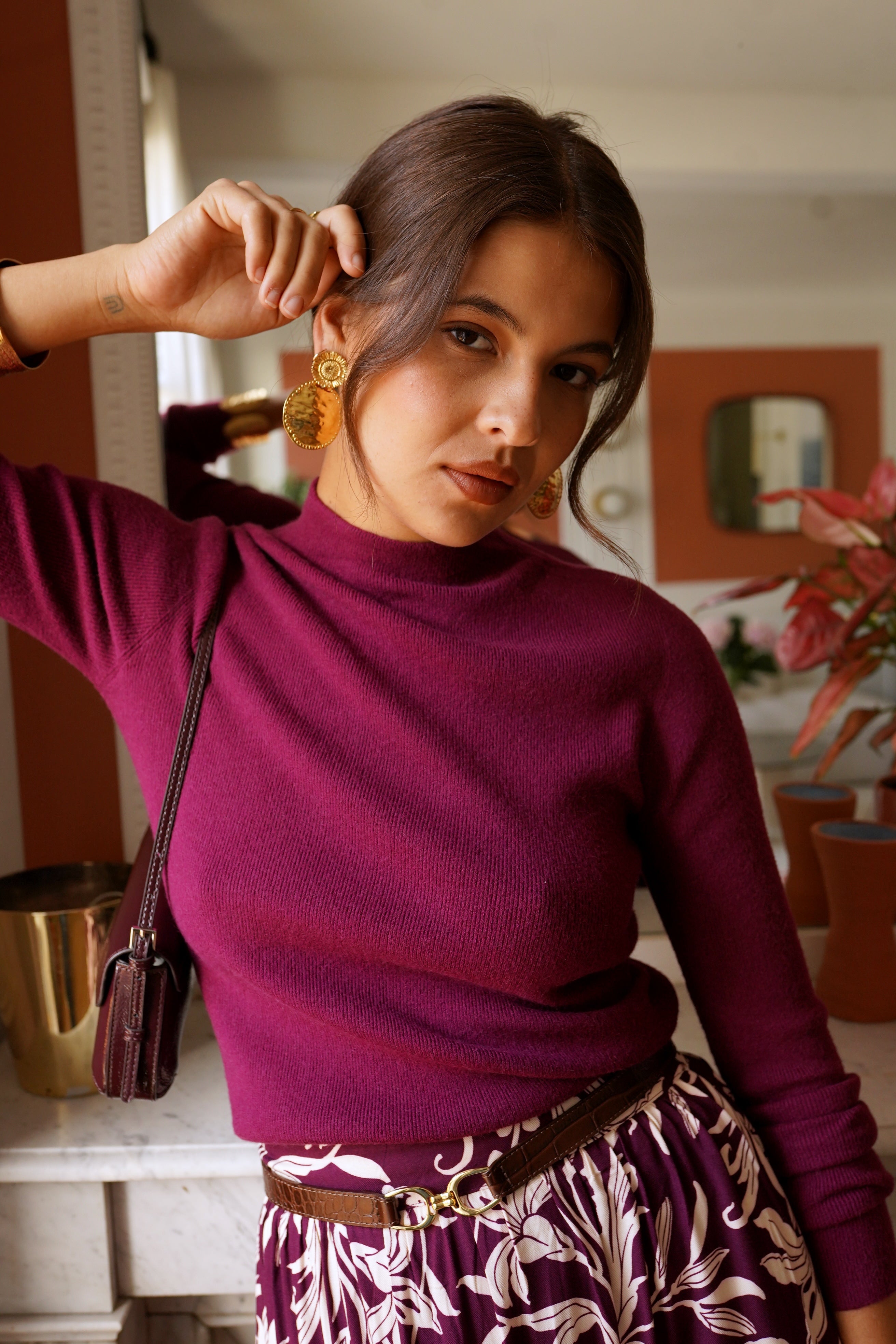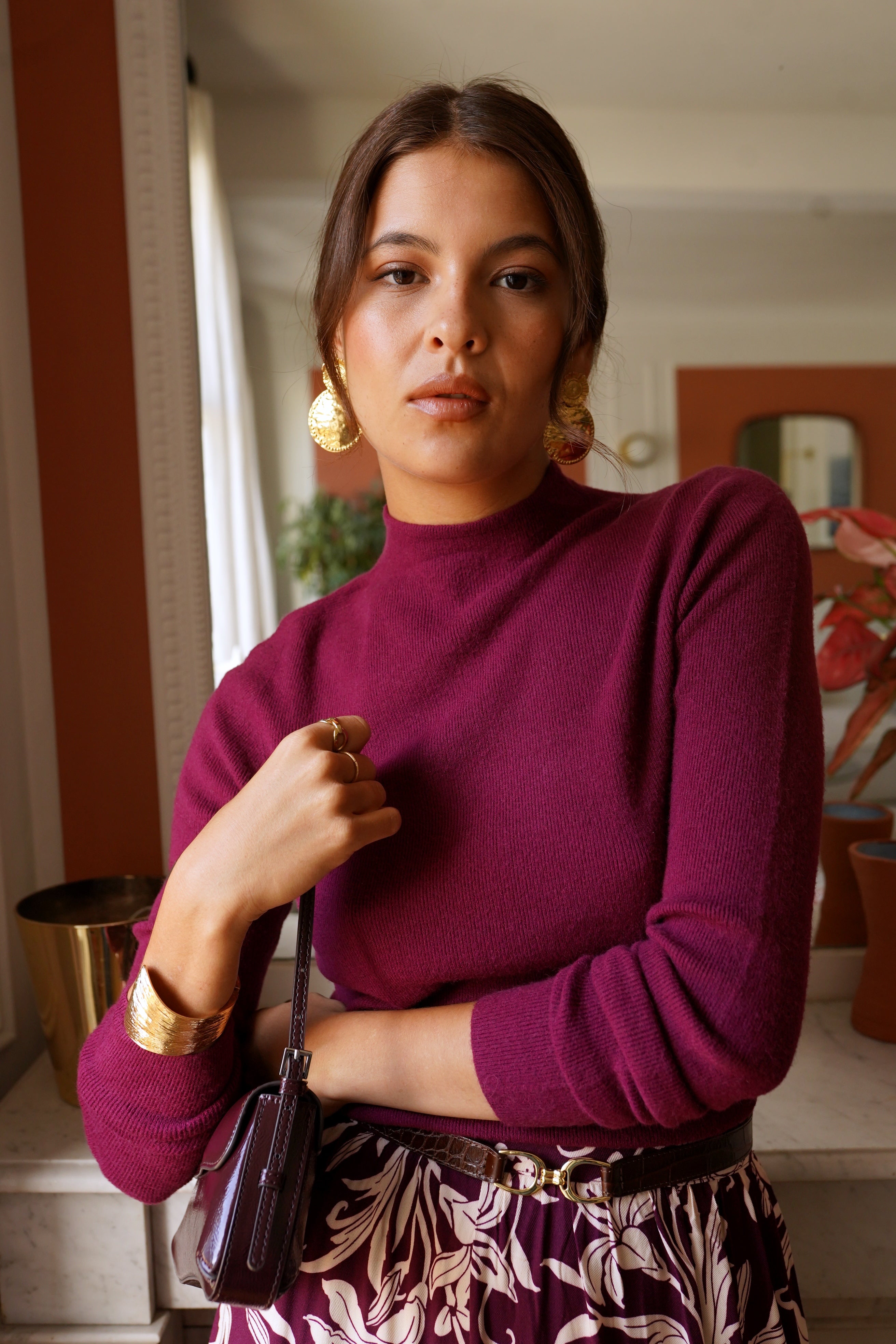La maille Becky incarne la sobriété chic, avec sa coupe ajustée et son col montant raffiné. Son coloris prune profond illumine le teint et apporte une touche sophistiquée à n’importe quelle silhouette. Confortable et douce, elle est la pièce idéale pour réchauffer l’automne tout en restant élégante.
