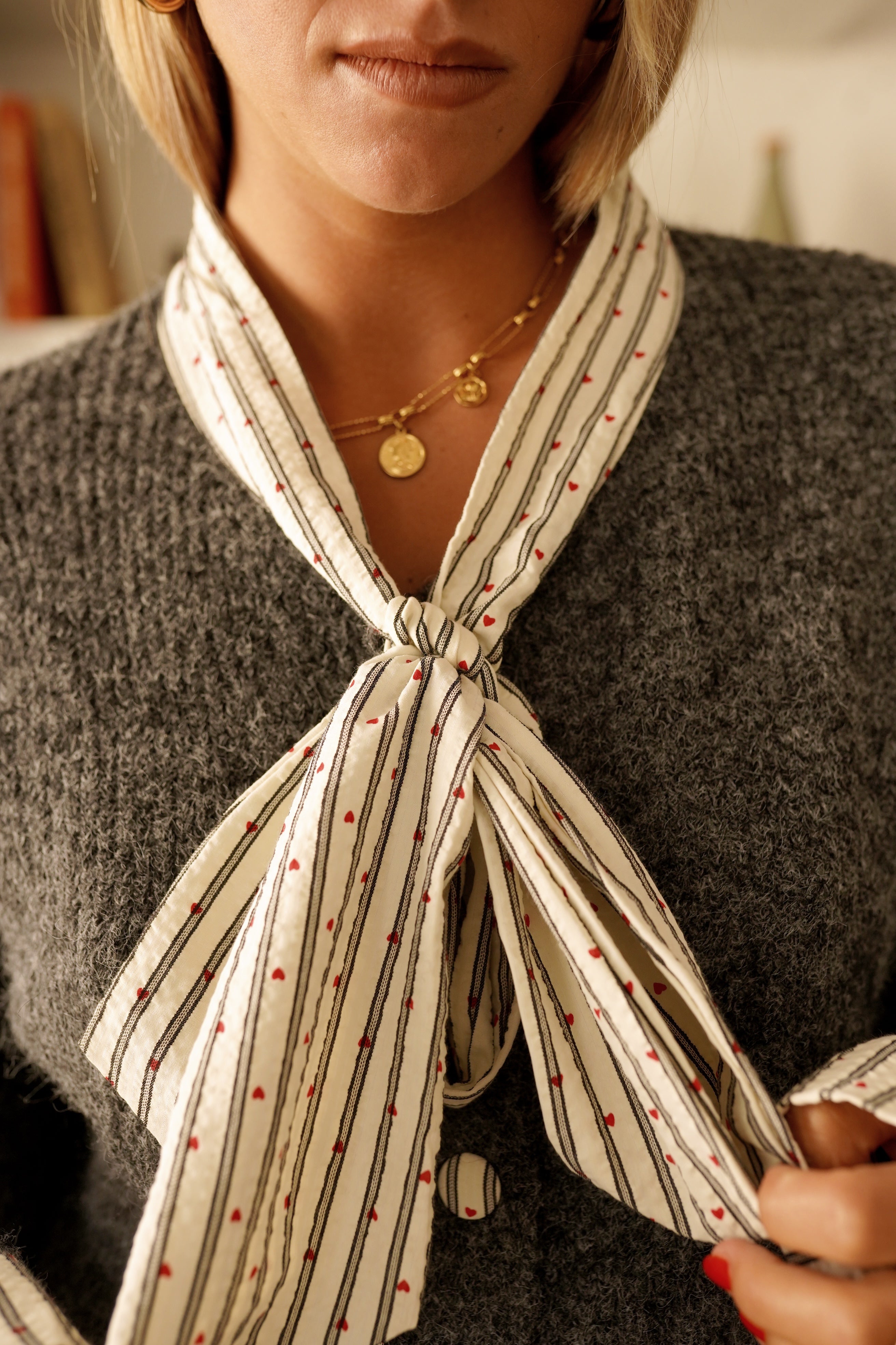 Conseil style : laissez le col lavallière noué ou ouvert selon l’occasion, et associez-la à un jean brut ou une jupe midi pour souligner son esprit féminin et délicat.