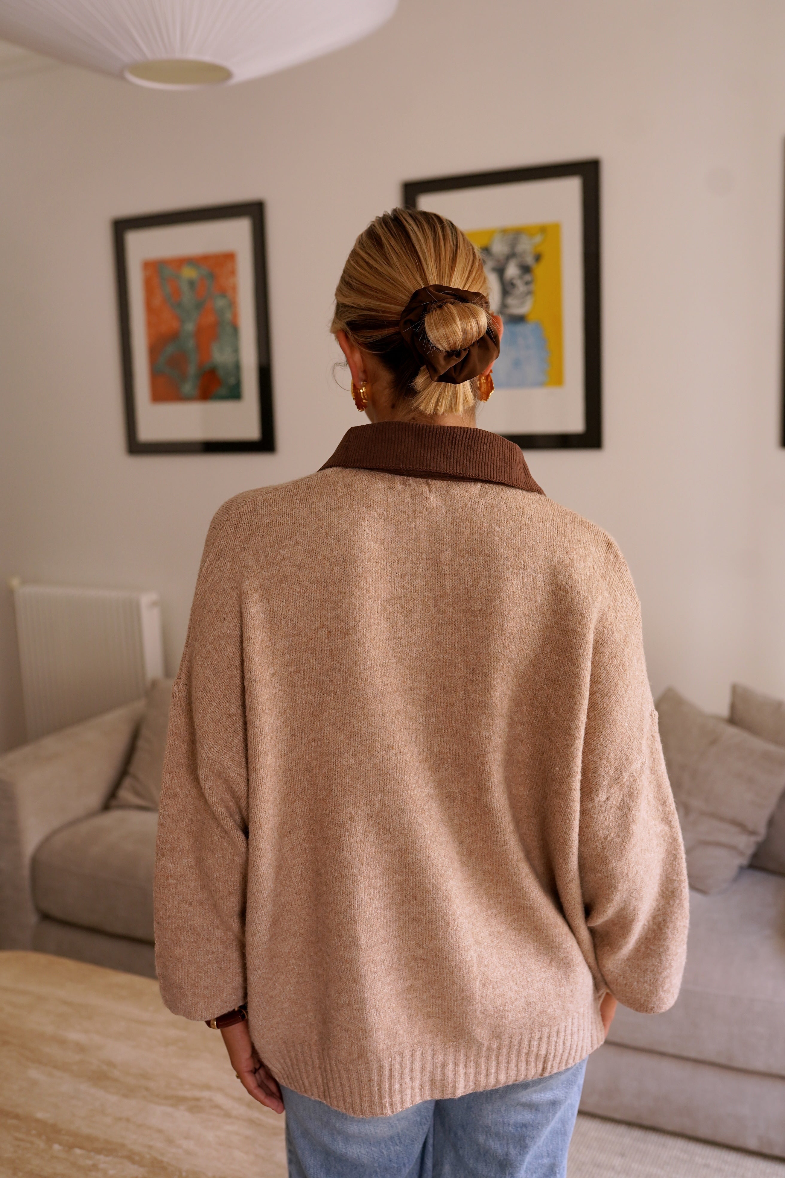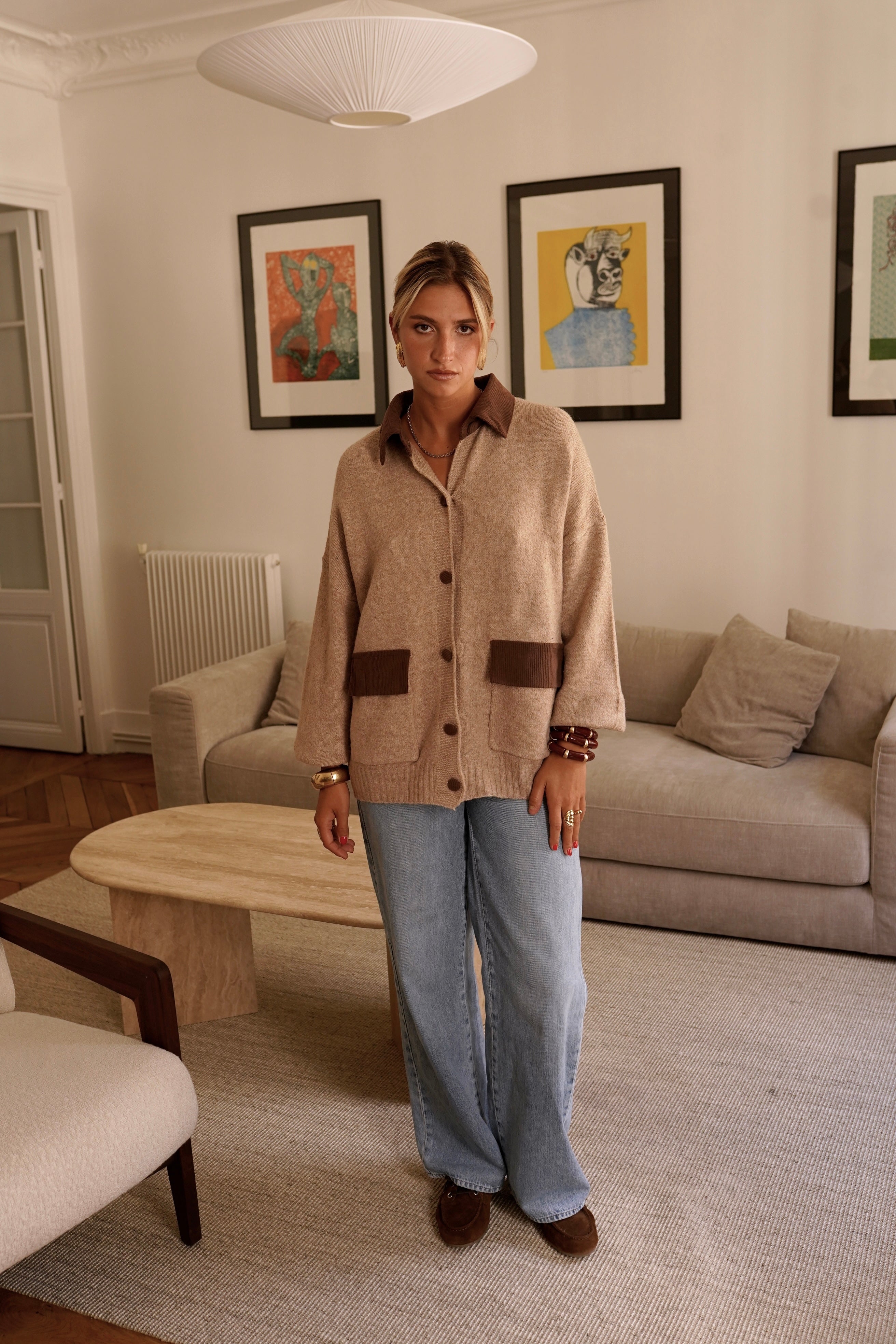 La maille Marta revisite l’intemporel cardigan avec des détails en velours côtelé contrastant sur le col et les poches. Sa coupe ample et son toucher doux en font une pièce cocooning, facile à associer au quotidien. Un essentiel qui marie confort et raffinement discret.