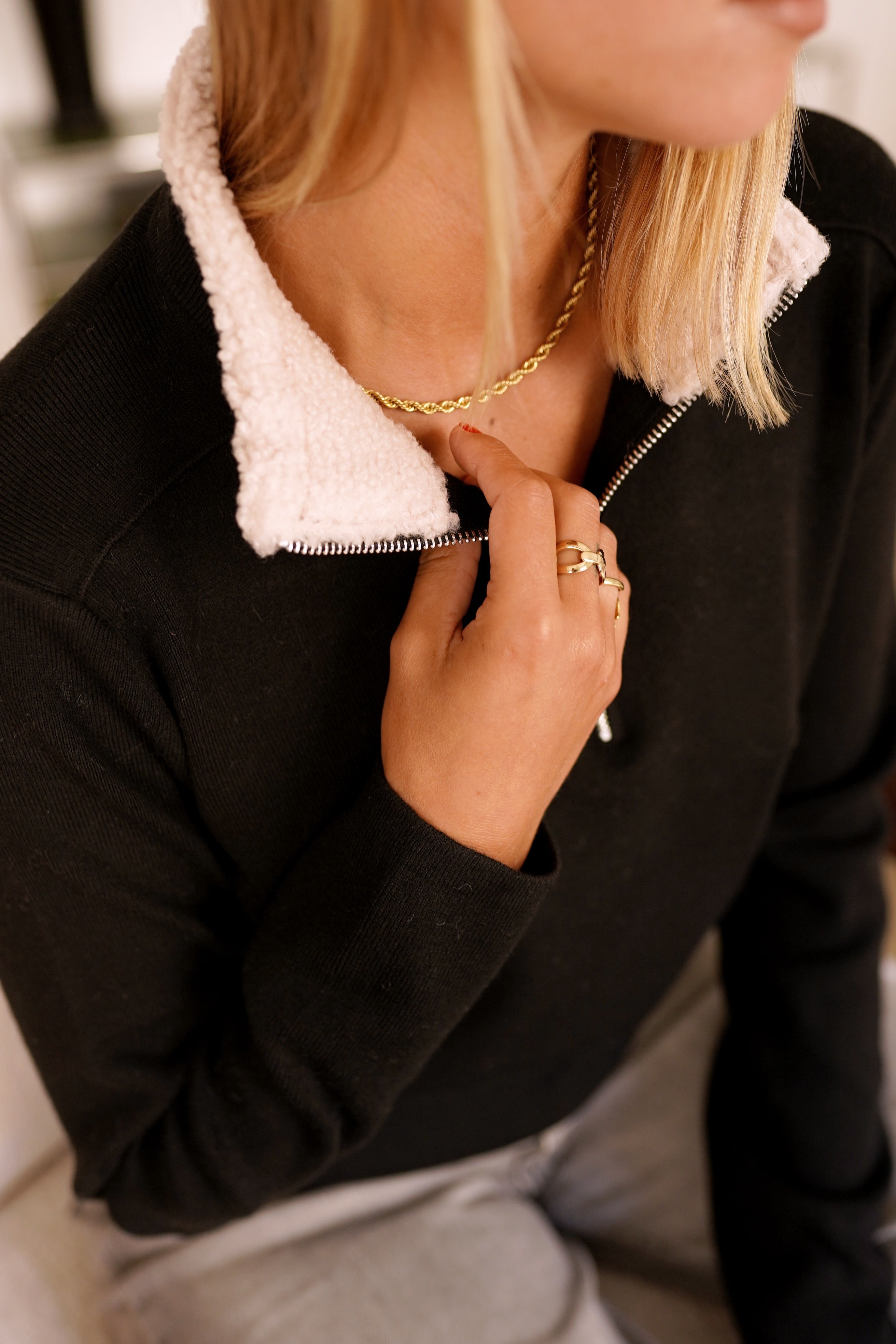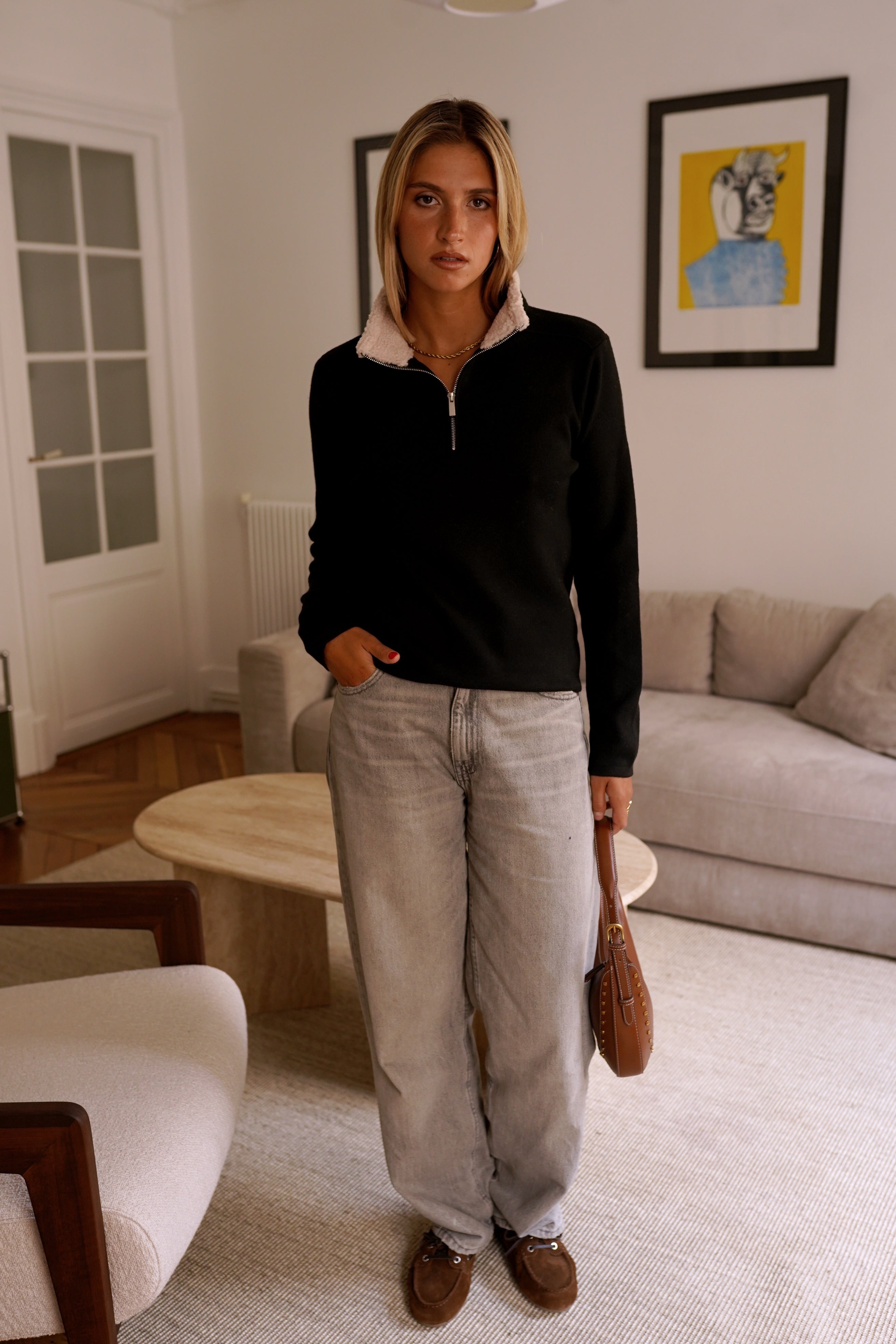 La maille Noela, le confort réchauffé d’une touche polaire. Avec son col montant zippé doublé en polaire, elle conjugue allure casual et douceur réconfortante. Une pièce pensée pour traverser la saison froide avec style et confort.