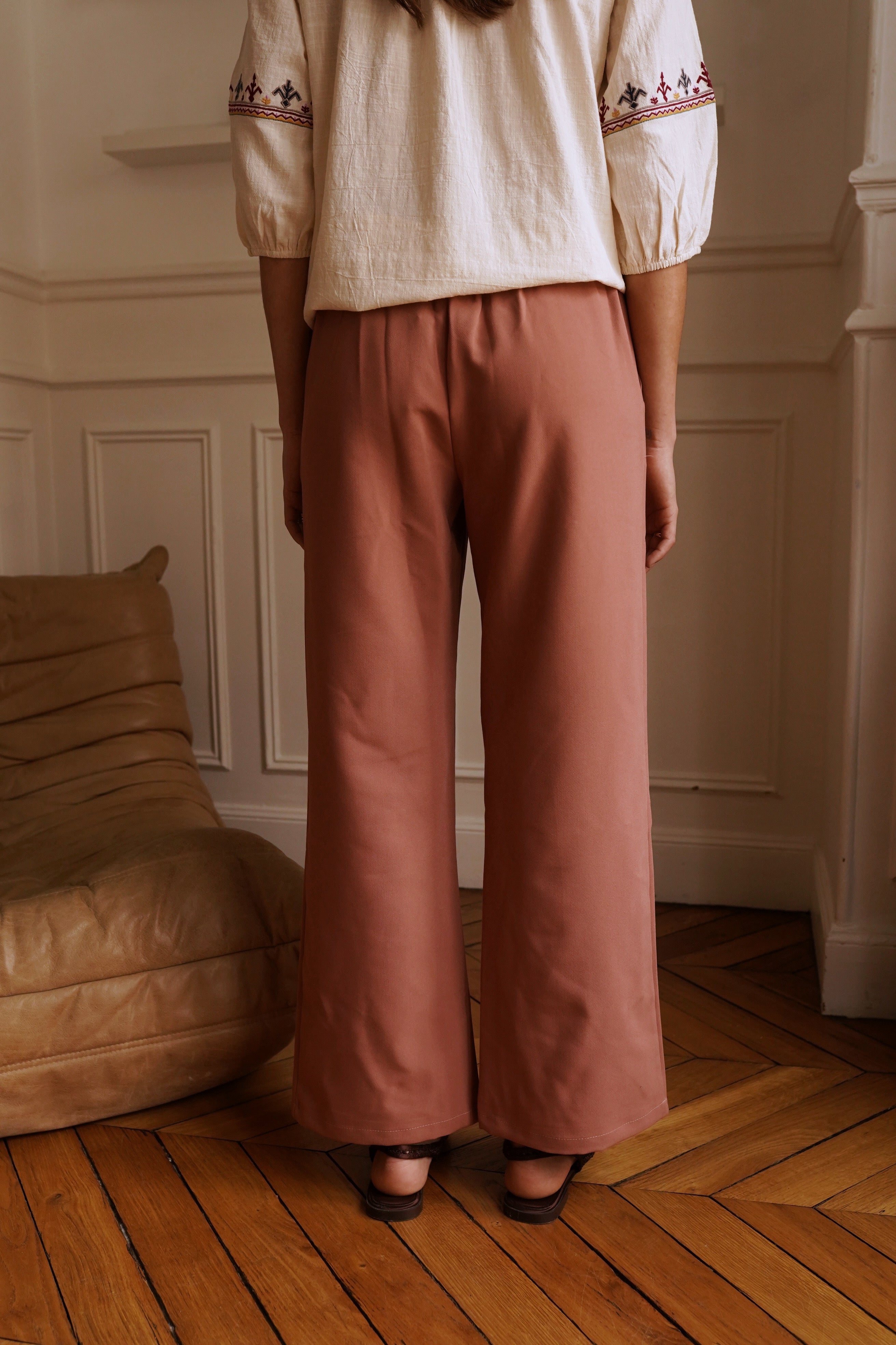Idéal pour les occasions formelles ou plus décontractées, ce pantalon terracotta se distingue par son allure contemporaine et sa finition soignée.