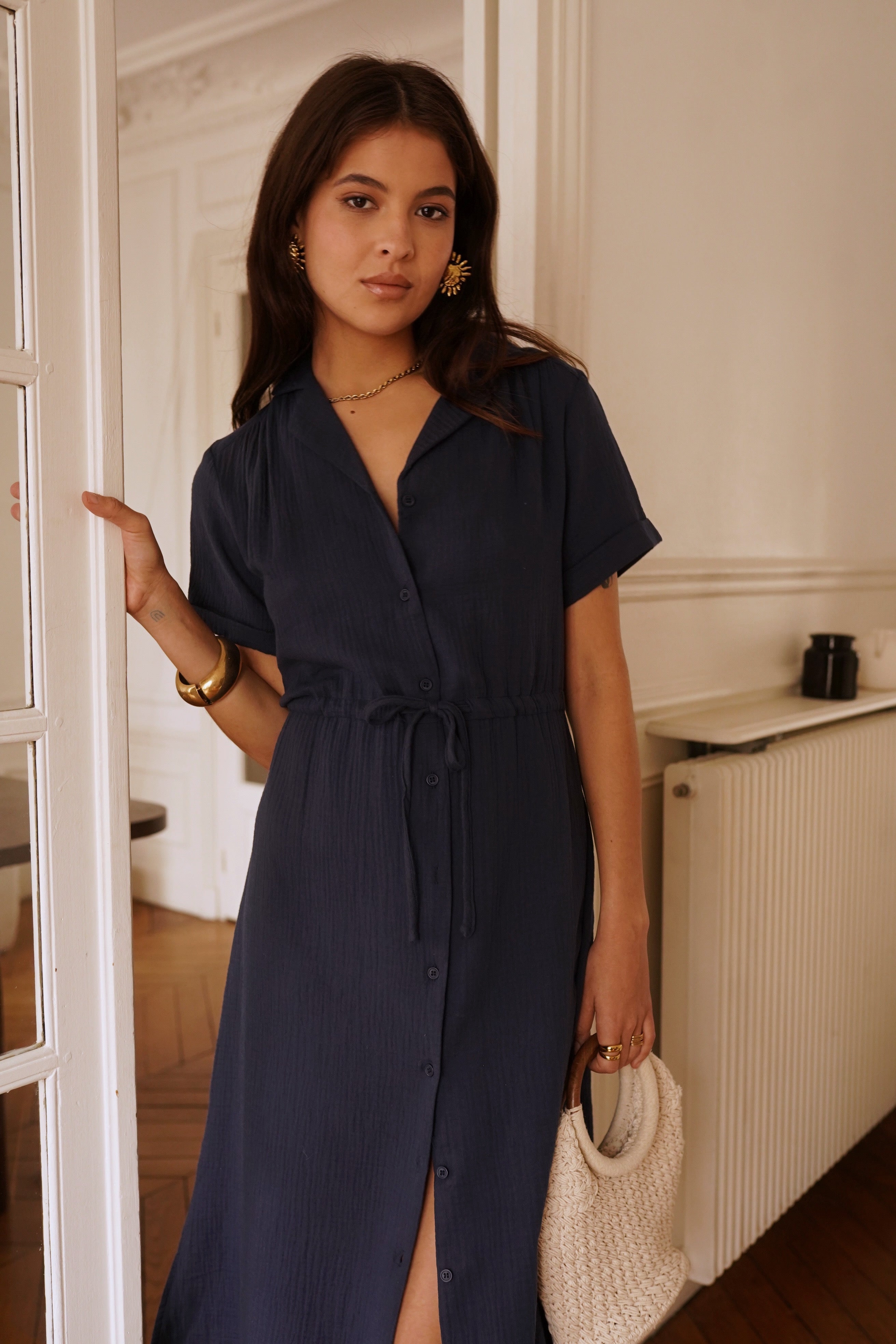 Son col chemise classique, sa fermeture boutonnée et sa coupe légèrement cintrée offrent une silhouette raffinée tout en garantissant un confort absolu.