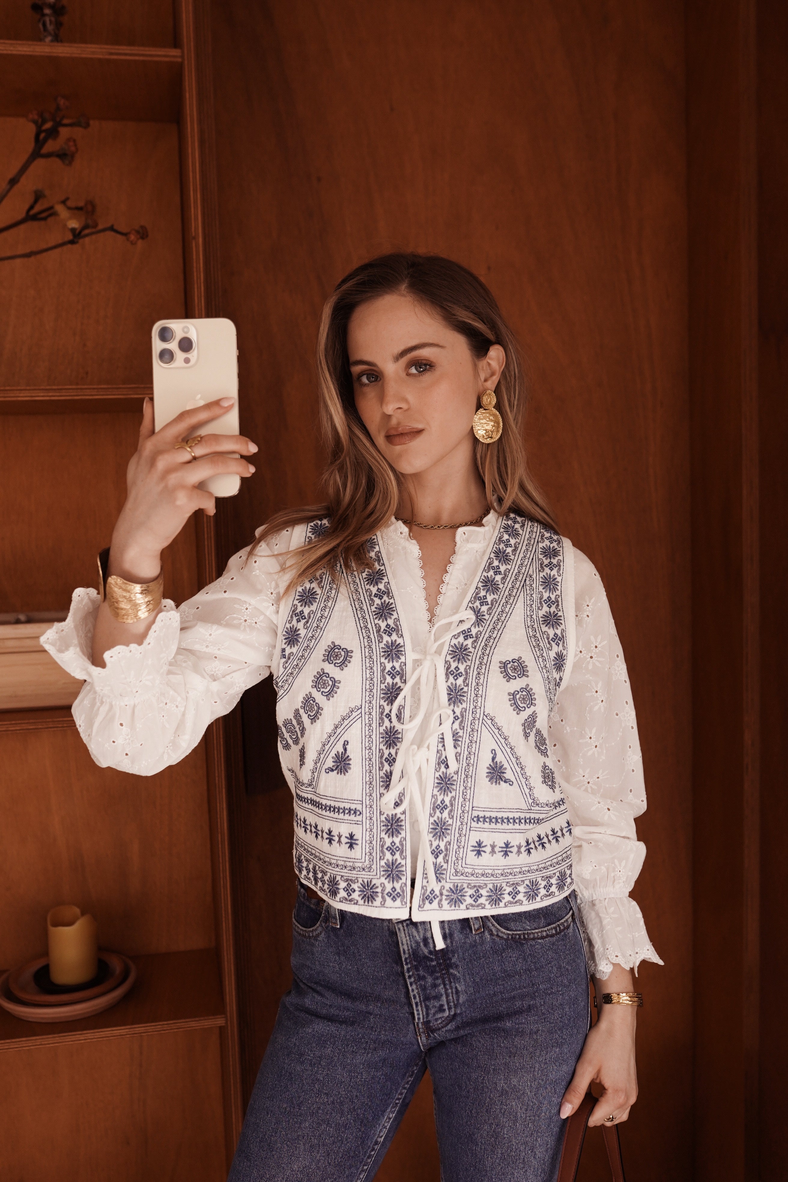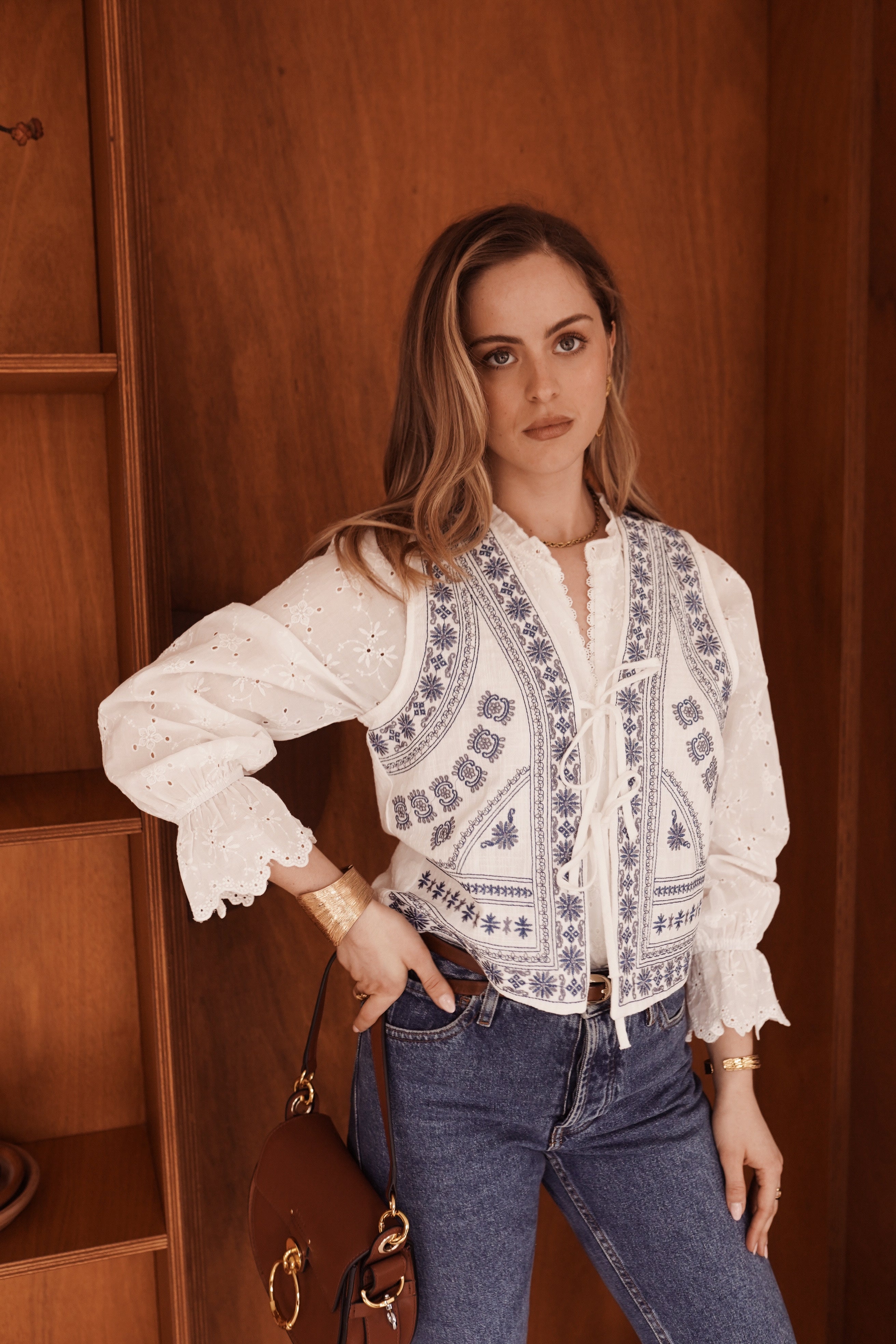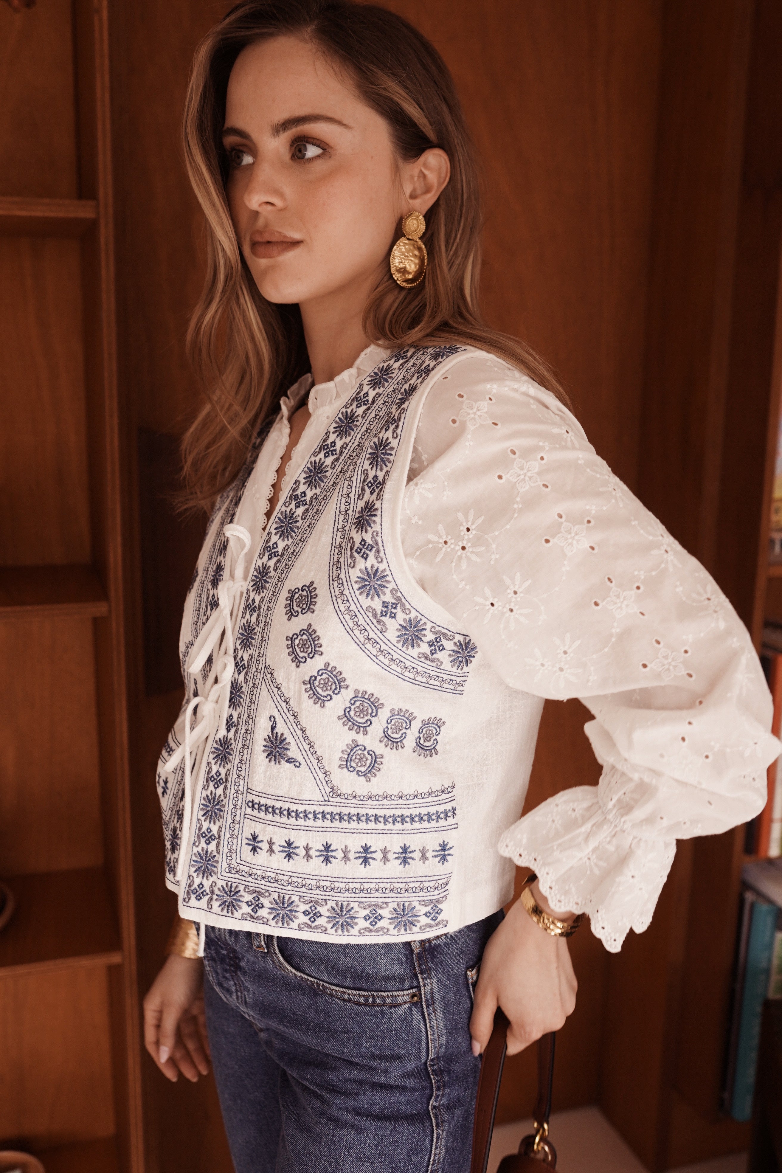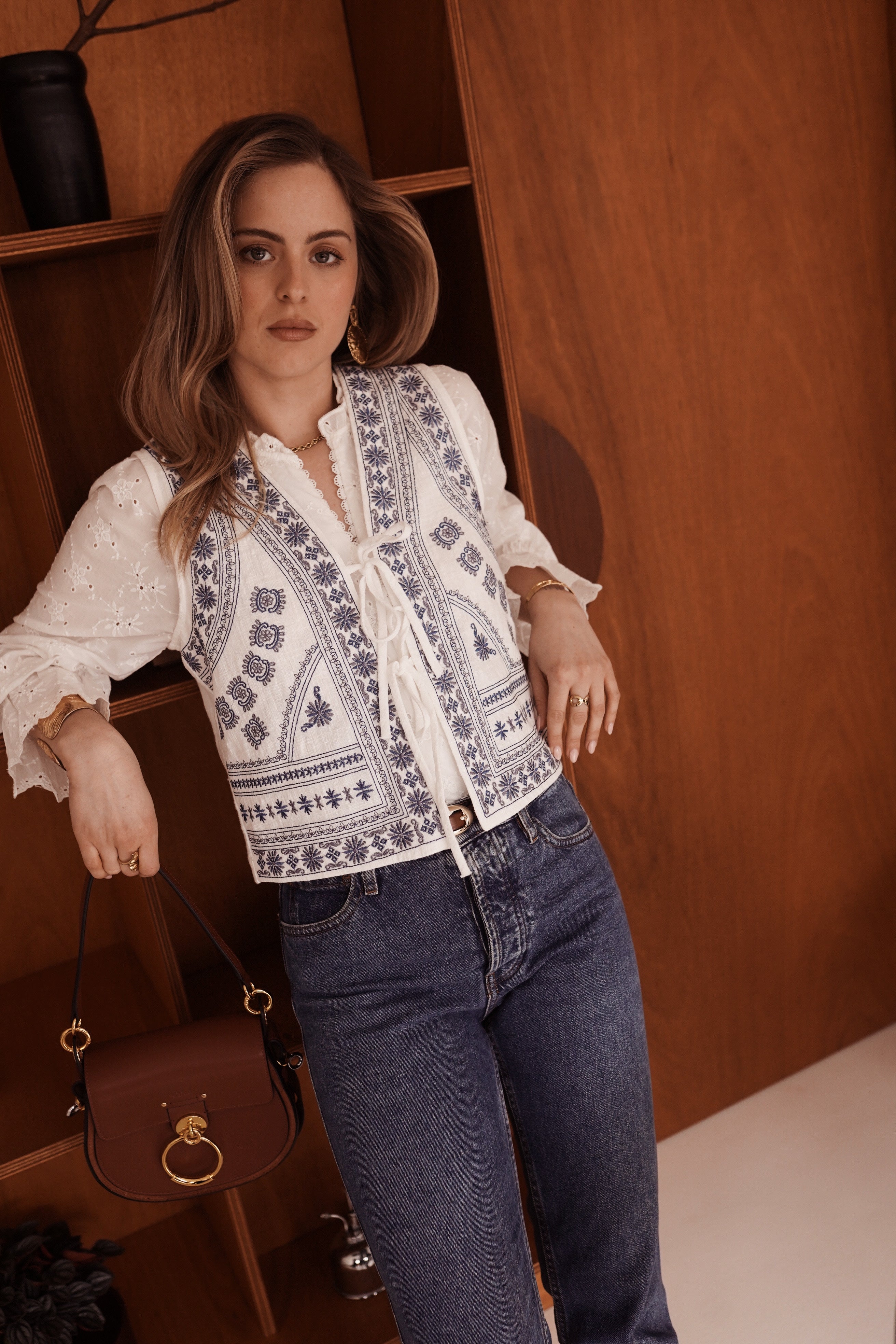 - Matière texturée rehaussée de broderies délicates